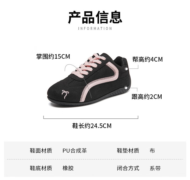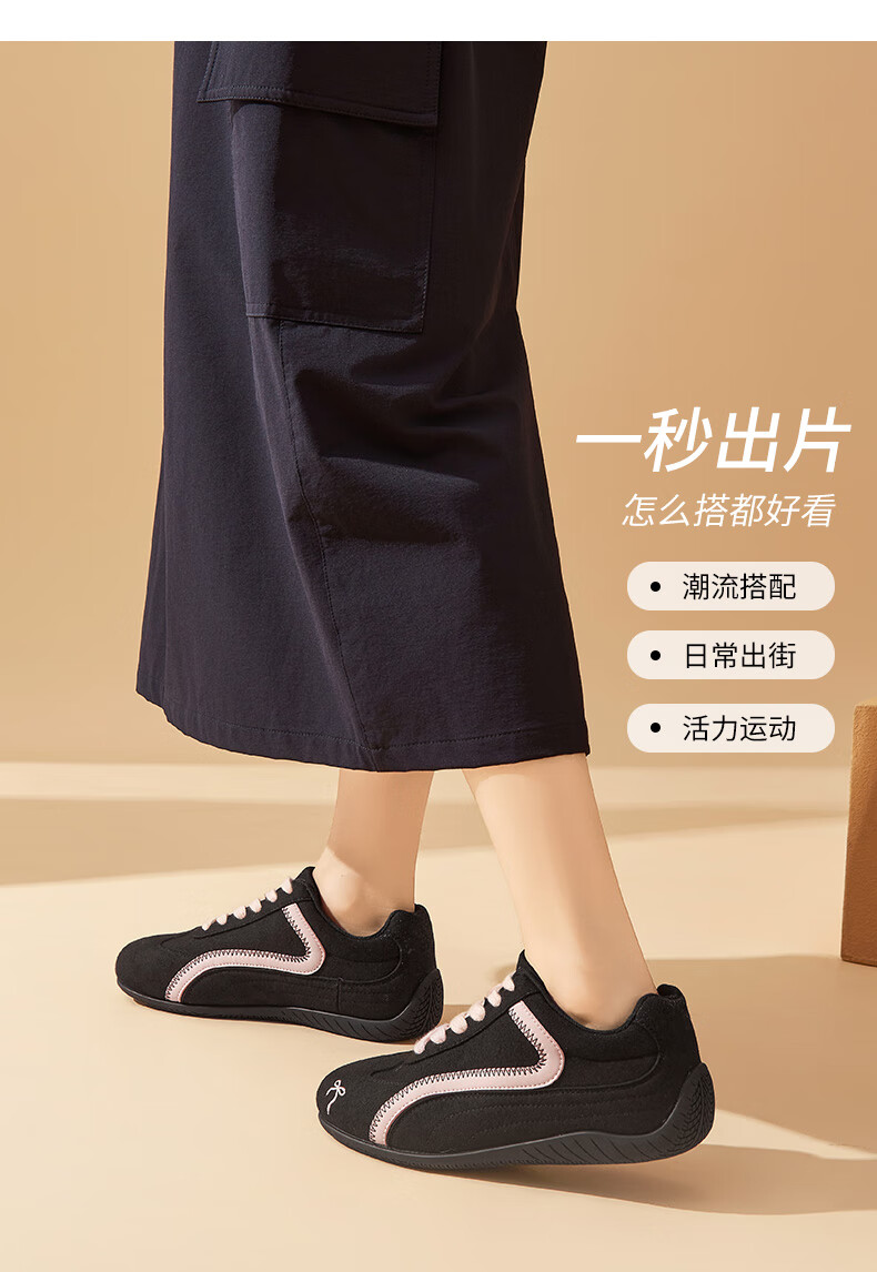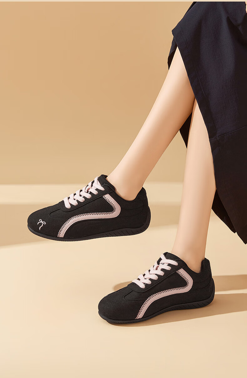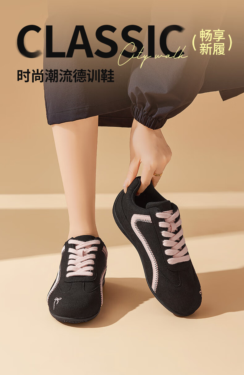 大东德训鞋女鞋2026年春季新款时尚舒适圆头系带休闲鞋0600 黑色 35