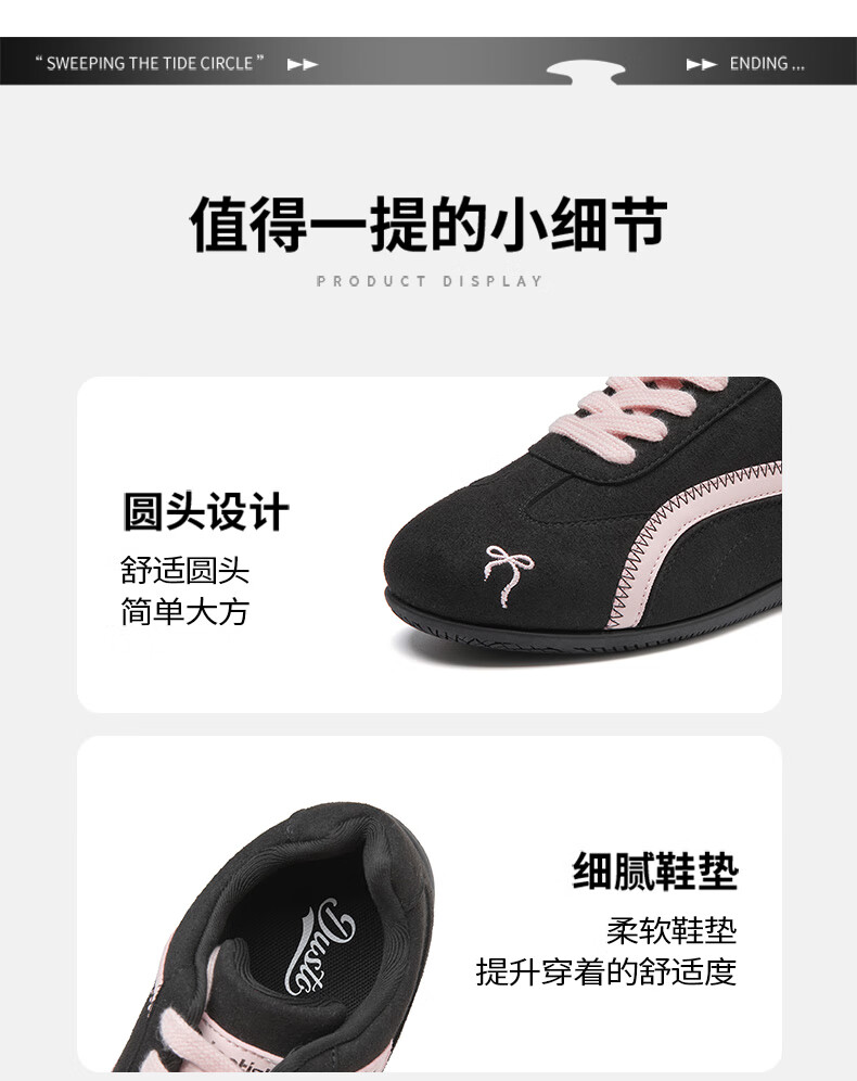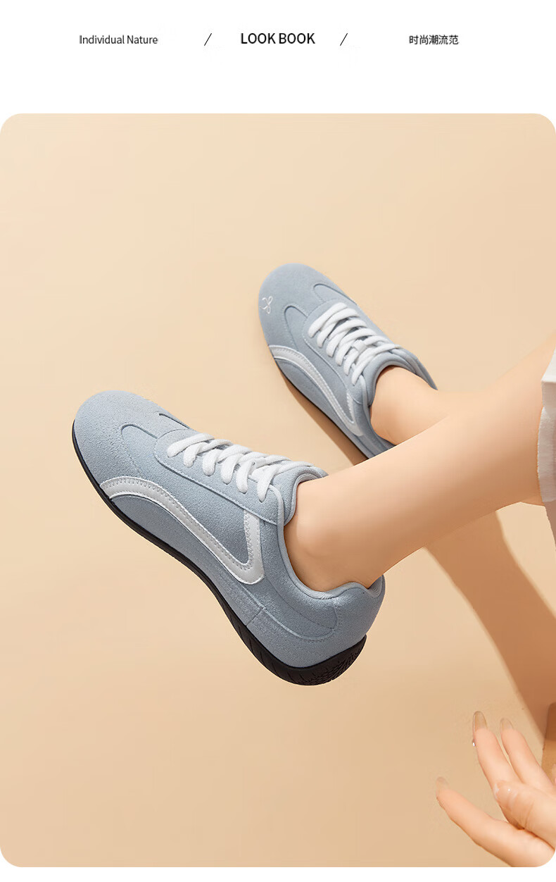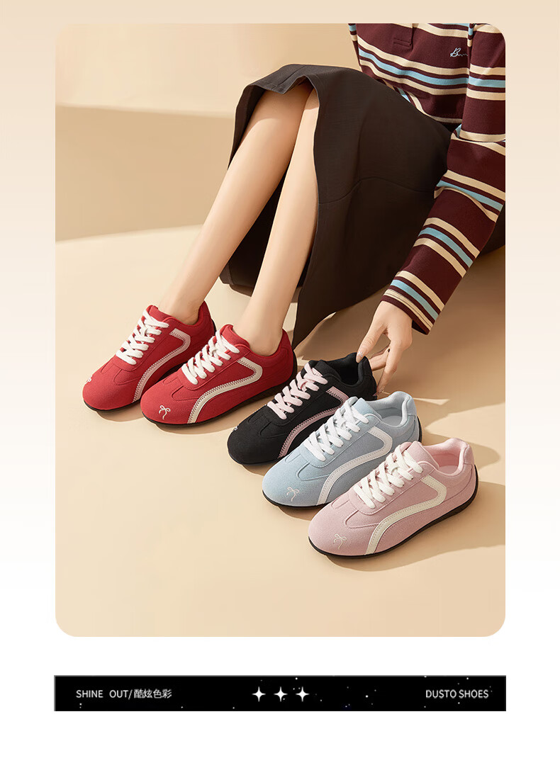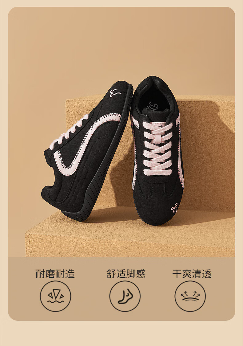 大东德训鞋女鞋2026年春季新款时尚舒适圆头系带休闲鞋0600 黑色 35