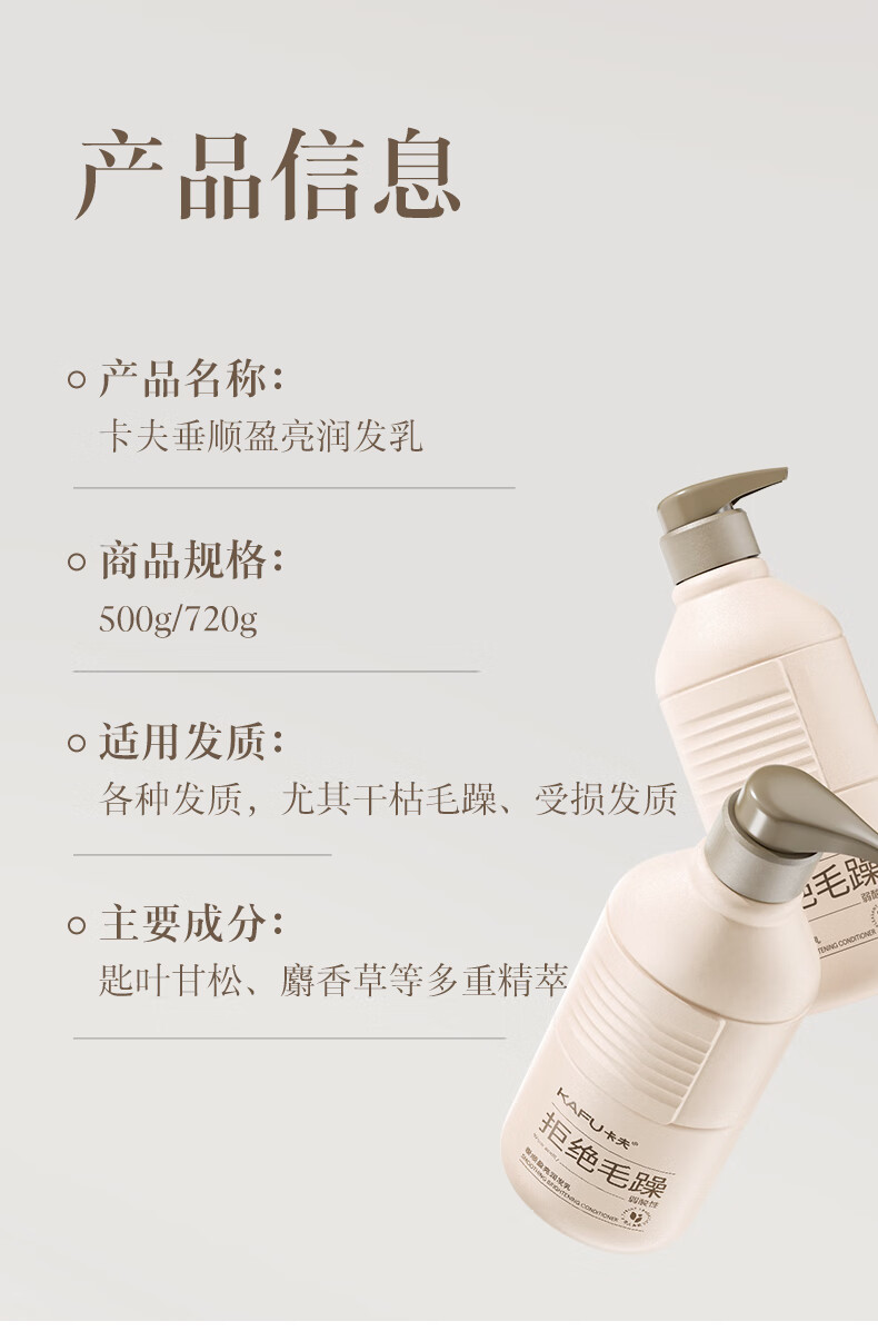 卡夫垂顺盈亮护发素500克干枯毛糙柔顺强韧香氛润发乳