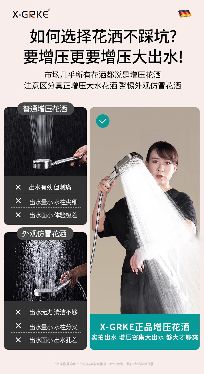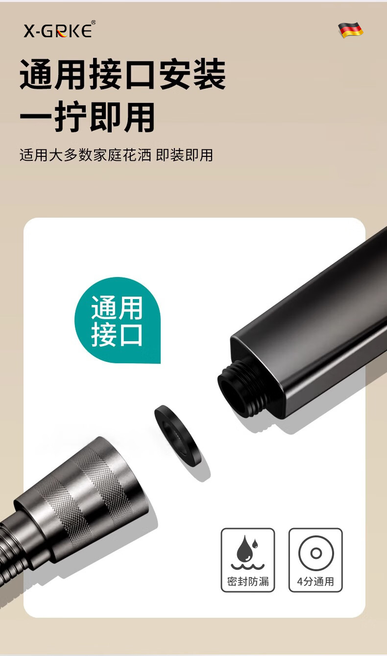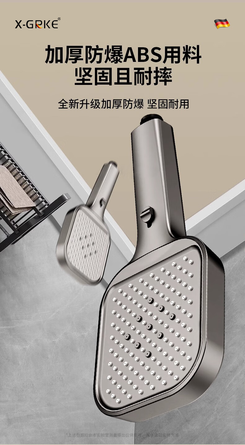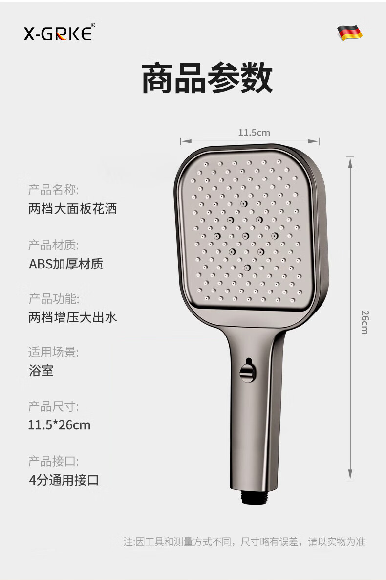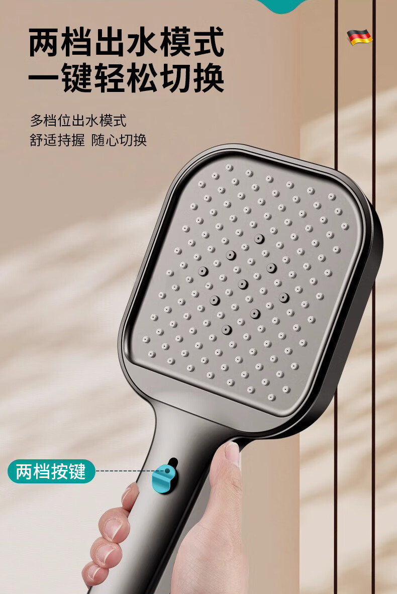 X-GRKE【德国】增压淋浴花洒喷头套装浴室洗澡多功能手持强劲加压莲蓬头 【枪灰】无极推钮花洒 无极出水切换丨自洁硅胶大面板