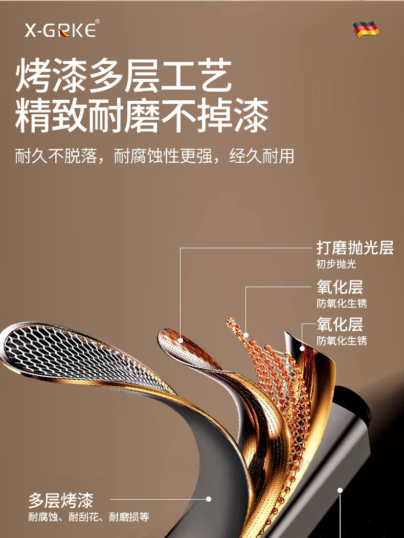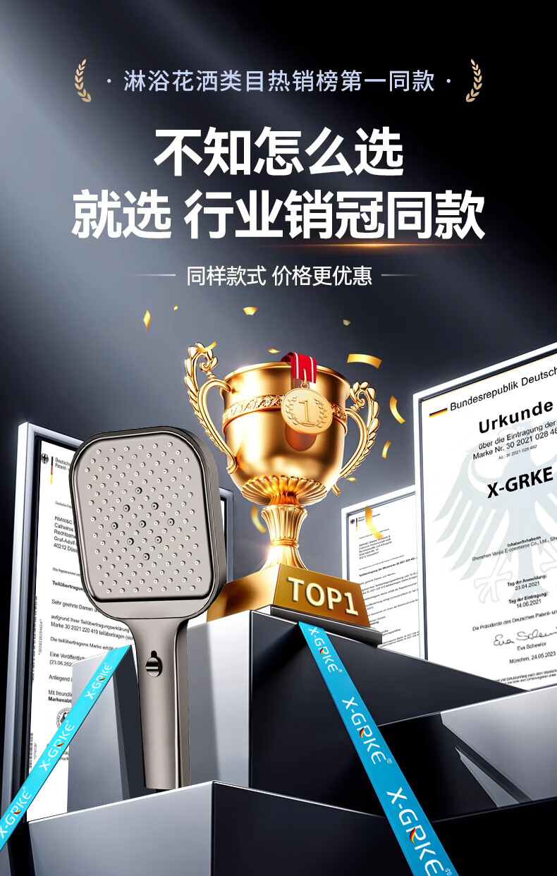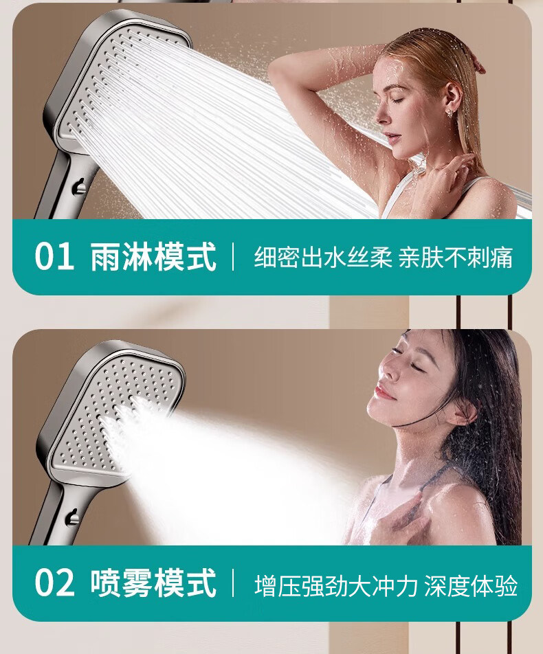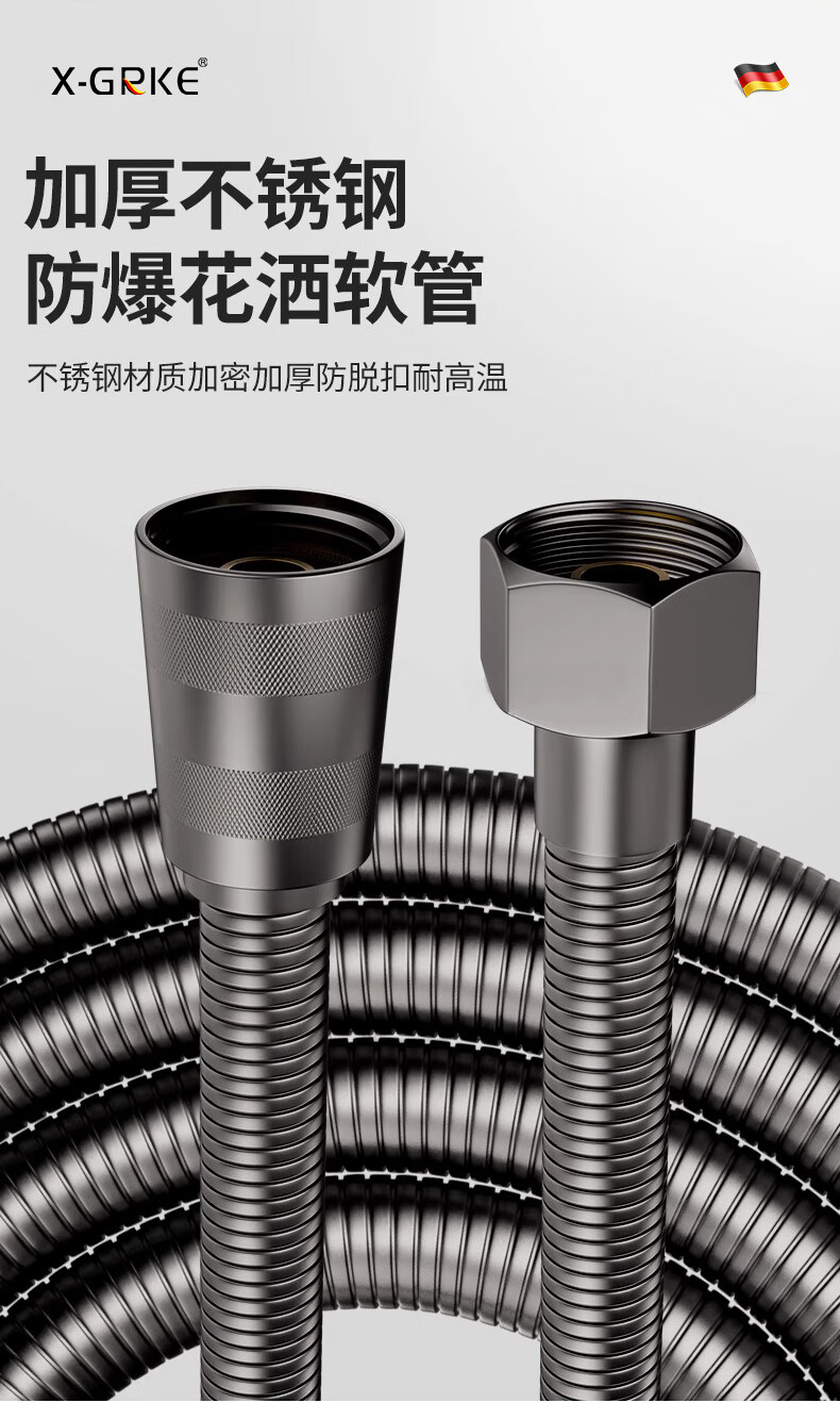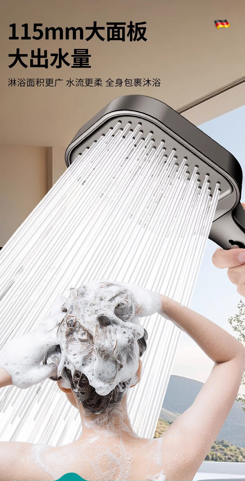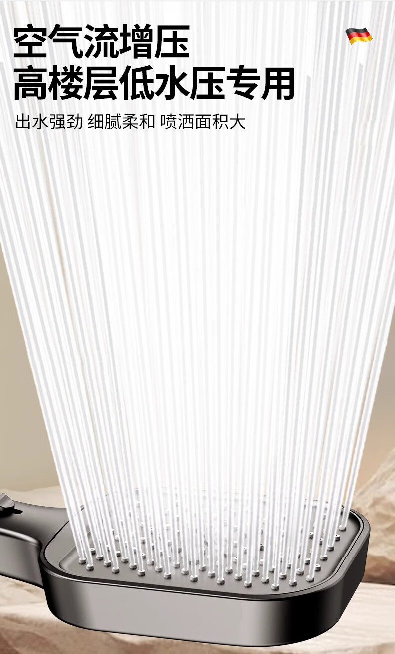 X-GRKE【德国】增压淋浴花洒喷头套装浴室洗澡多功能手持强劲加压莲蓬头 【枪灰】无极推钮花洒 无极出水切换丨自洁硅胶大面板