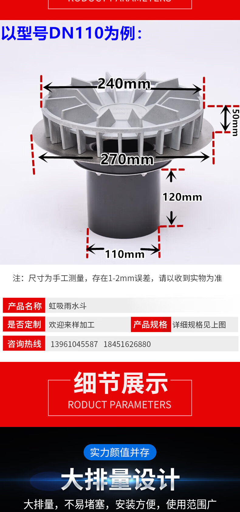 第鑫雨水斗不锈钢虹吸雨水斗雨水斗虹吸钢结构混凝土雨水斗110 混凝土HY-160