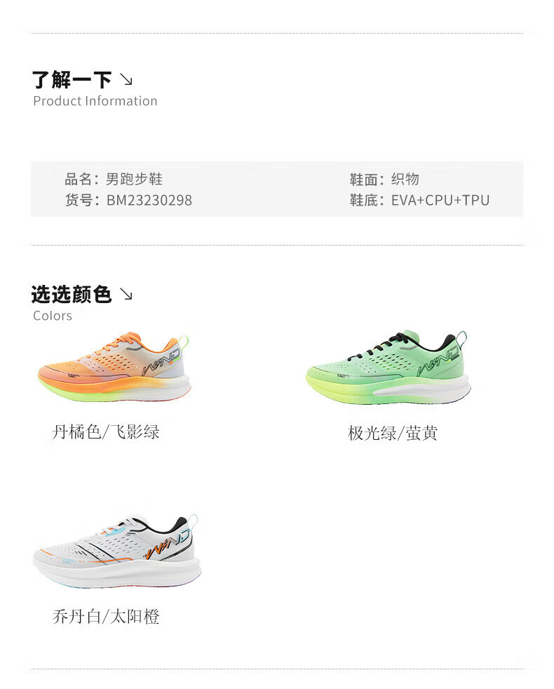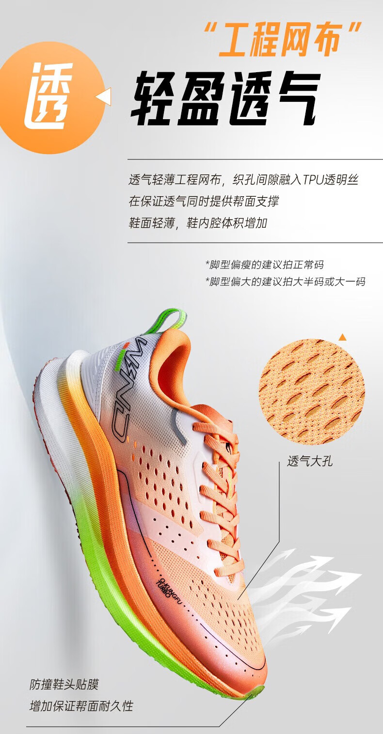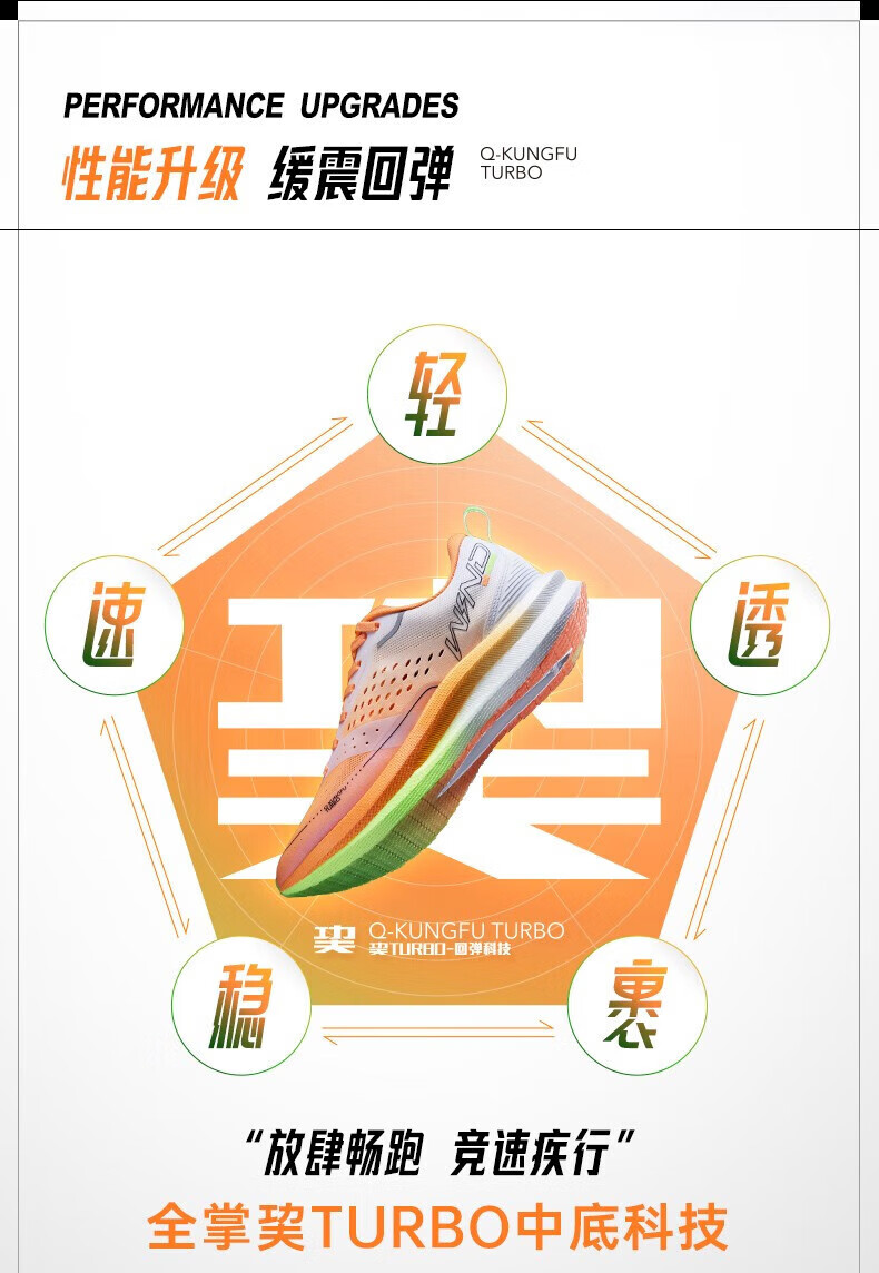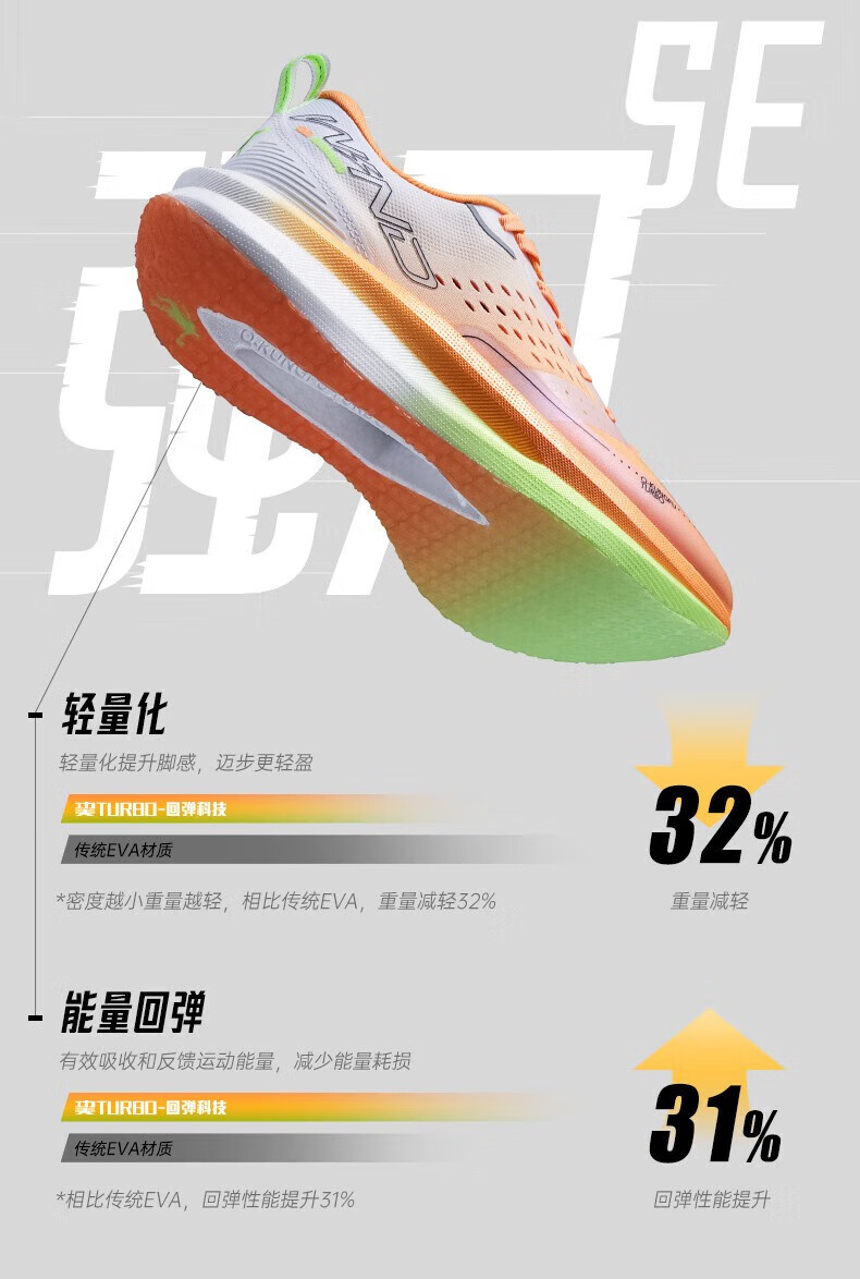 乔丹QIAODAN强风SE马拉松竞速训练运动鞋跑步巭turbo体测鞋 男SE-橘绿-脚宽拍大半码 43
