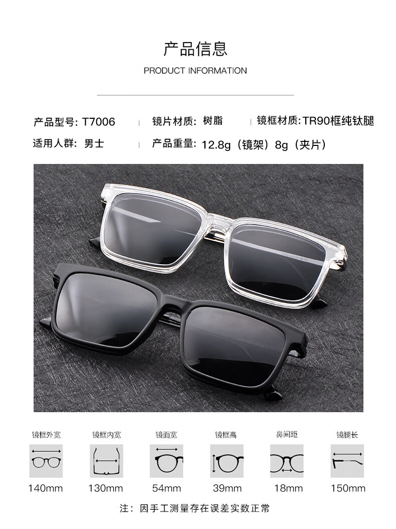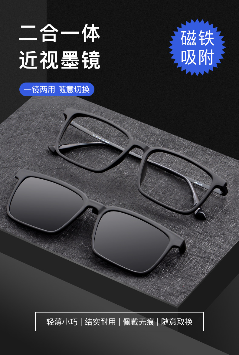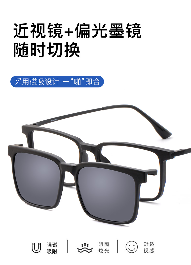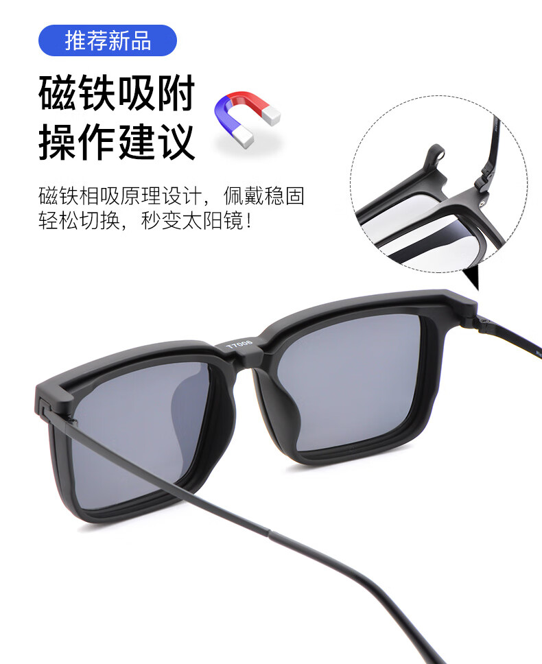 目匠大码大脸偏光磁吸套镜夹片近视太阳镜墨镜司机开车偏光镜T7006 砂黑 防蓝光配镜(1.67防蓝光镜片)