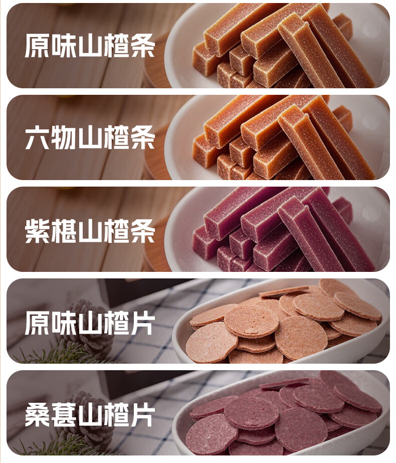 果家班原味六物桑葚味纯老式山楂条山楂片儿童休闲开胃山楂零食无添加剂 紫椹条+桑葚片+六物条山楂集714g