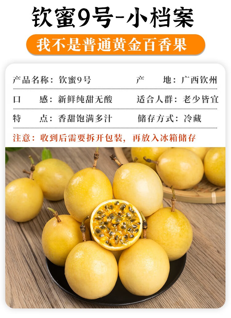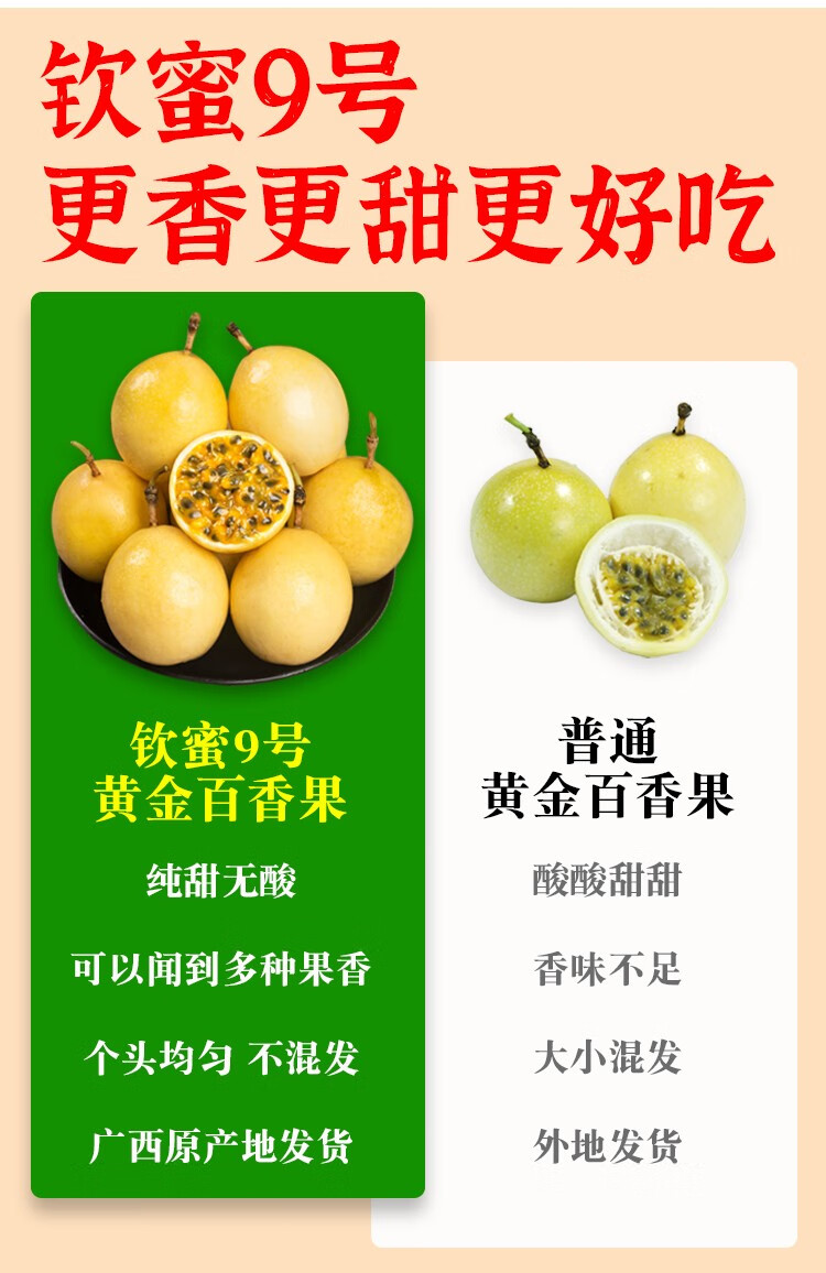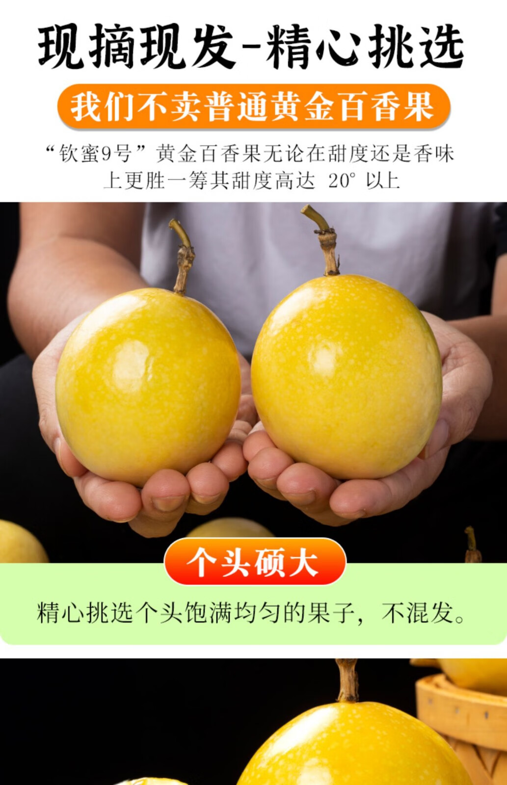 张小壮百香果 黄金果 广西钦蜜9号黄金百香果9号新鲜生鲜白香果水果 精选2.8-3斤(1斤约10-13个)