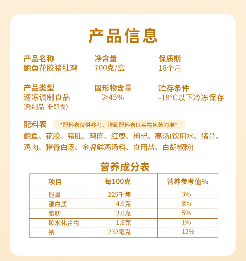 兆华山姆同源鲍鱼花胶胡椒猪肚鸡加热即食半成品汤底底料预制快手菜 【鲍鱼花胶猪肚鸡】700g*2盒