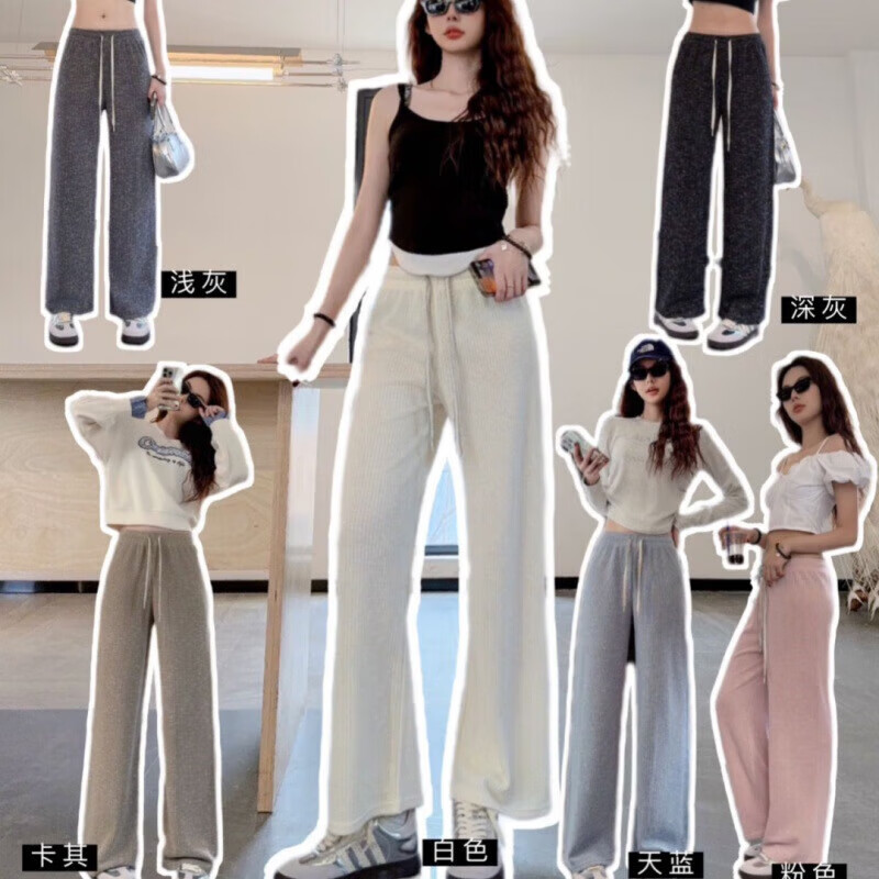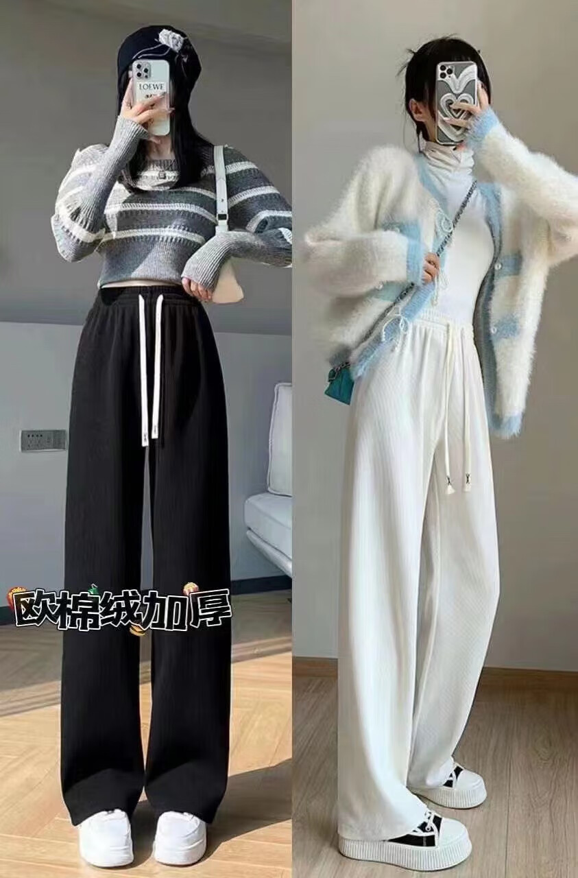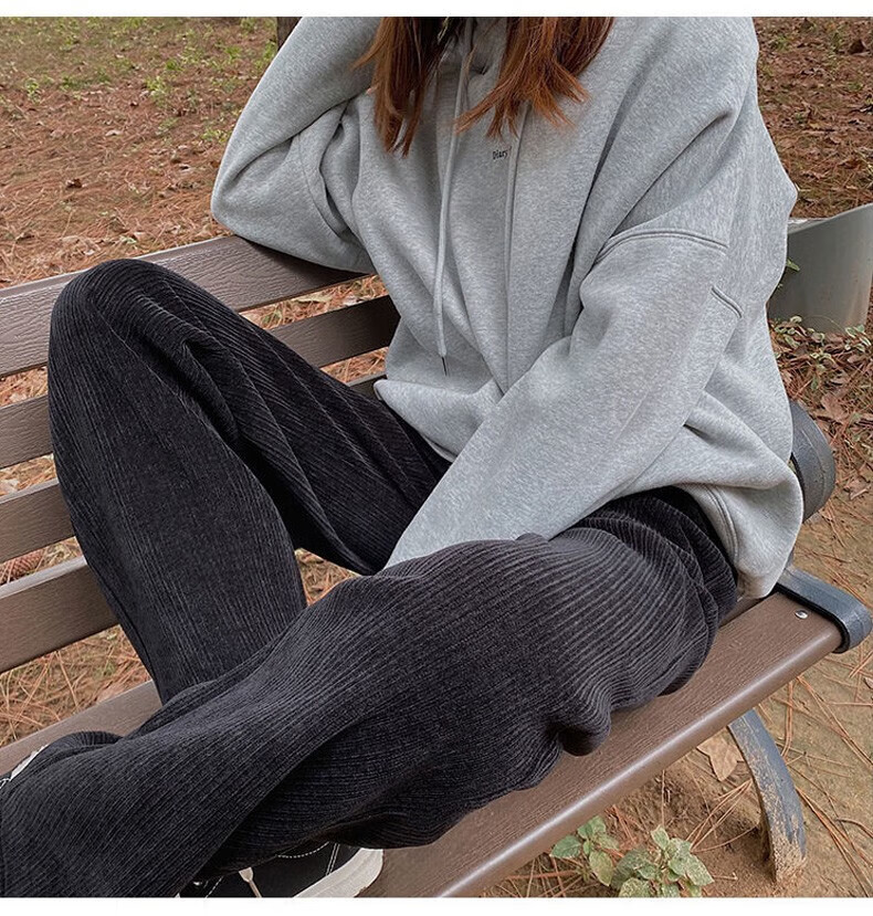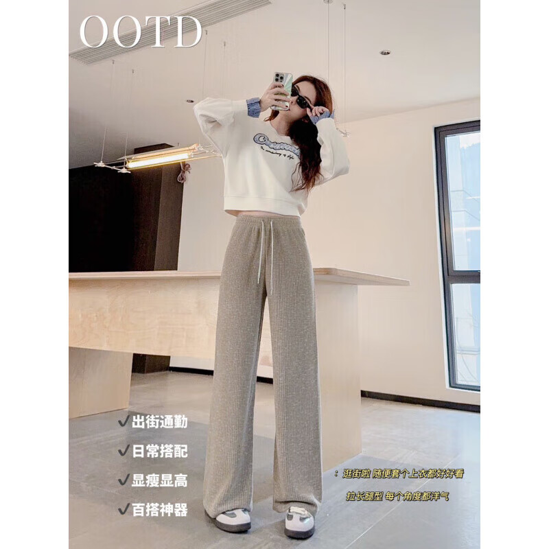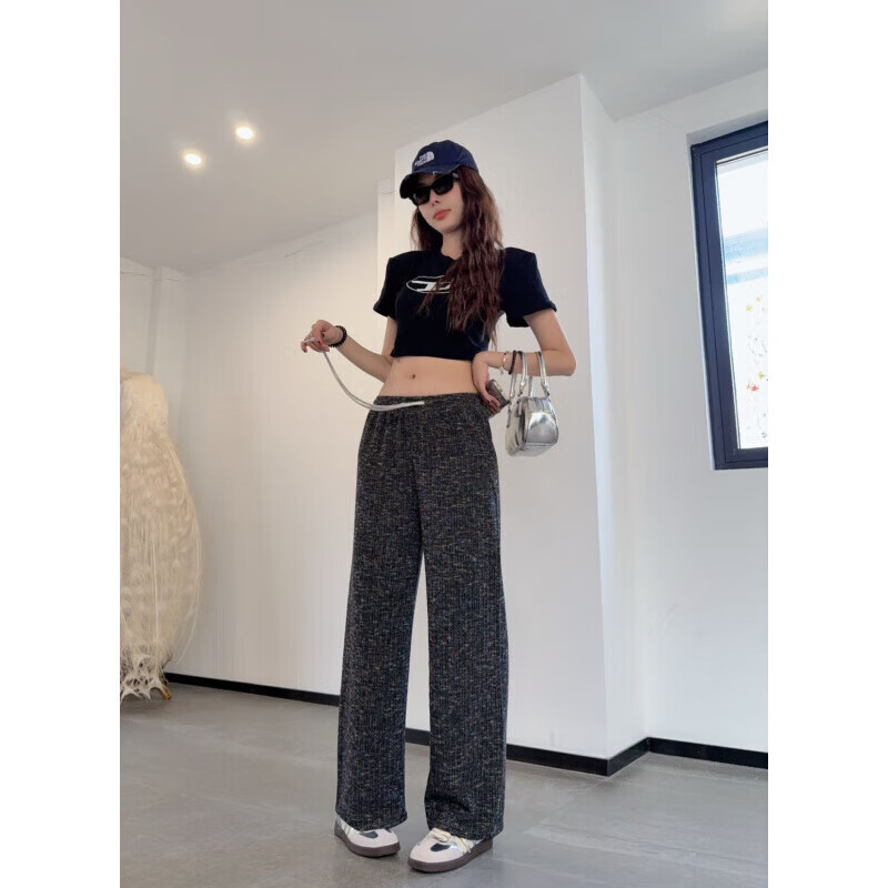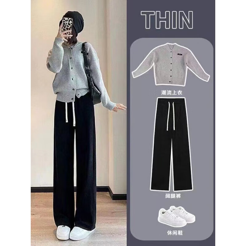 宝娜斯(BONAS)窄版阔腿裤女春秋直筒运动长裤小个子高腰显瘦垂感休闲打底裤 黑色 春秋款-欧棉绒 M 均码 (155-175/85-105c)