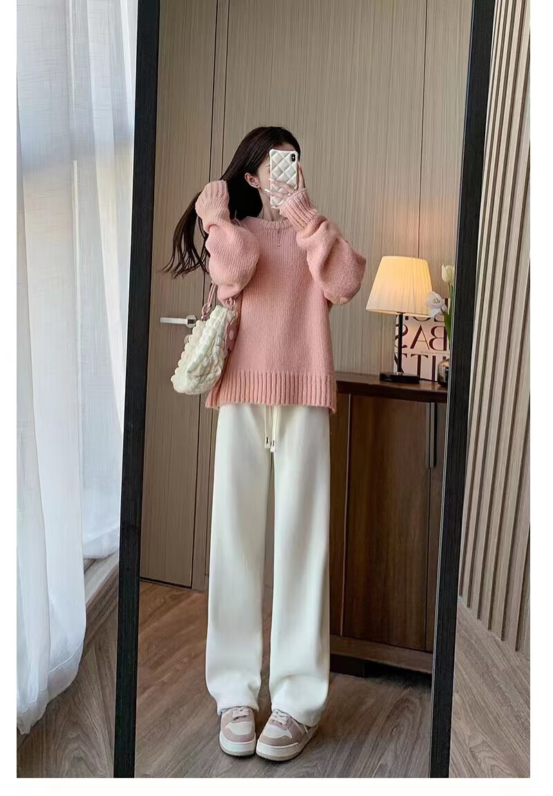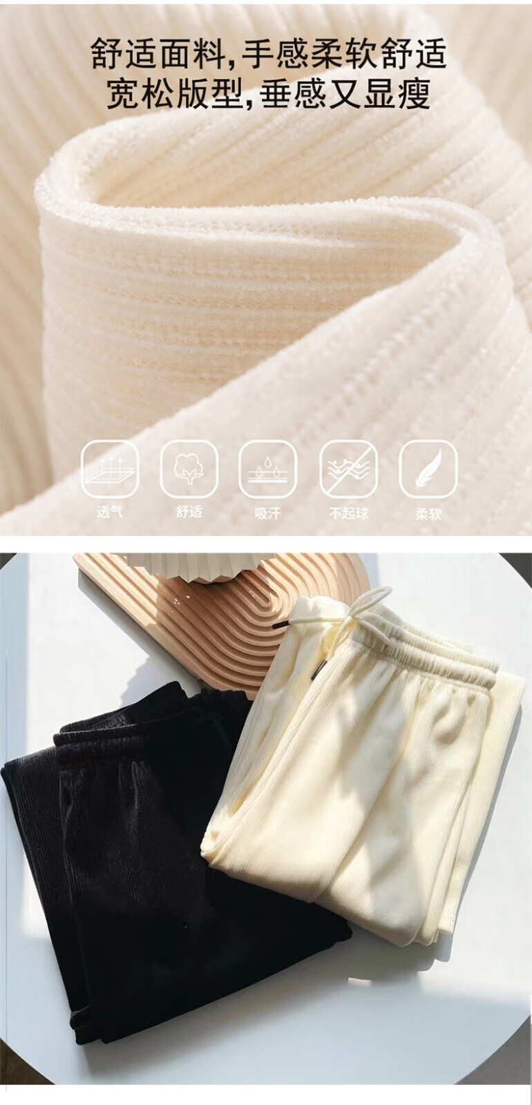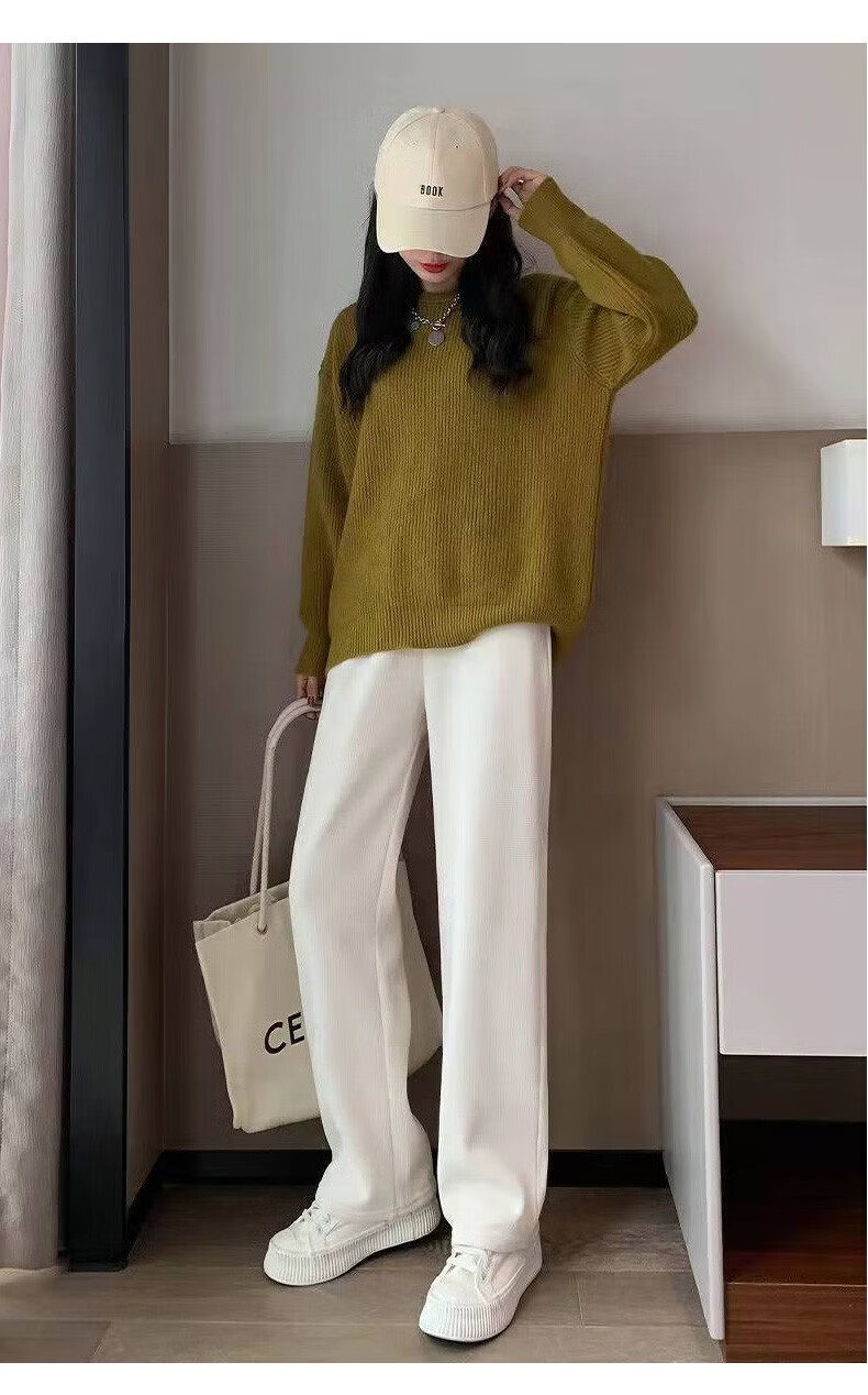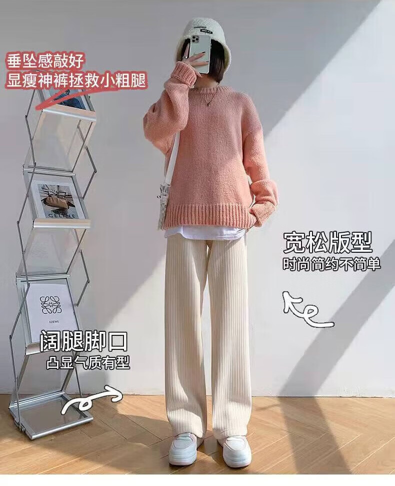 宝娜斯(BONAS)窄版阔腿裤女春秋直筒运动长裤小个子高腰显瘦垂感休闲打底裤 黑色 春秋款-欧棉绒 M 均码 (155-175/85-105c)