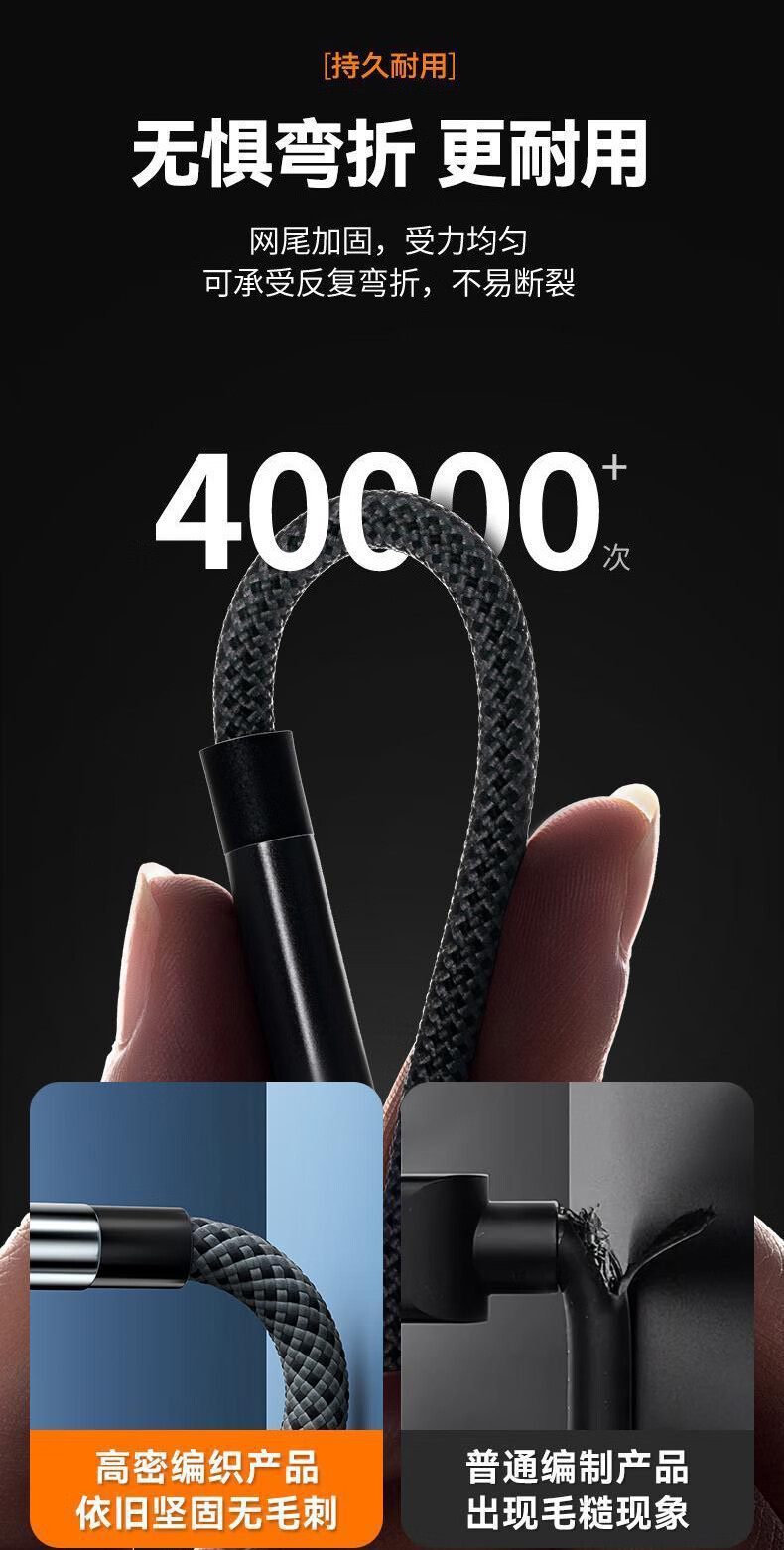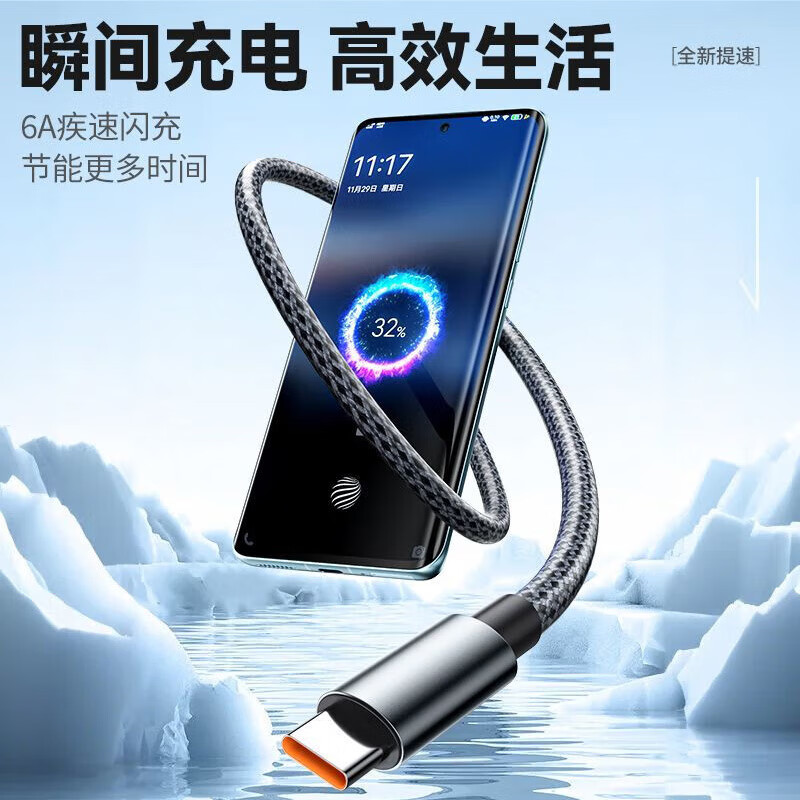 品奈优100W超级快充Type-c数据线适用华为mate50荣耀200小米vivo手机充电线车载6A闪充线 1条装【1米】安全快充不伤机