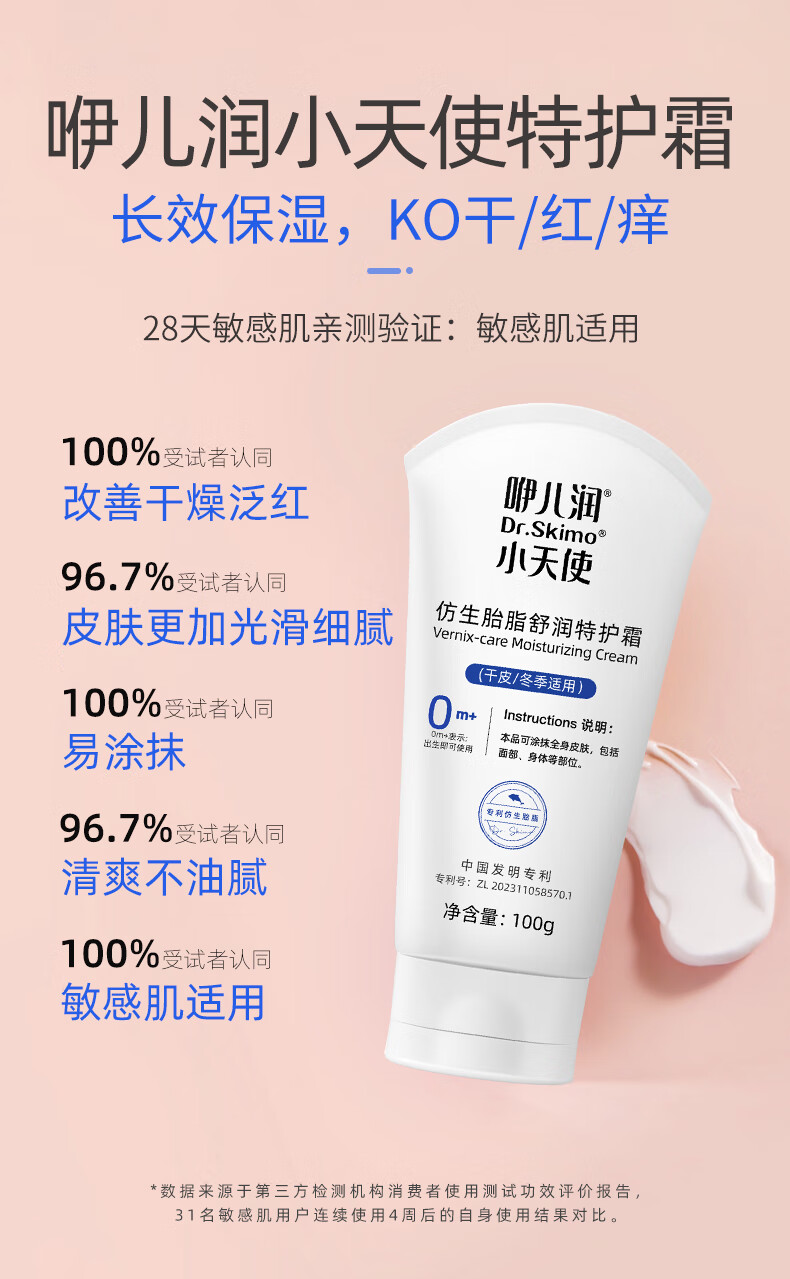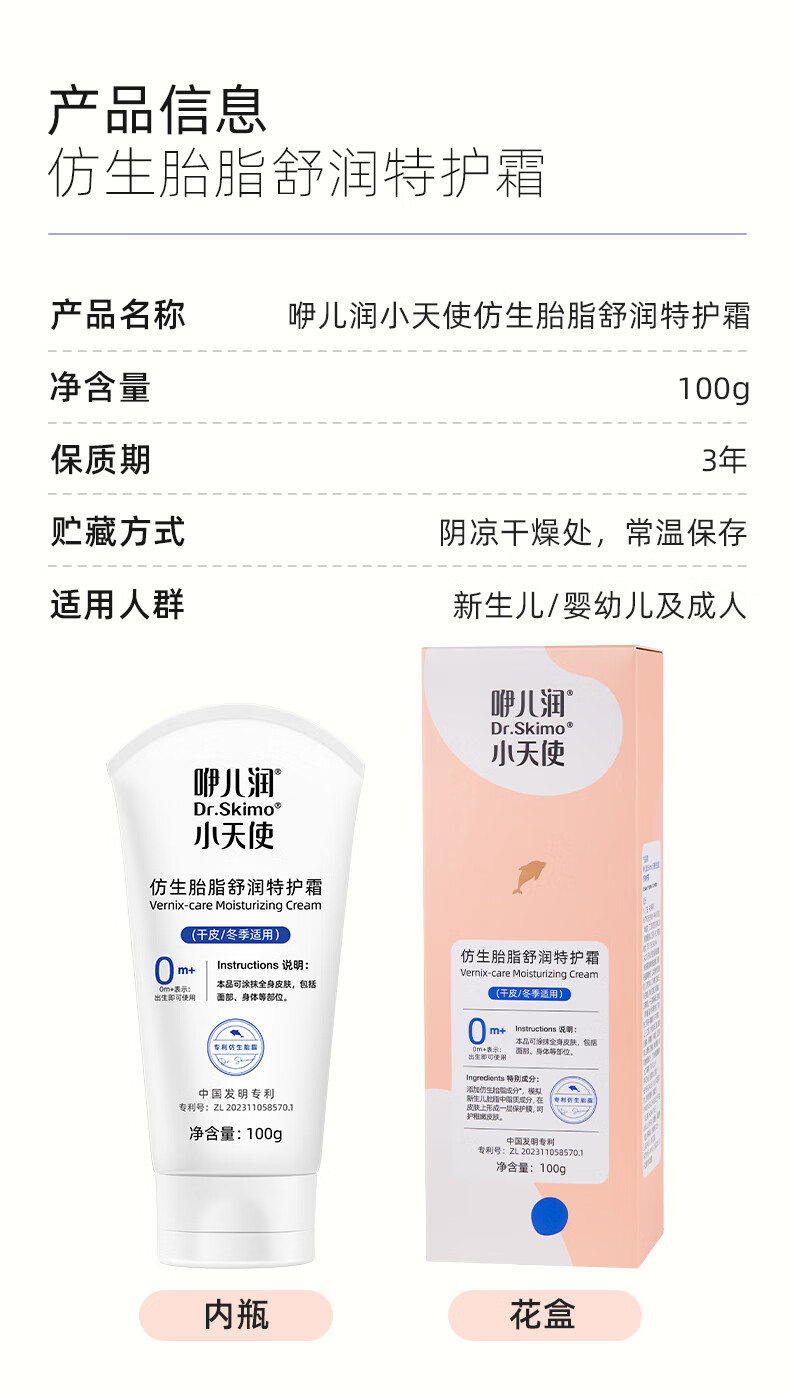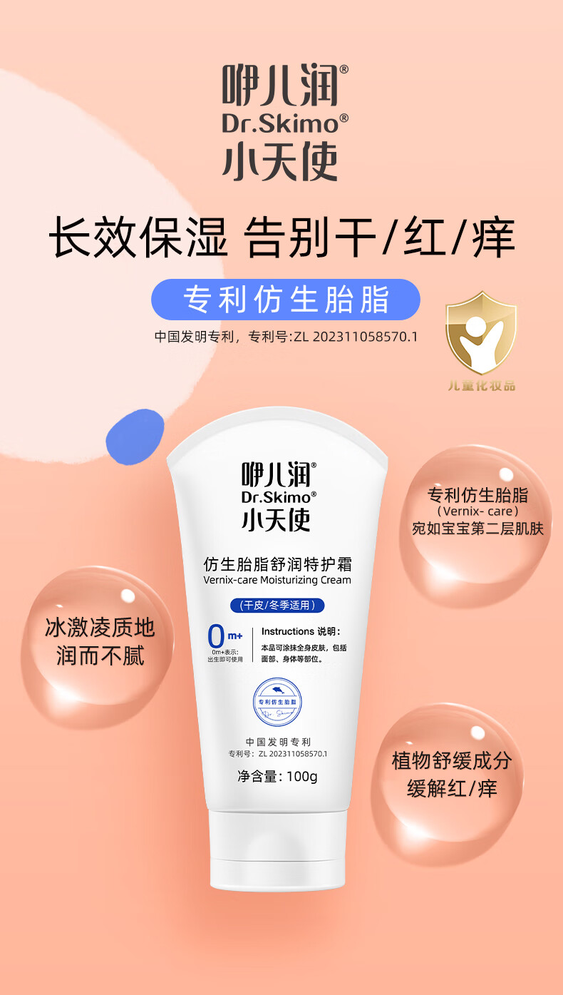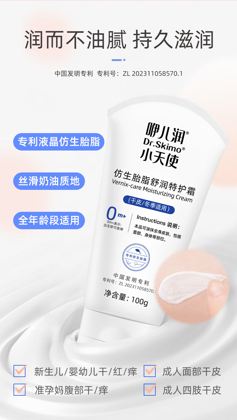 咿儿润小天使仿生胎脂特护霜100g婴儿秋冬保湿面霜【干/敏/红必囤】
