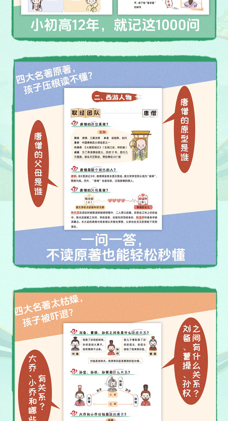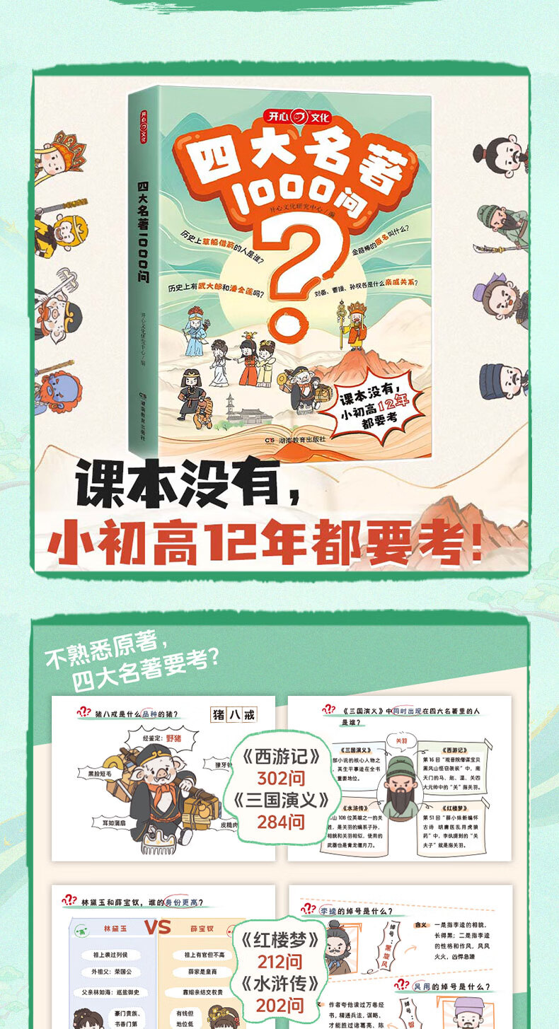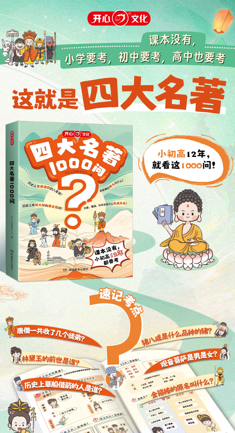 开心 四大名著1000问小学初高中生必考知识点一本全汇总思维导图西游记水浒传三国演义红楼梦正版原著漫画解读人物关系全国通用版 四大名著1000问(小初高适用)