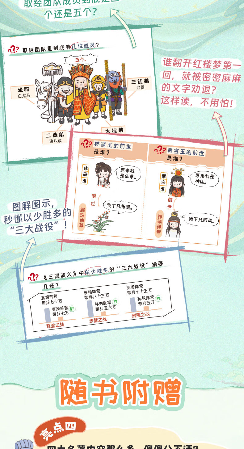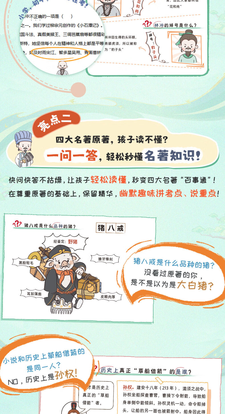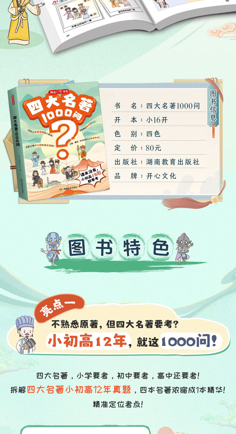 开心 四大名著1000问小学初高中生必考知识点一本全汇总思维导图西游记水浒传三国演义红楼梦正版原著漫画解读人物关系全国通用版 四大名著1000问(小初高适用)