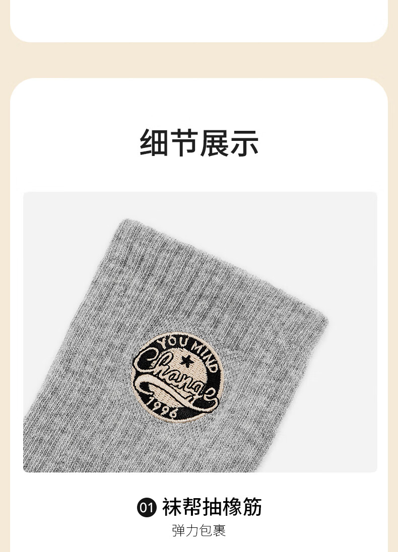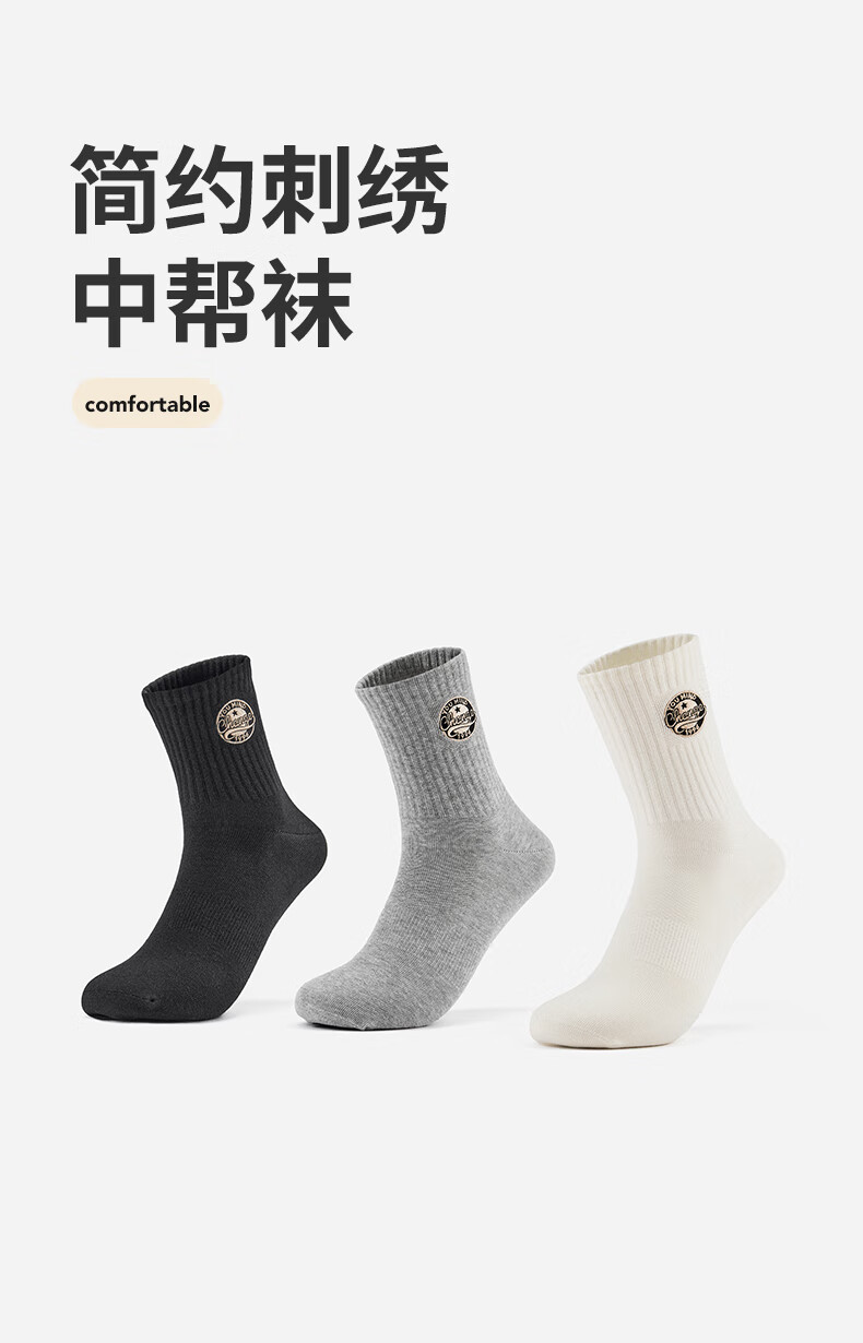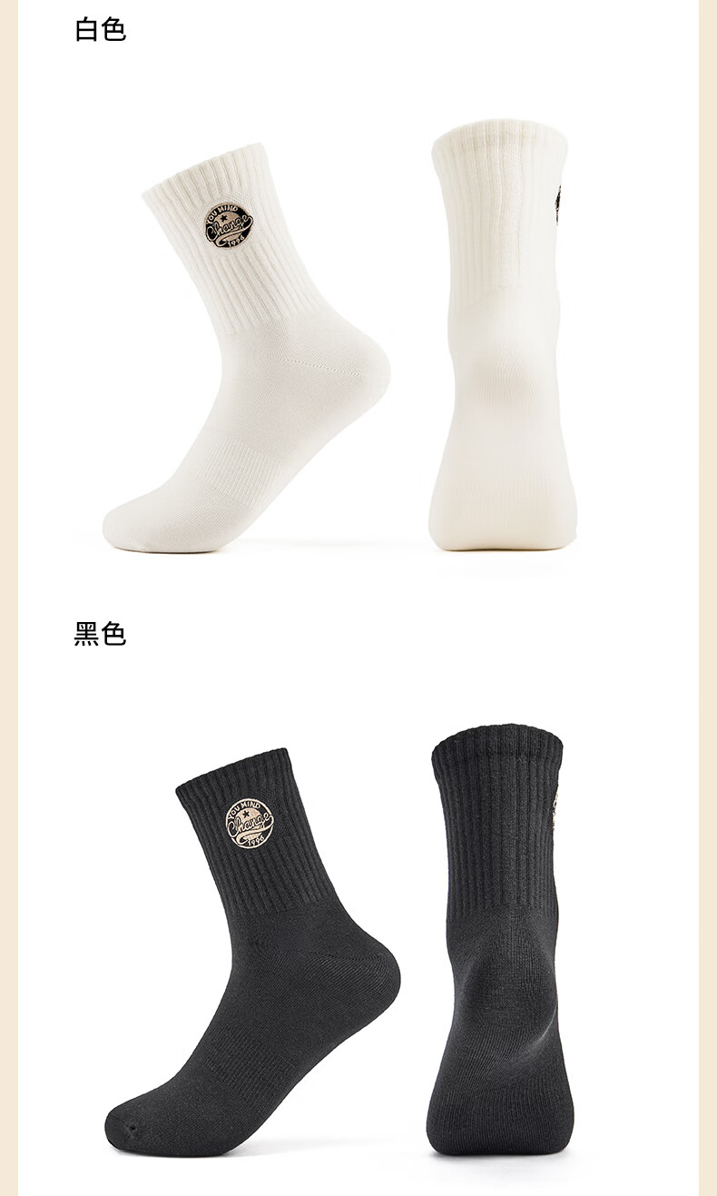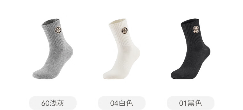 热风男士中帮袜2025年秋季新款简约刺绣弹力百搭户外运动中帮袜 04白色 1双 均码