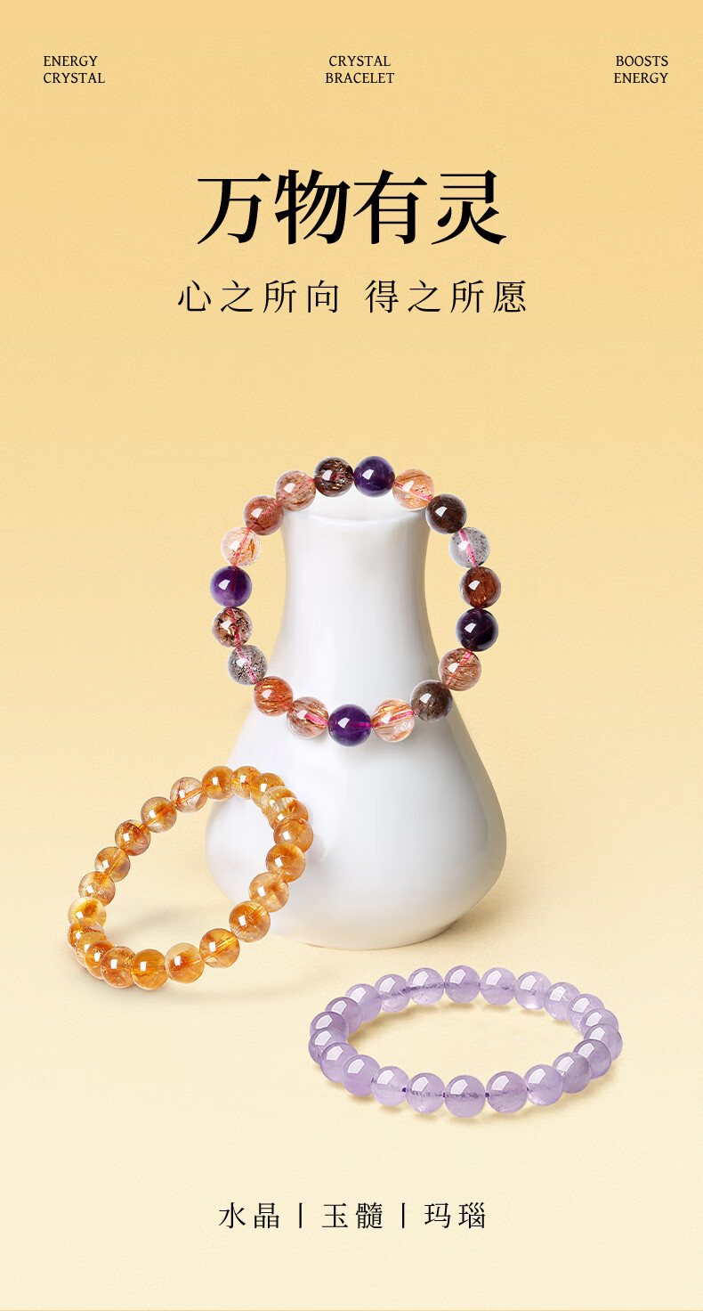 周大生黄水晶紫水晶手串超七玛瑙绿幽灵手链招财纳福生日礼物送女友