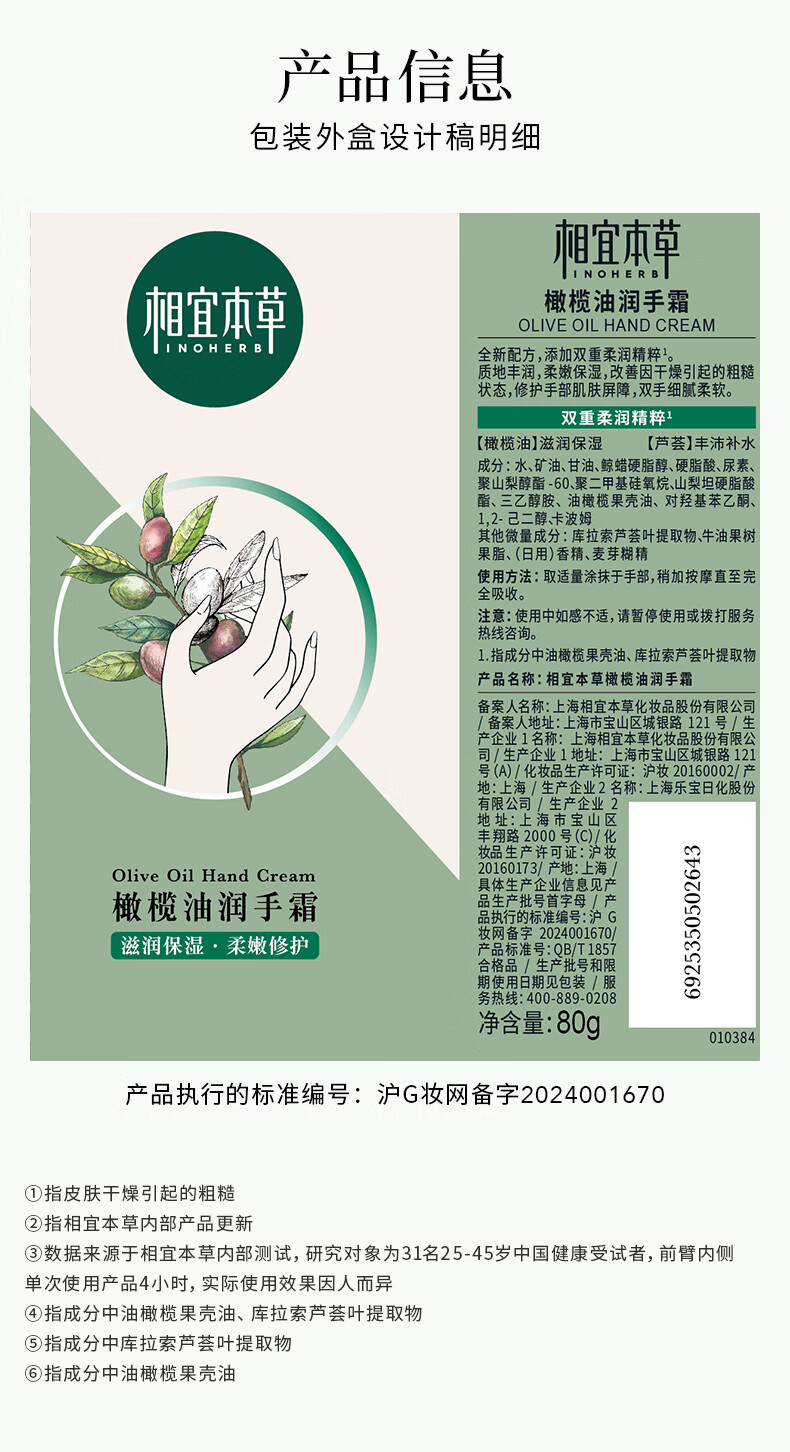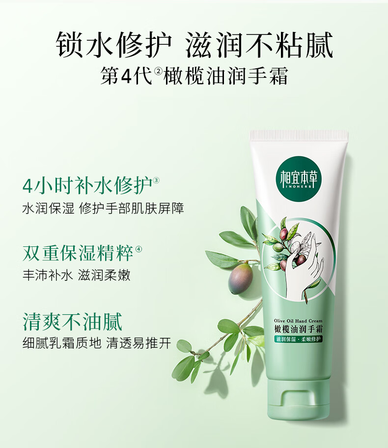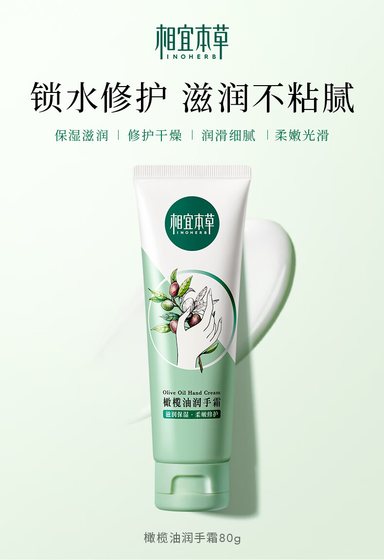 相宜本草 橄榄油润手霜 80g(嫩肤 防干修护)