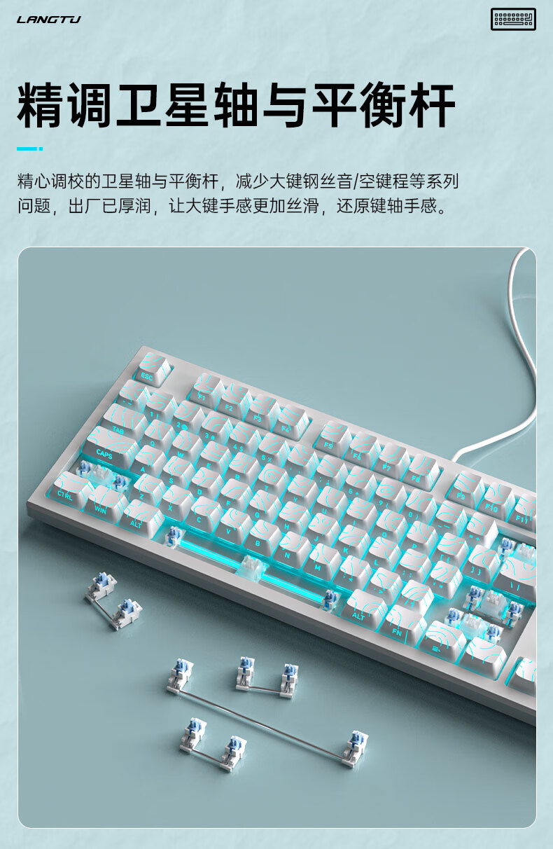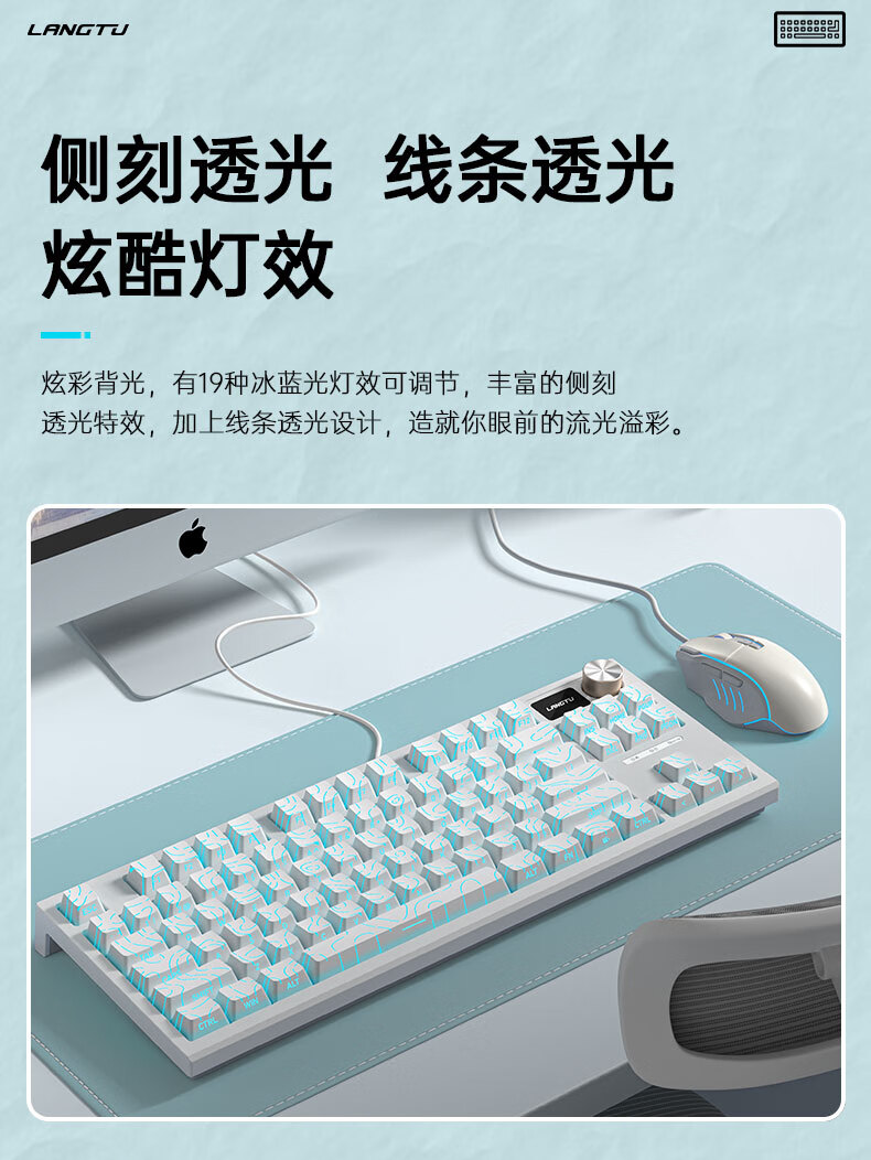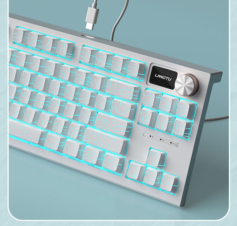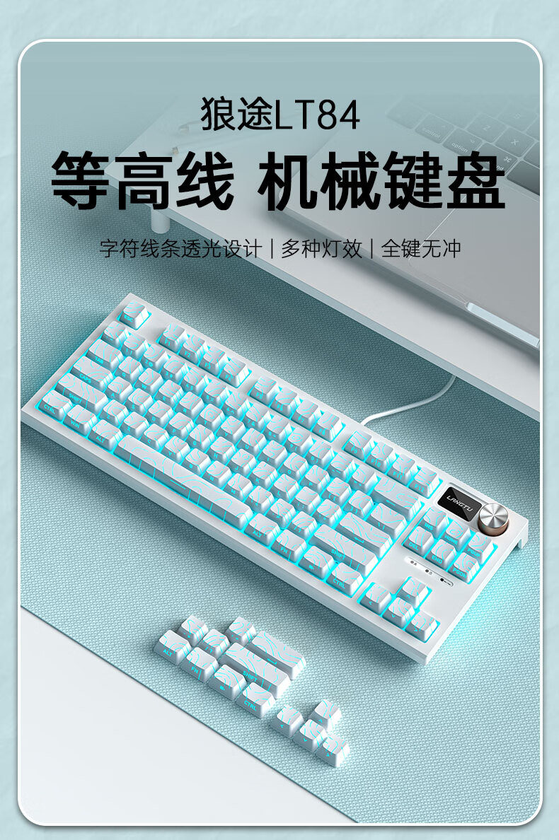 狼途LT84机械键盘客制化键盘有线/三模无线电竞游戏键盘平板电脑笔记本办公键盘/键鼠套装全键热插拔 白色冰蓝【有线Logo屏】青轴单光