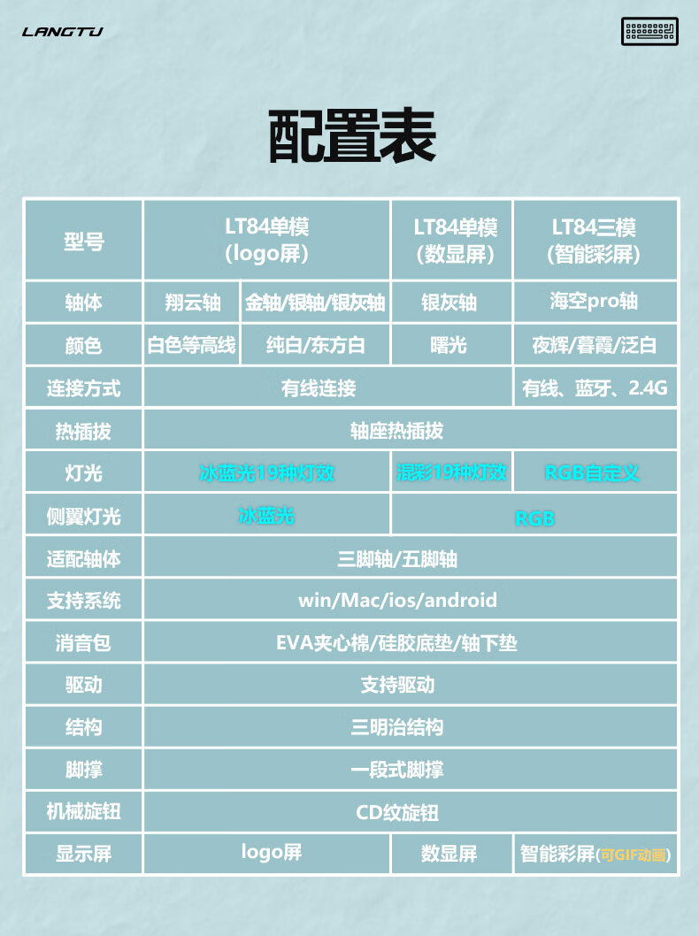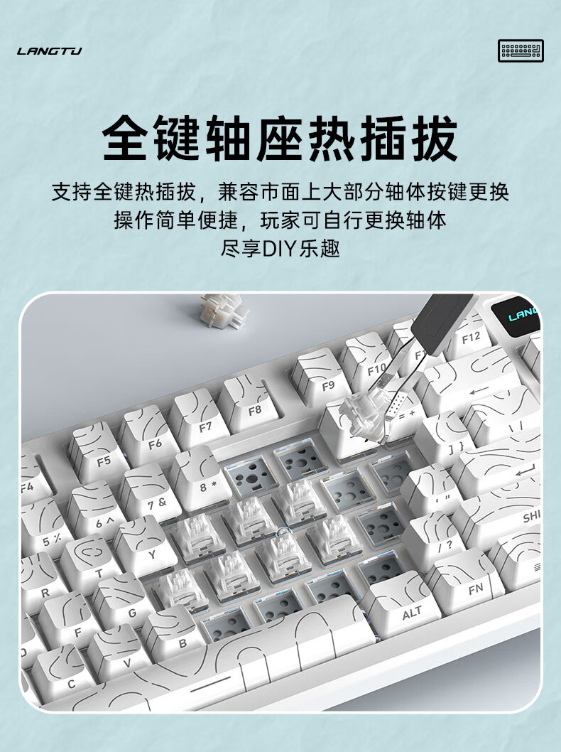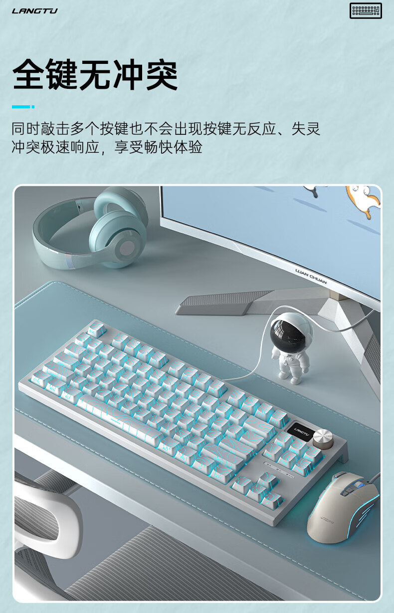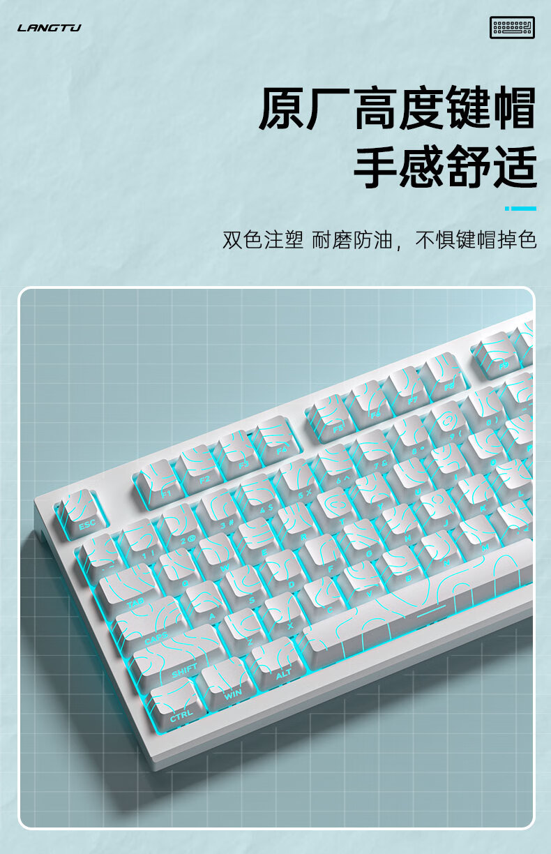 狼途LT84机械键盘客制化键盘有线/三模无线电竞游戏键盘平板电脑笔记本办公键盘/键鼠套装全键热插拔 白色冰蓝【有线Logo屏】青轴单光