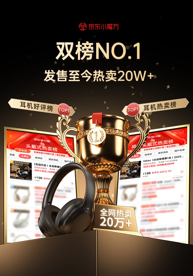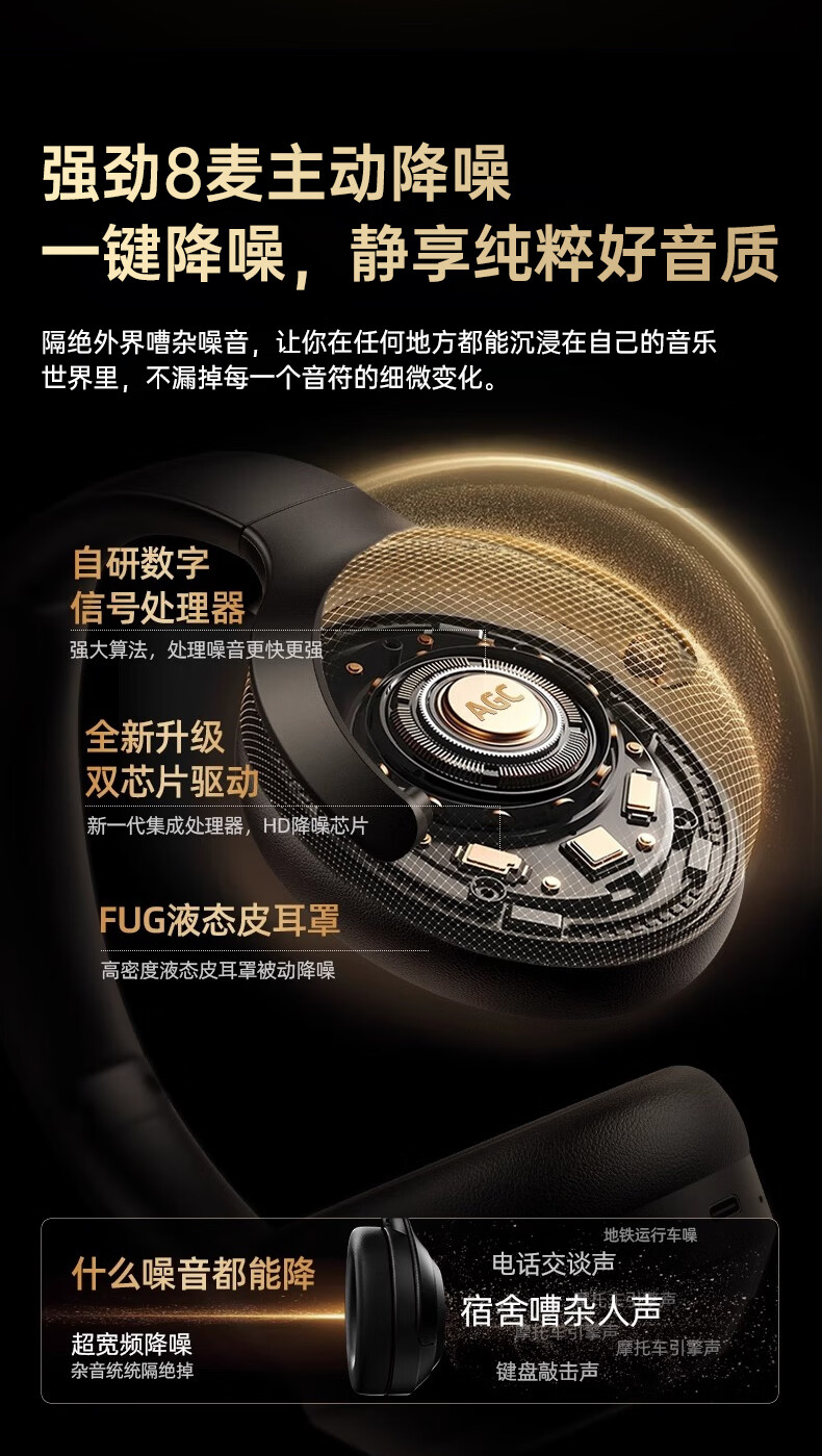 Viken【2025最新款丨柏林之声】蓝牙耳机头戴式主动降噪无线高音质音乐隔音游戏金榜第一名适用苹果小米