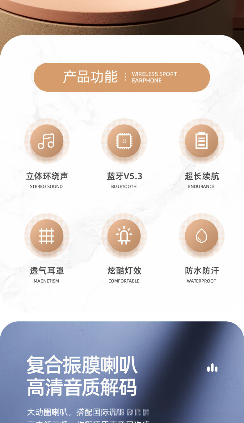 艾勒丝汀【晶钻小巨蛋丨挂耳式狂甩不掉】蓝牙耳机开放式运动跑步无线骨传导超长续航降噪耳夹式不入耳式 云岩肤【独立空间音频】 【空间环绕音+开放不入耳+舒适不漏音】