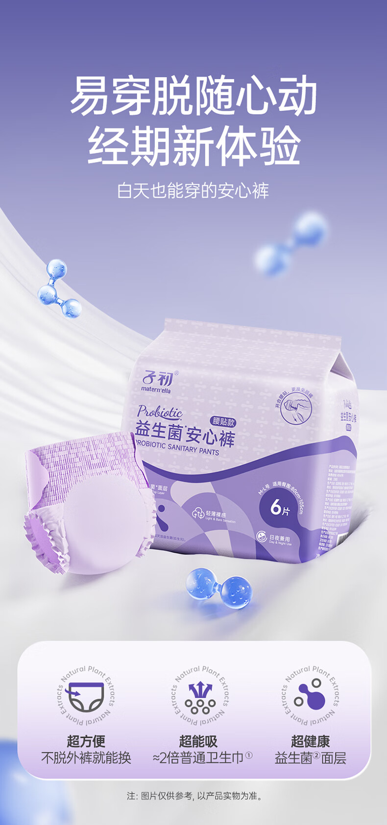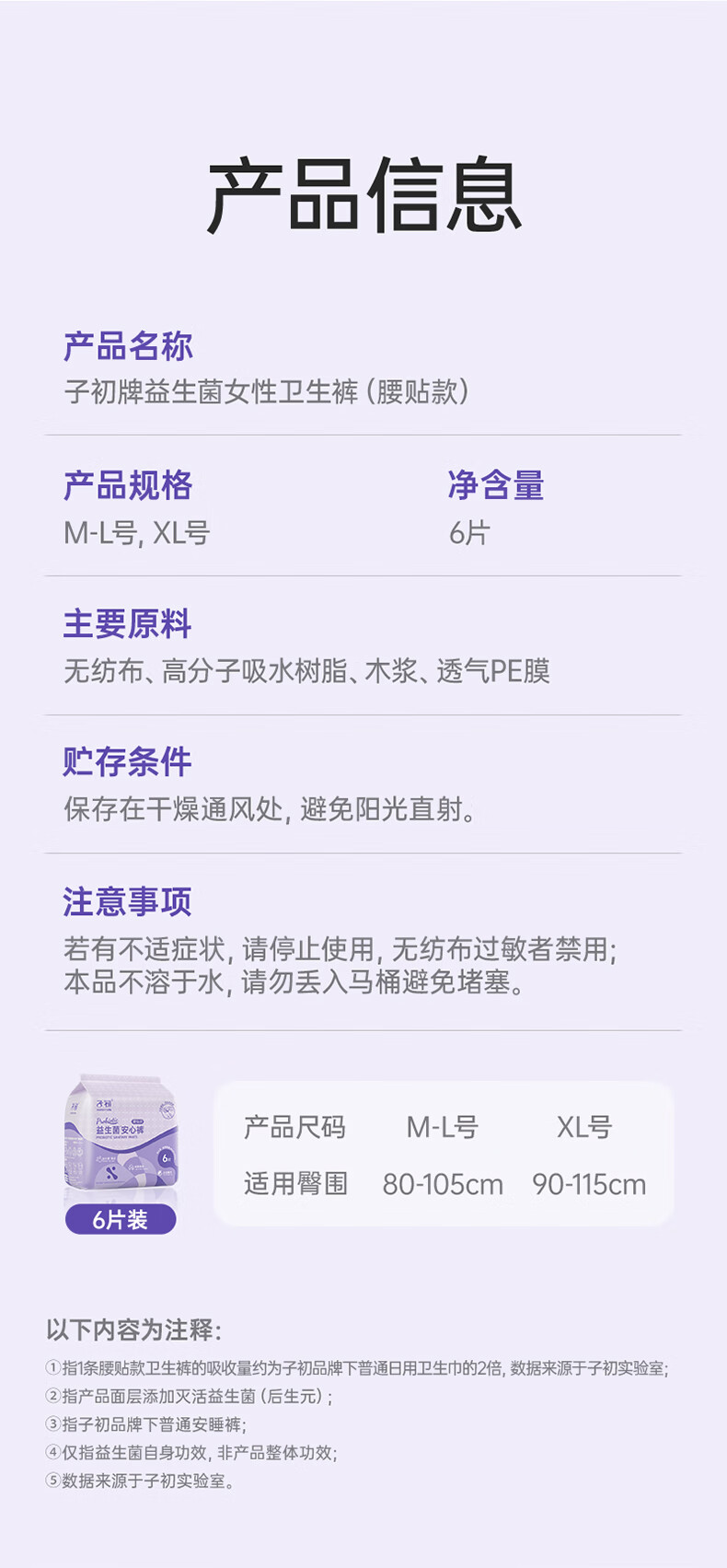 子初益生菌安睡裤魔术贴产妇经期女透气早安裤免脱裤日夜生理期专用 腰贴裤XL码6片*5包