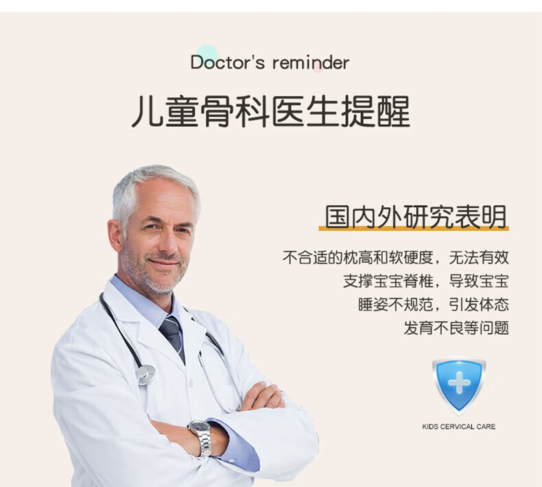 贝肽斯儿童枕头1-3-6岁宝宝定型枕6个月以上婴儿专用护颈四季通用 H1【1-3岁】凉暖双面