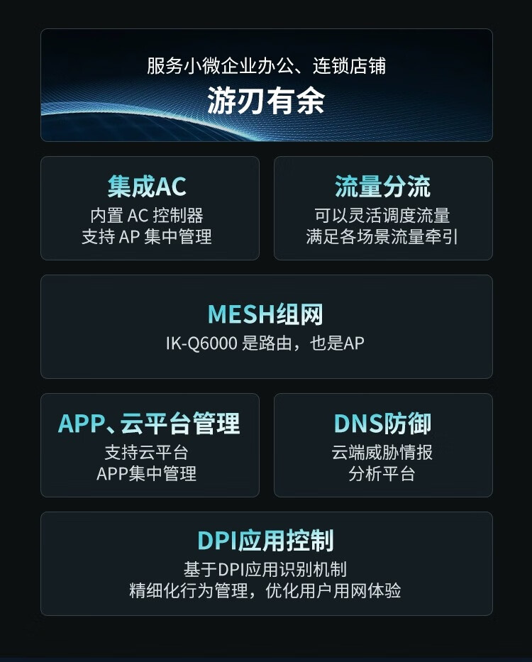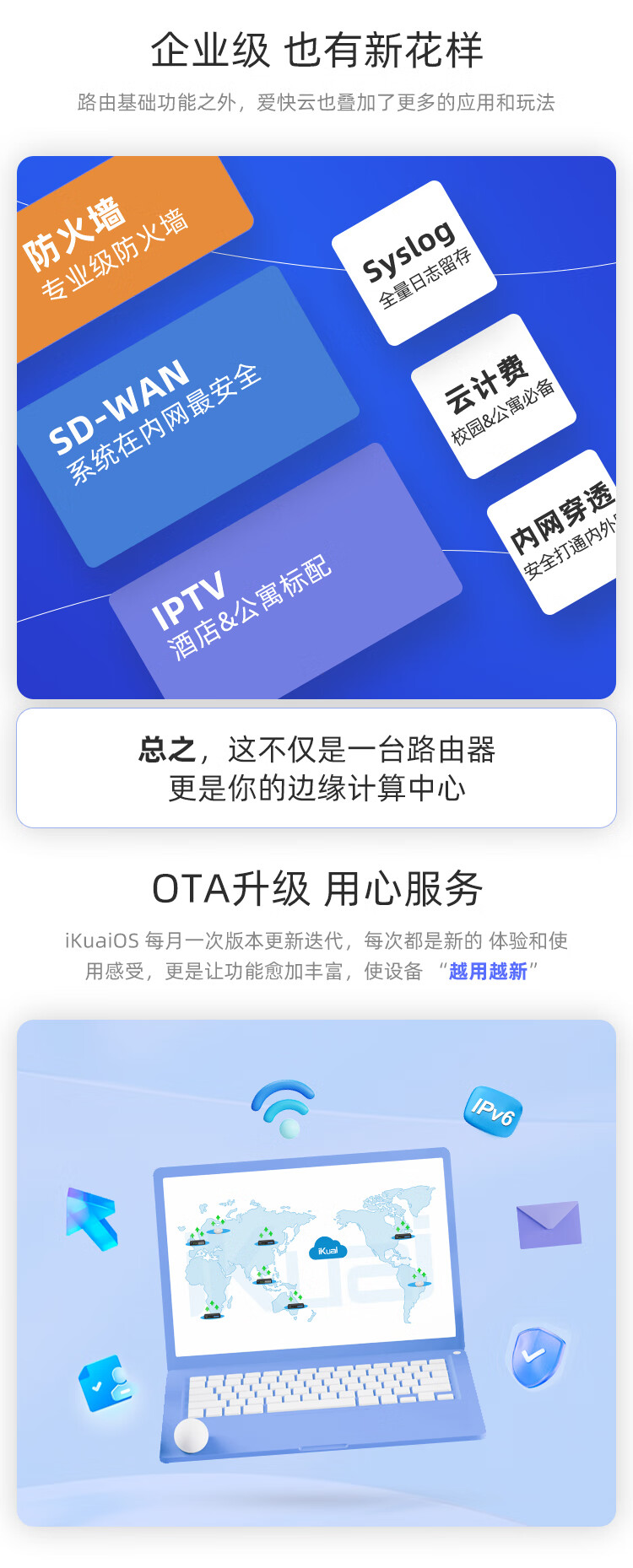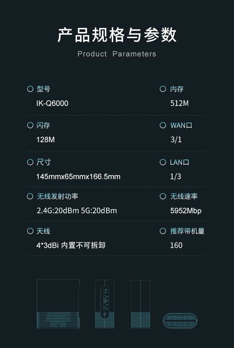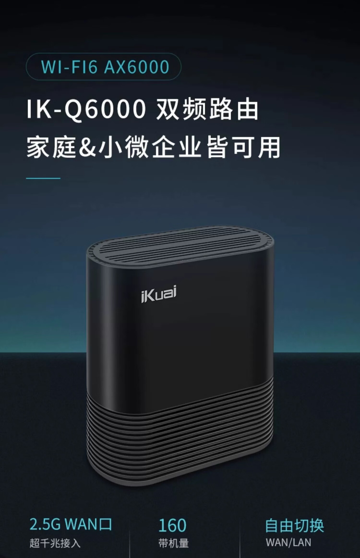 爱快(iKuai)2.5gWiFi6企业级无线路由器AX6000子母路由 5G双频 多wan口/ipv6/宽带叠加/上网管控/无线AP Q6000