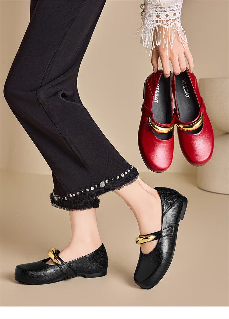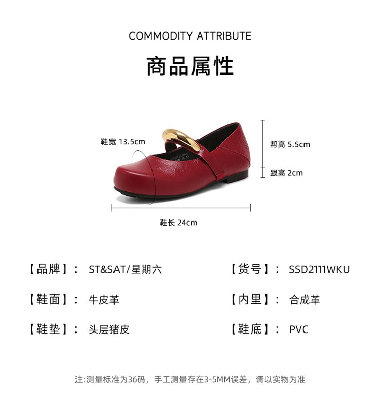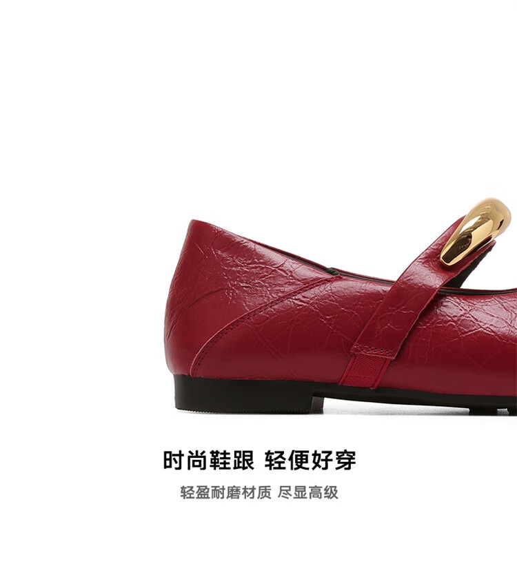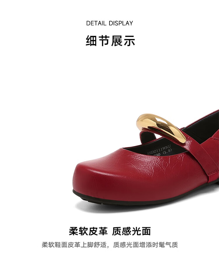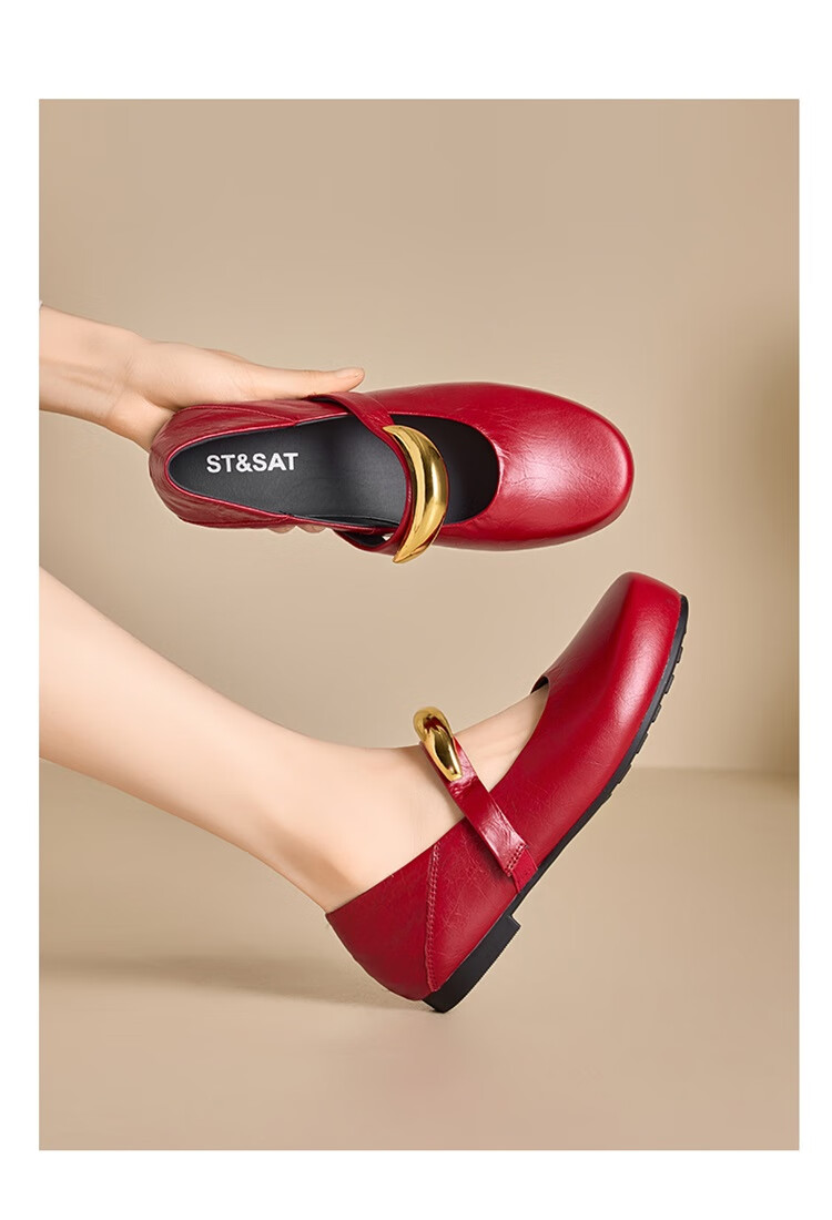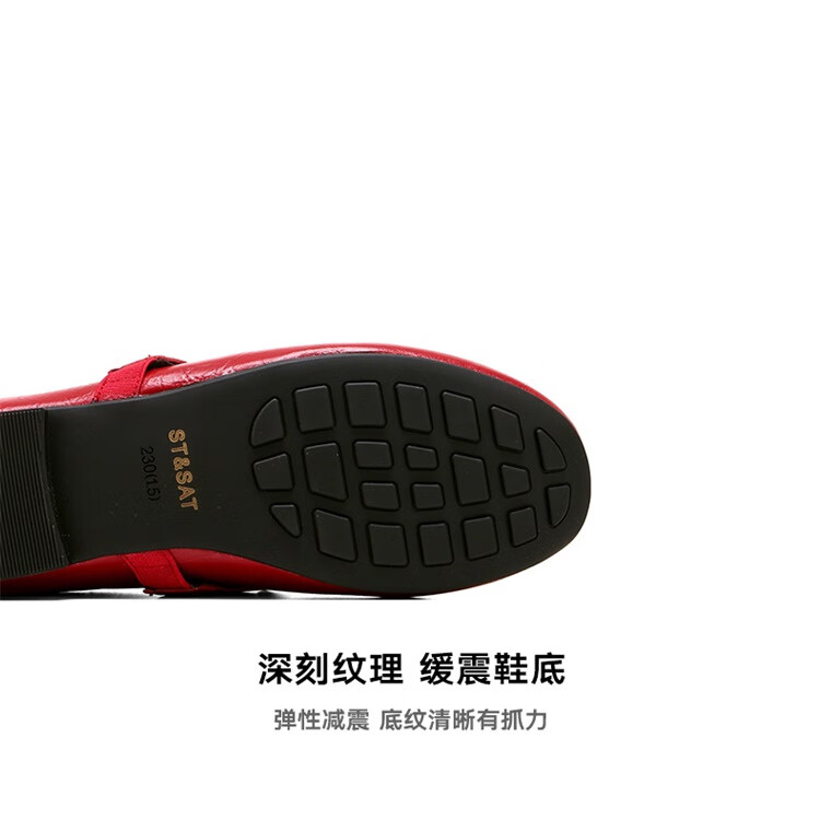 星期六时尚圆头女鞋2025夏季新款百搭英伦风单鞋MTSSD2111WKU 红色 35