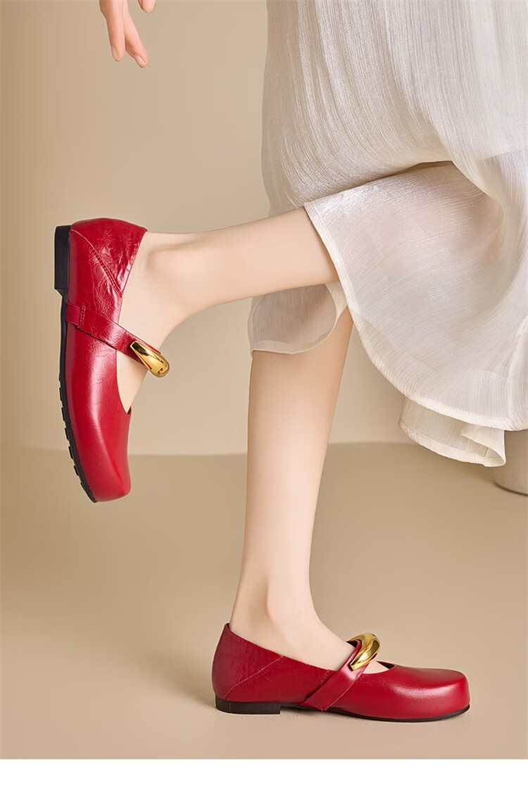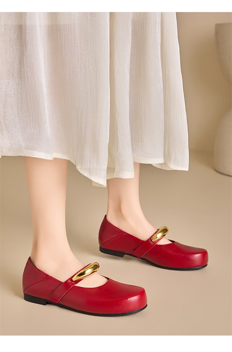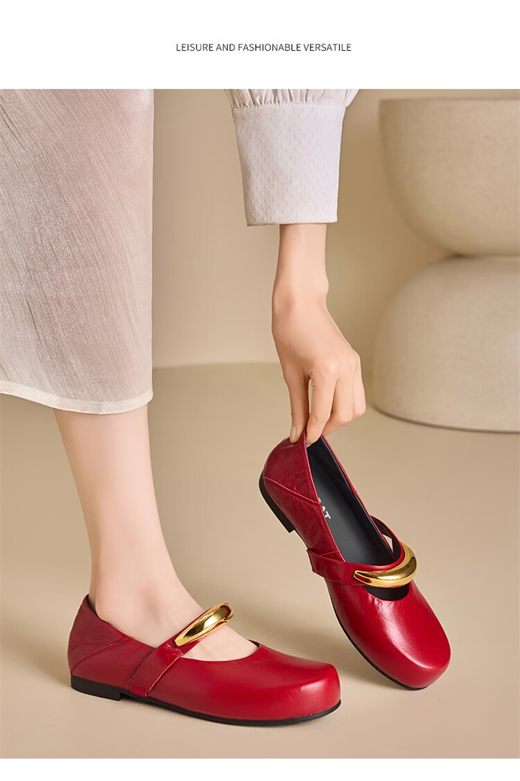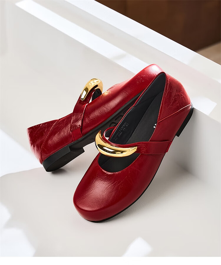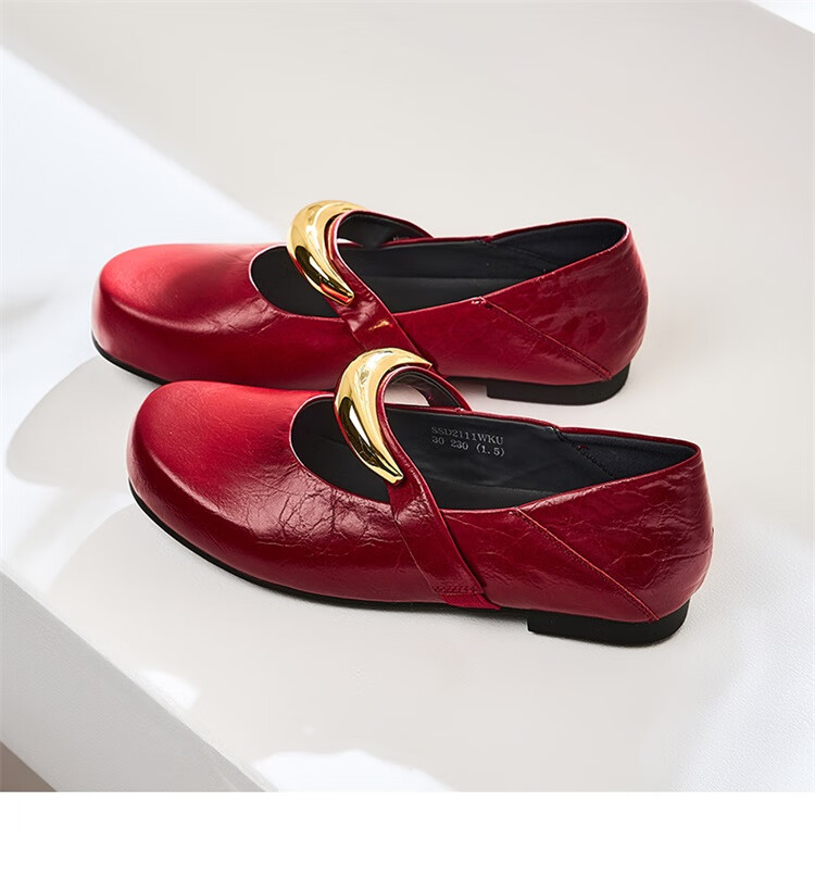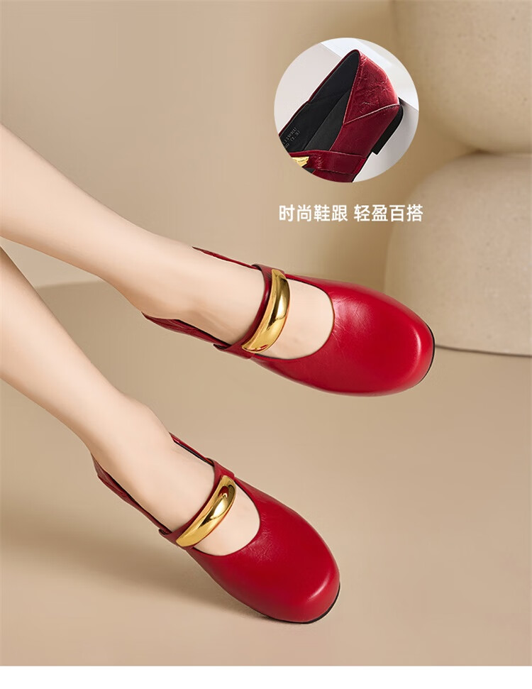 星期六时尚圆头女鞋2025夏季新款百搭英伦风单鞋MTSSD2111WKU 红色 35