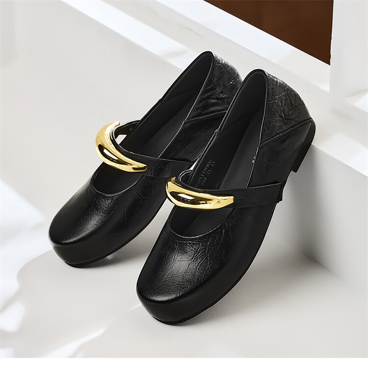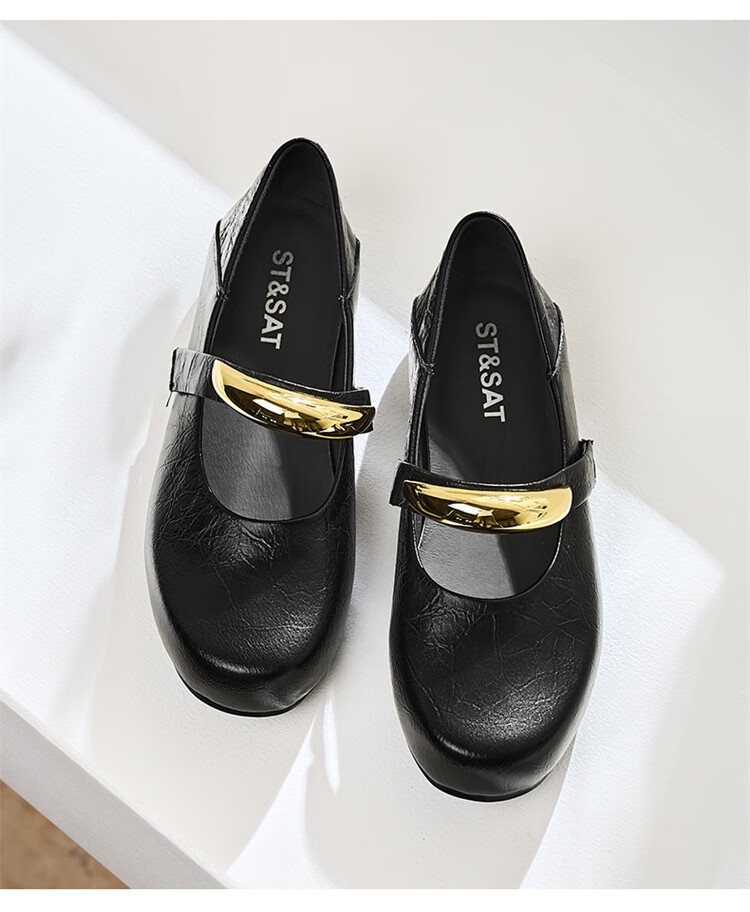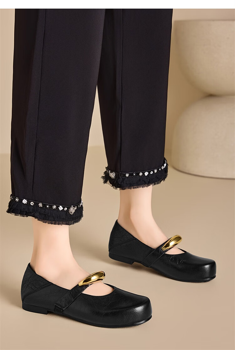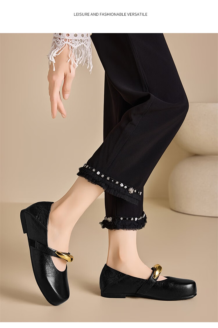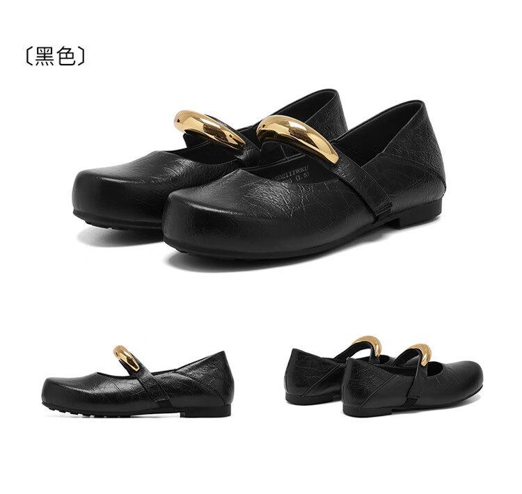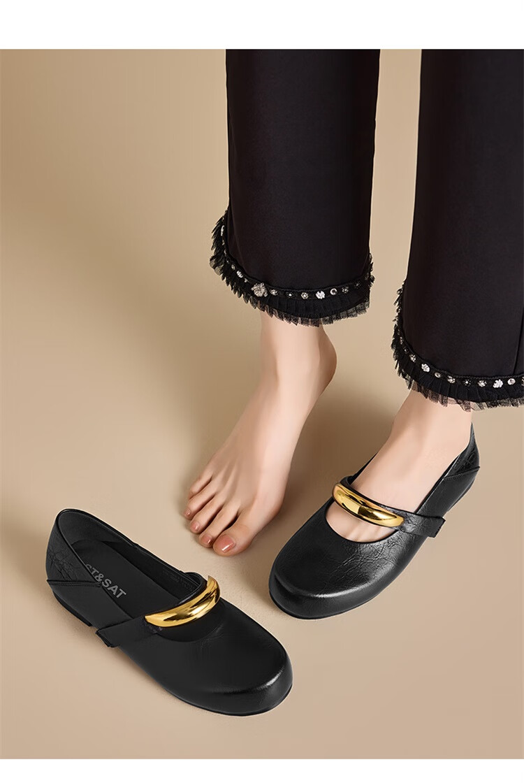 森达乐福鞋女鞋春秋新款商场同款通勤一脚蹬小皮鞋XCA01CA4 经典款-黑色 37