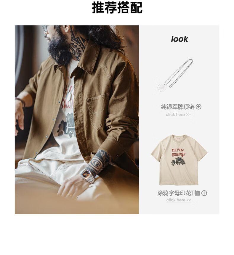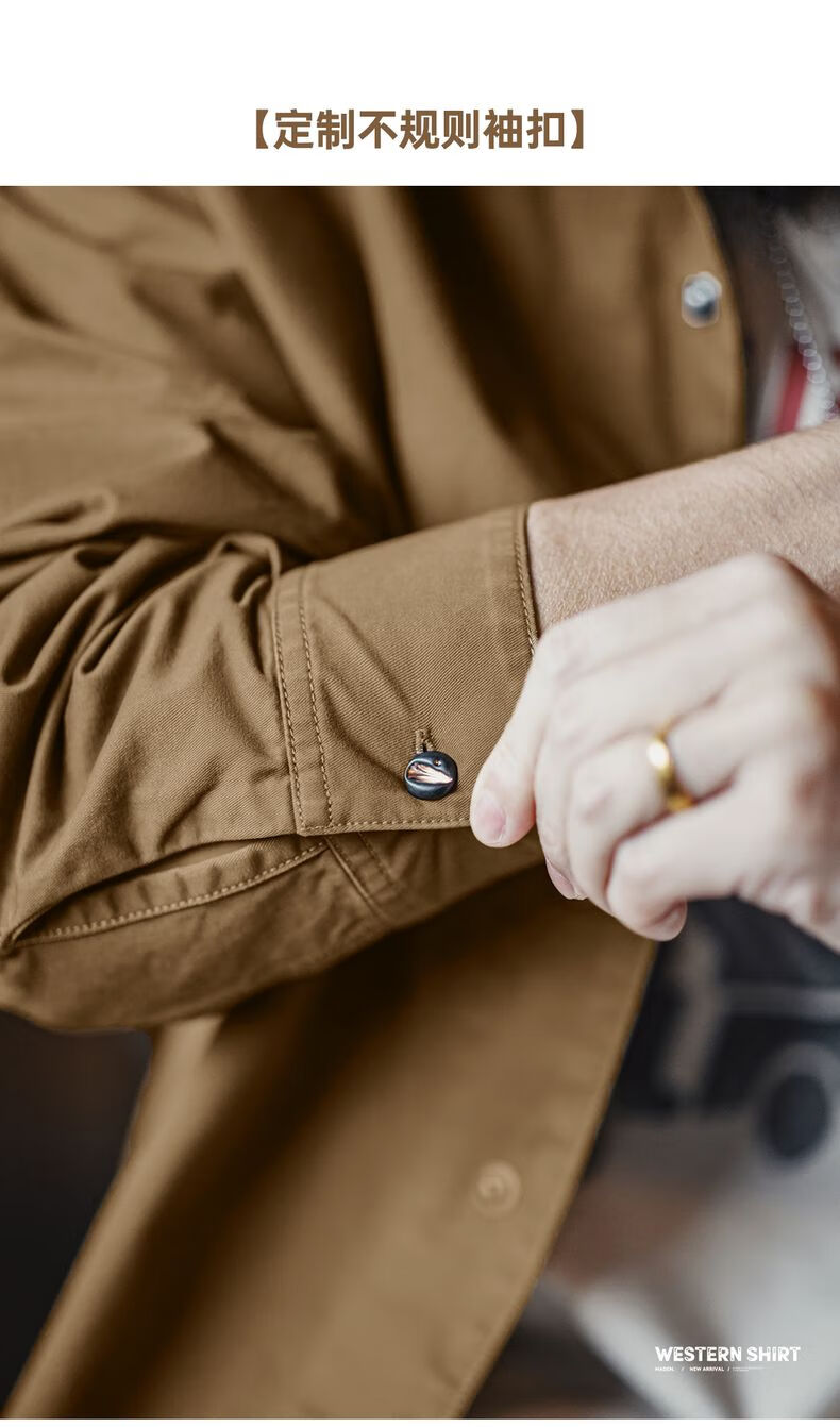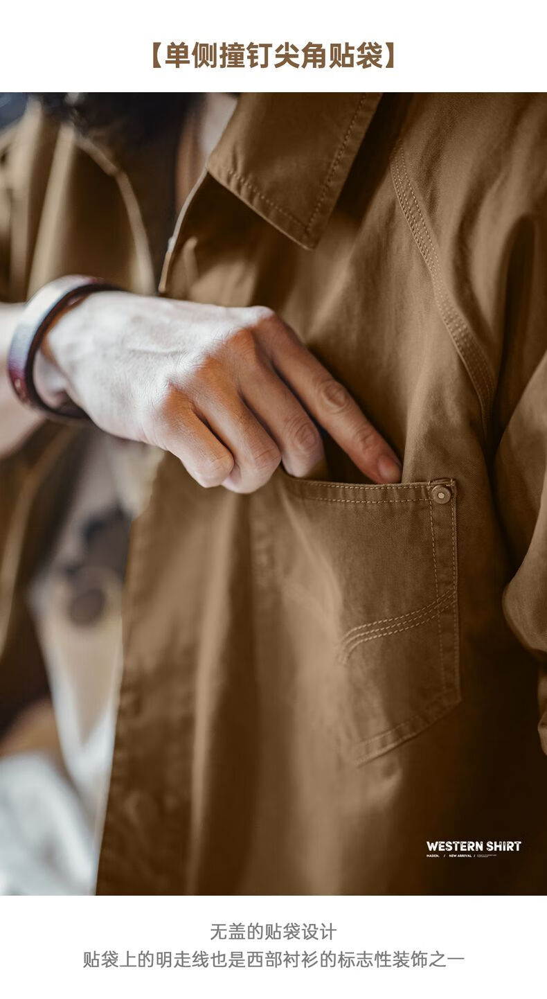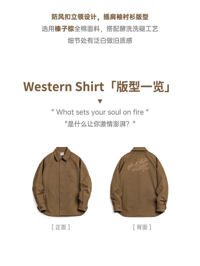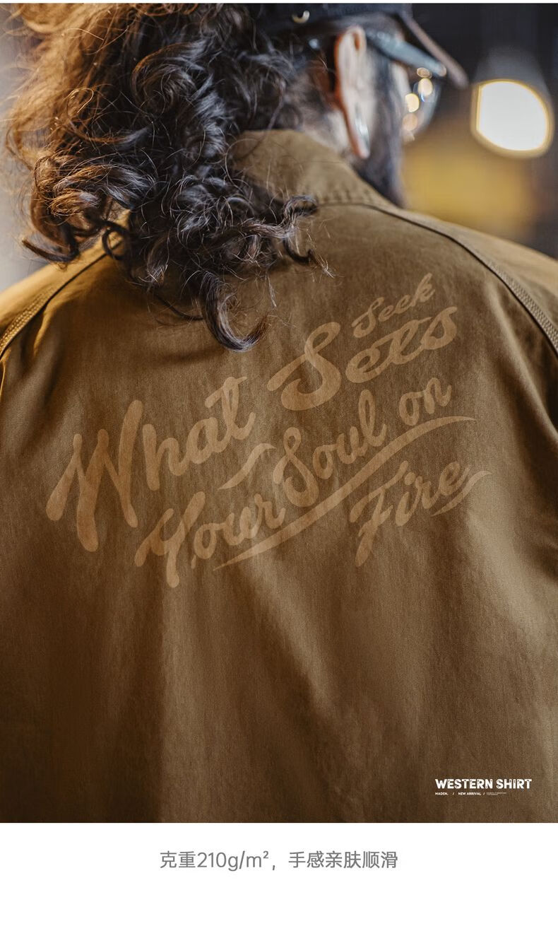 马登工装美式复古荒野西部衬衫美拉德印花牛仔衬衣纯棉长袖外套男秋 榛子棕 L (175)