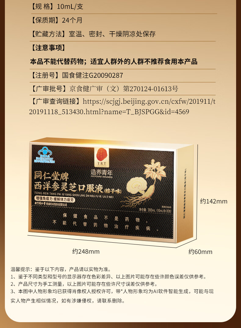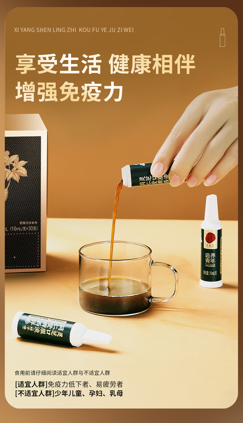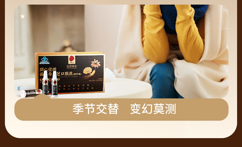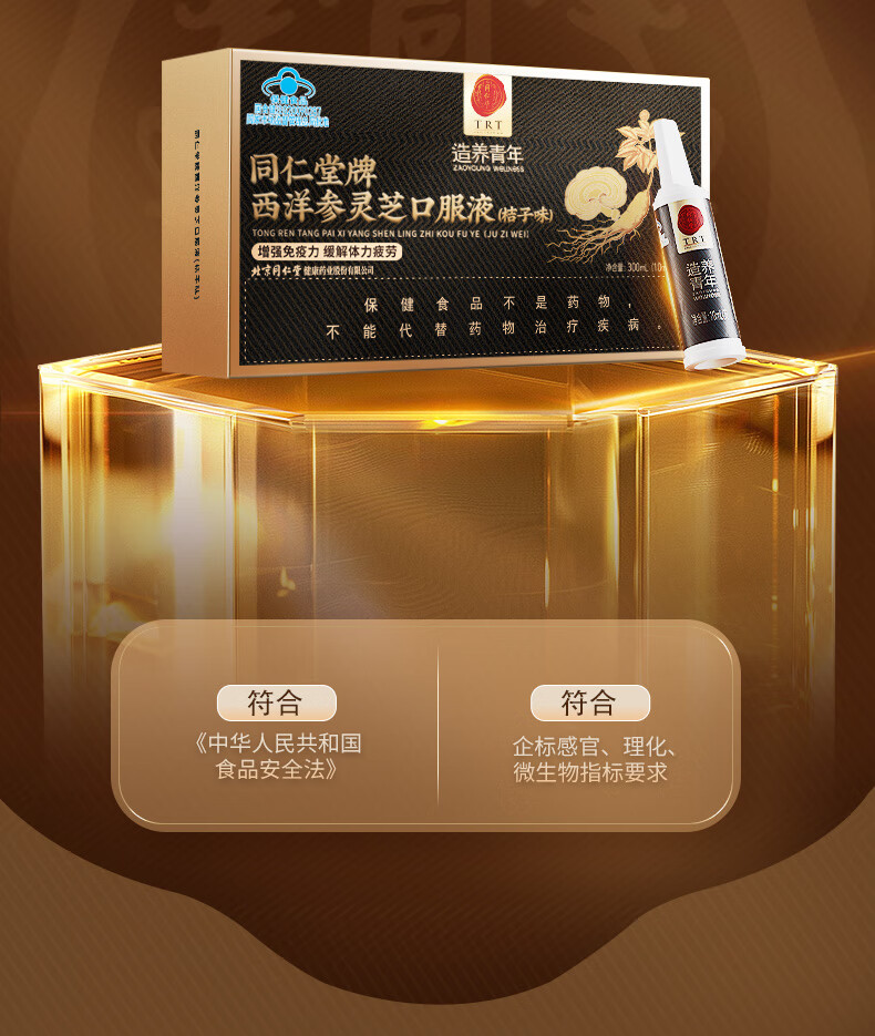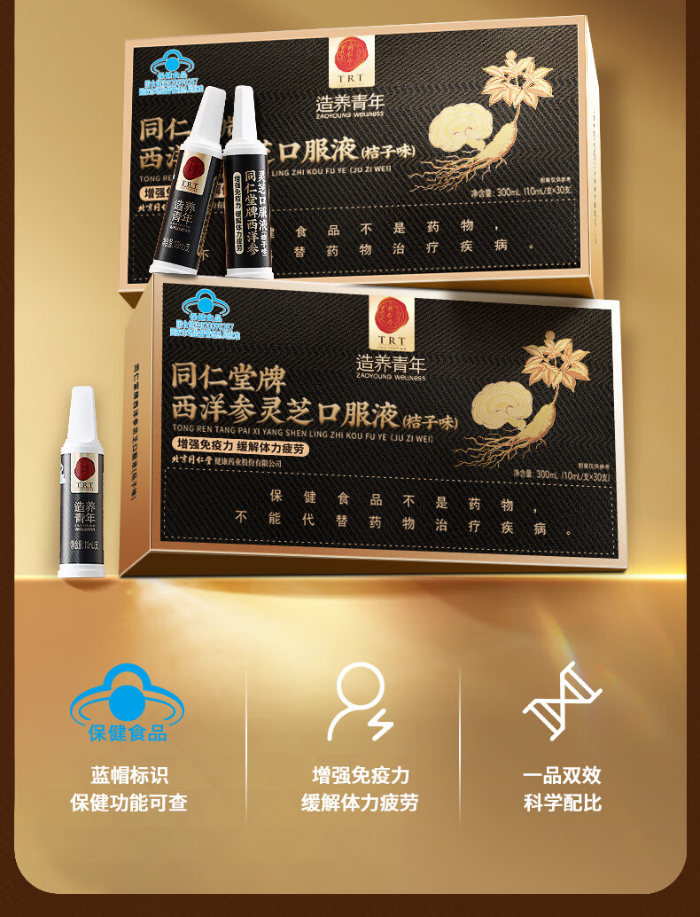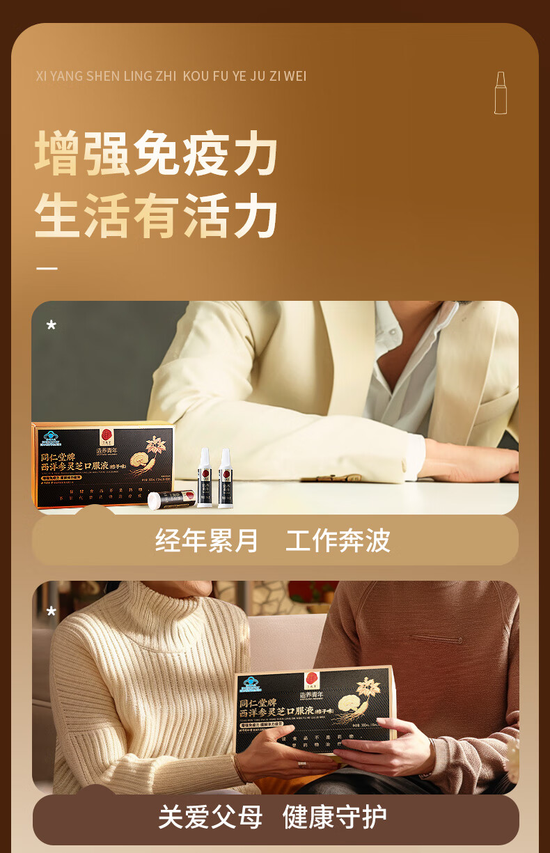 同仁堂西洋参灵芝口服液成人中老年营养品补品保健品送父母长辈礼盒90支