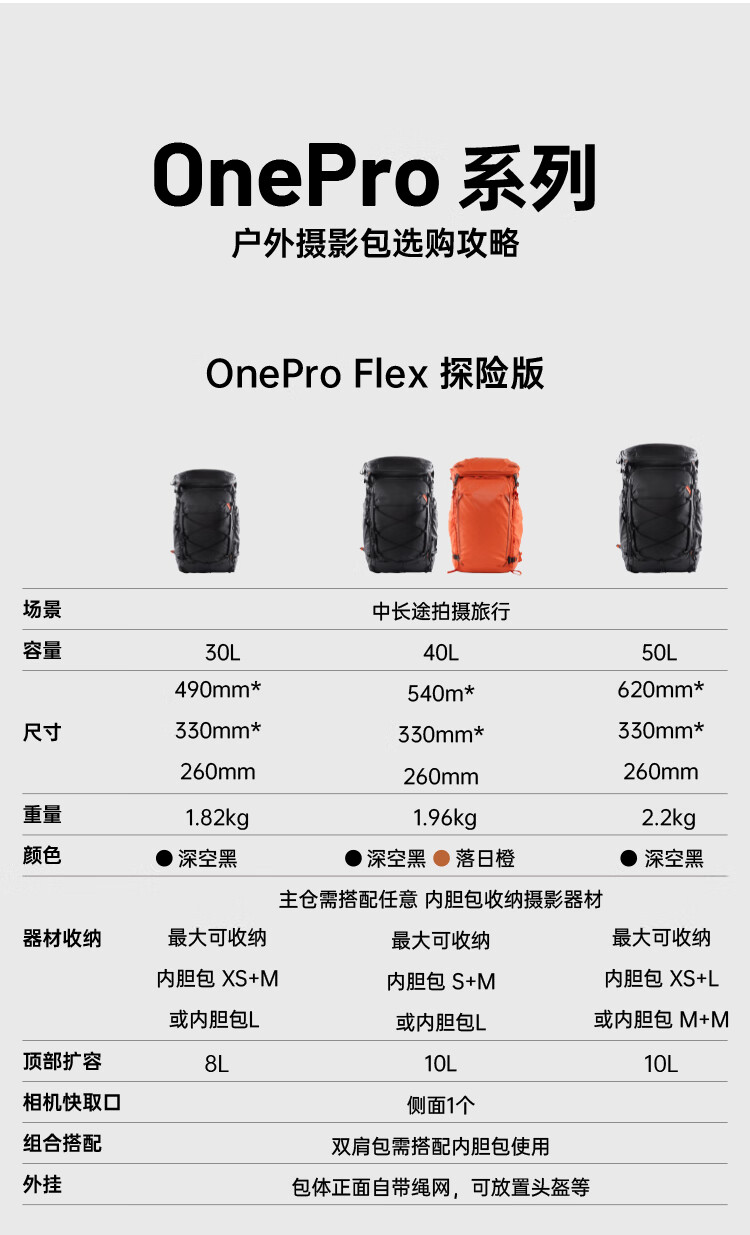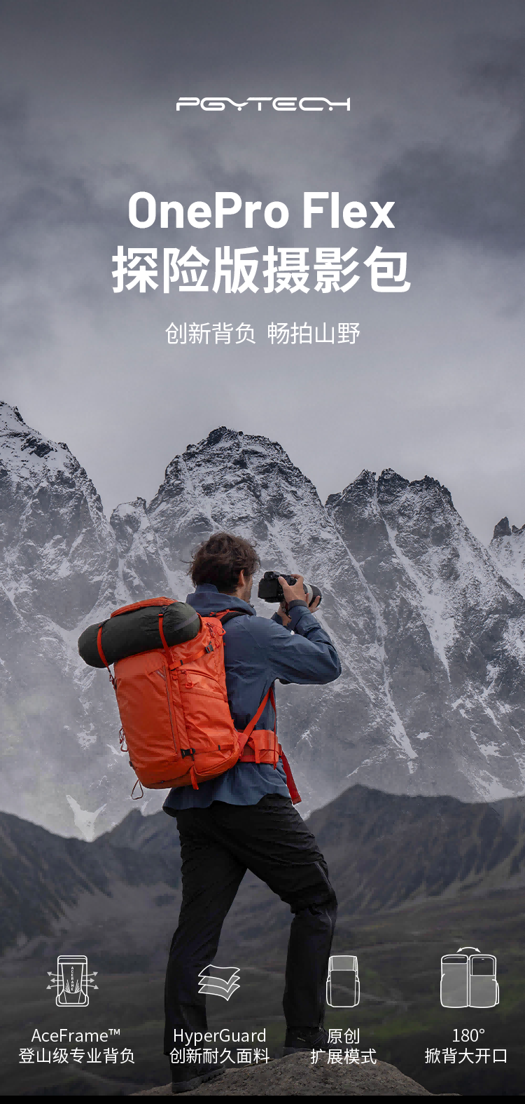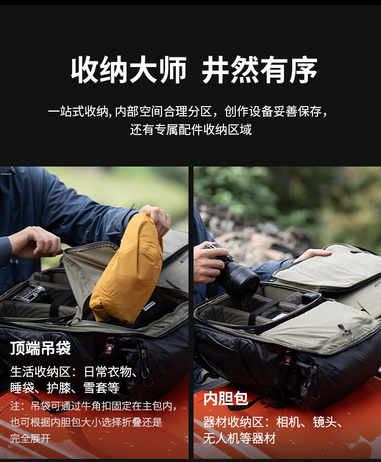 PGYTECH相机包OneproFlex蒲公英登山摄影包佳能索尼单反微单相机双肩包专业户外探险版40L中号M内胆套装