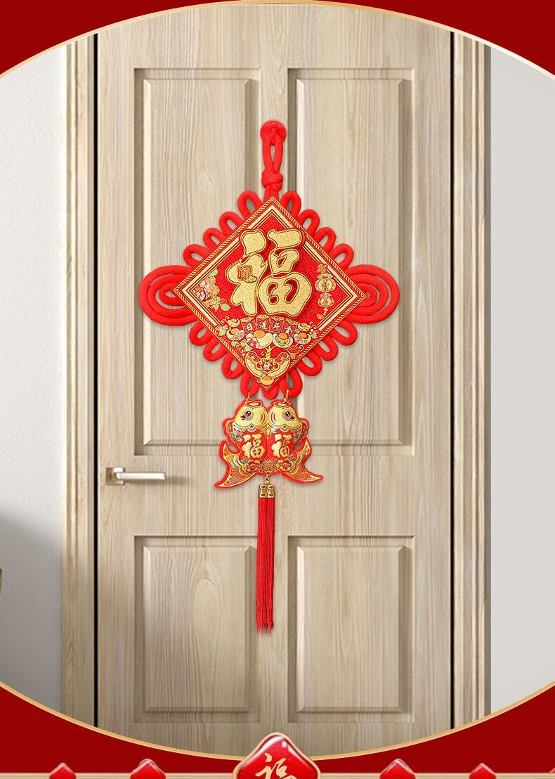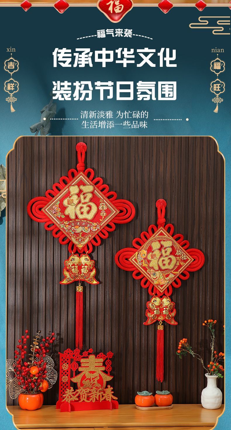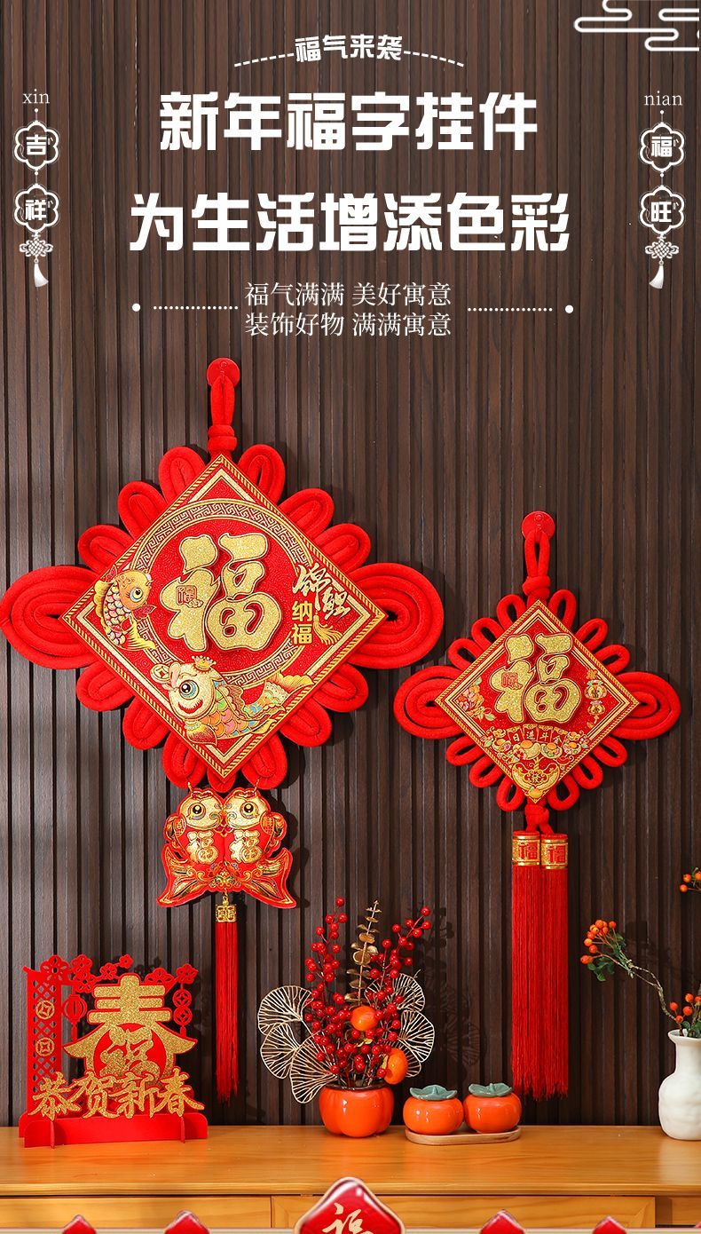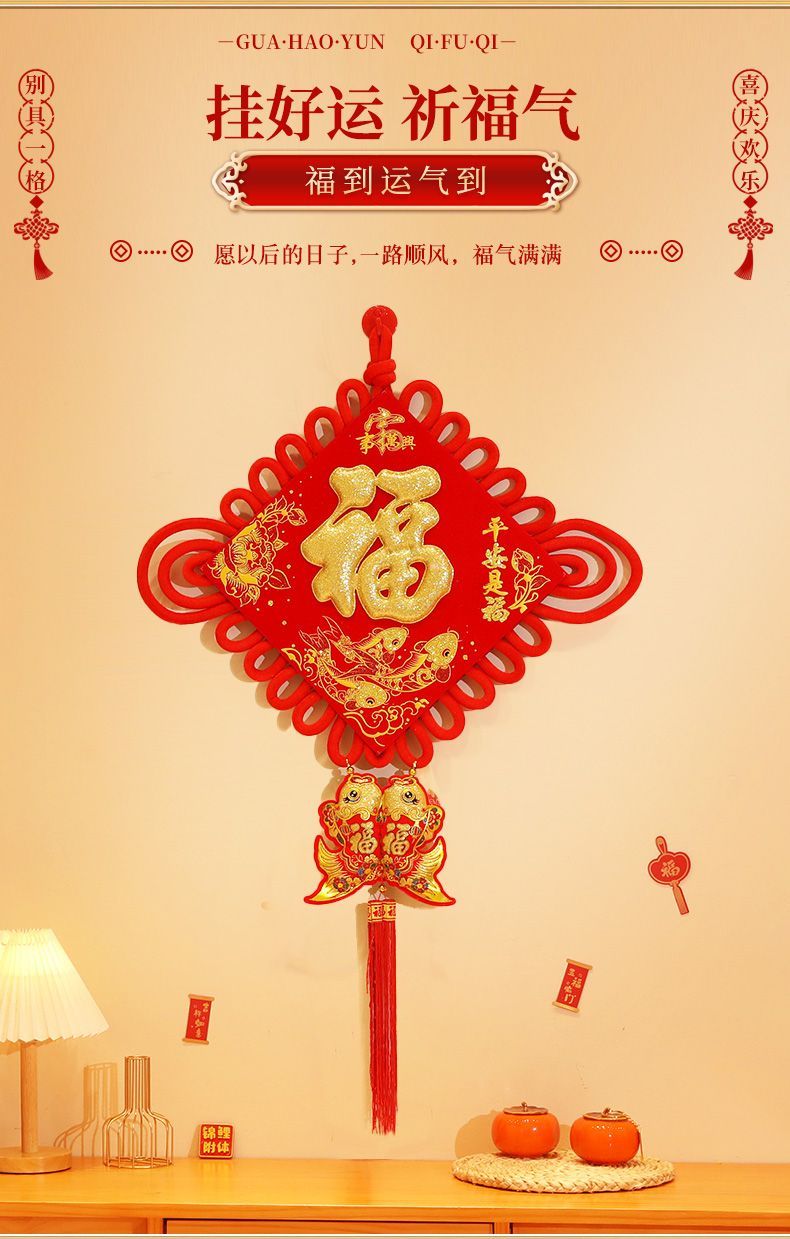 OYKTN挂件福字客厅大号新年挂件过年装饰品春节室内背景墙上挂饰 对联:吉祥如意-年年有余