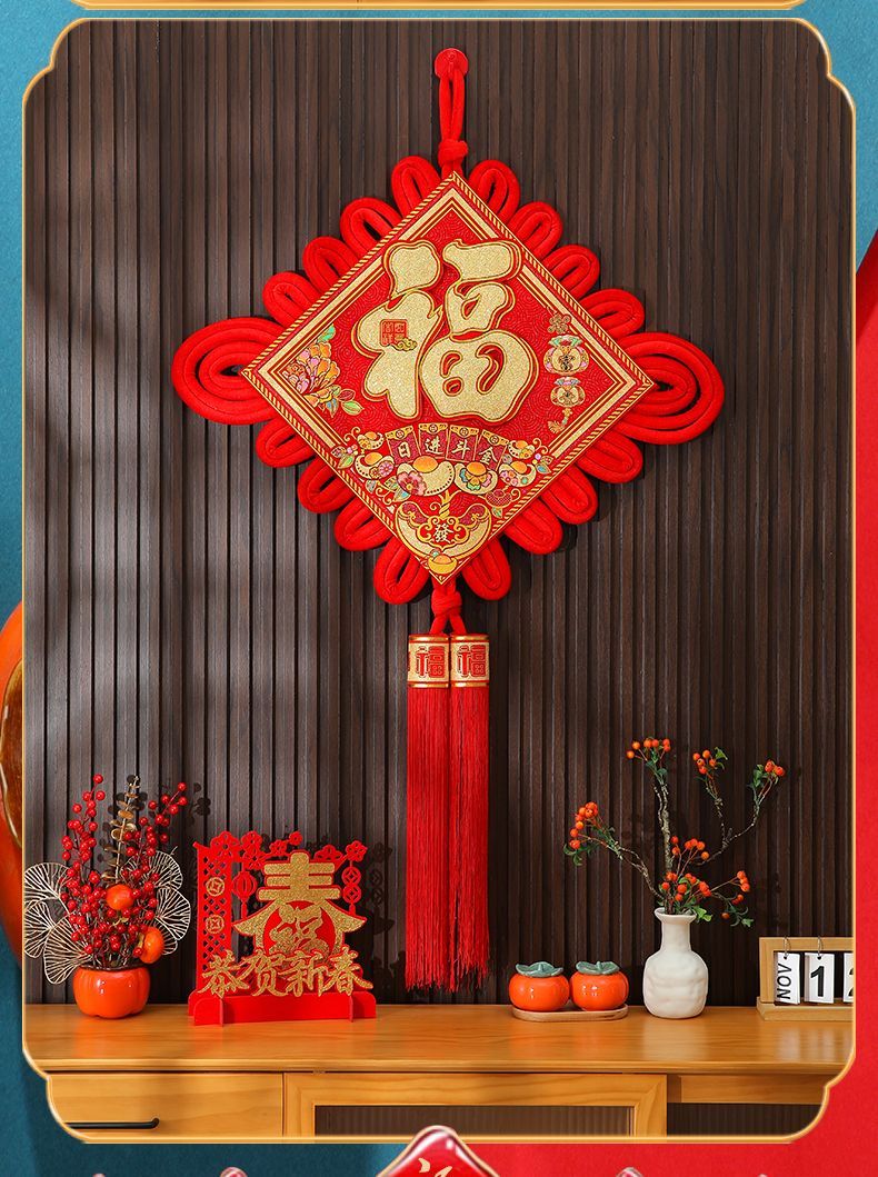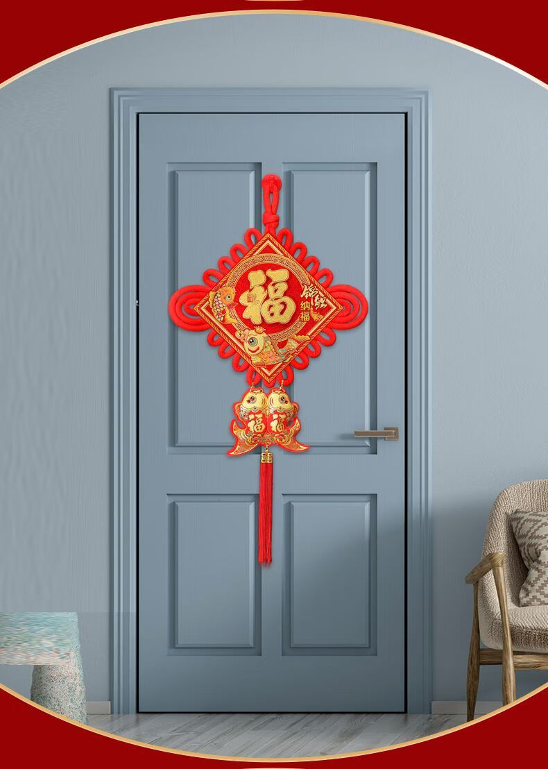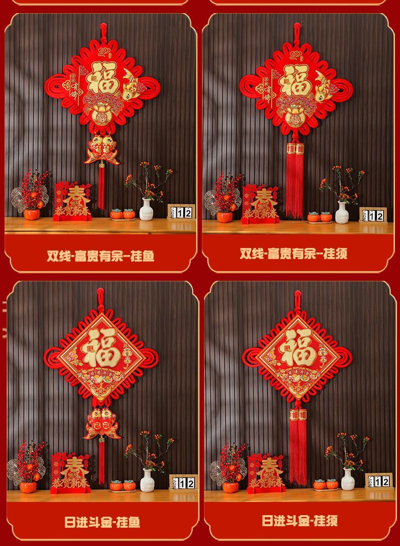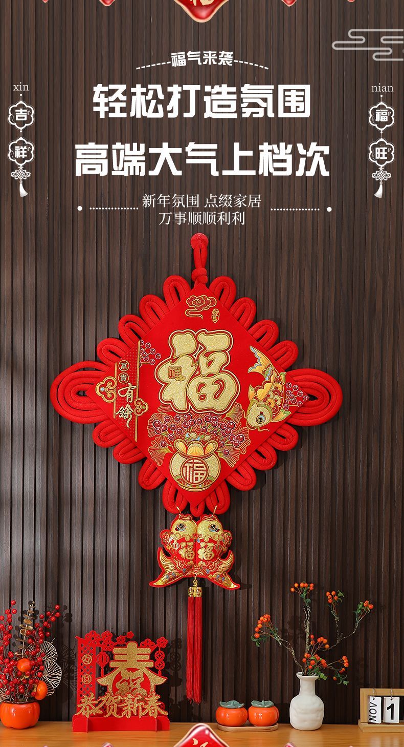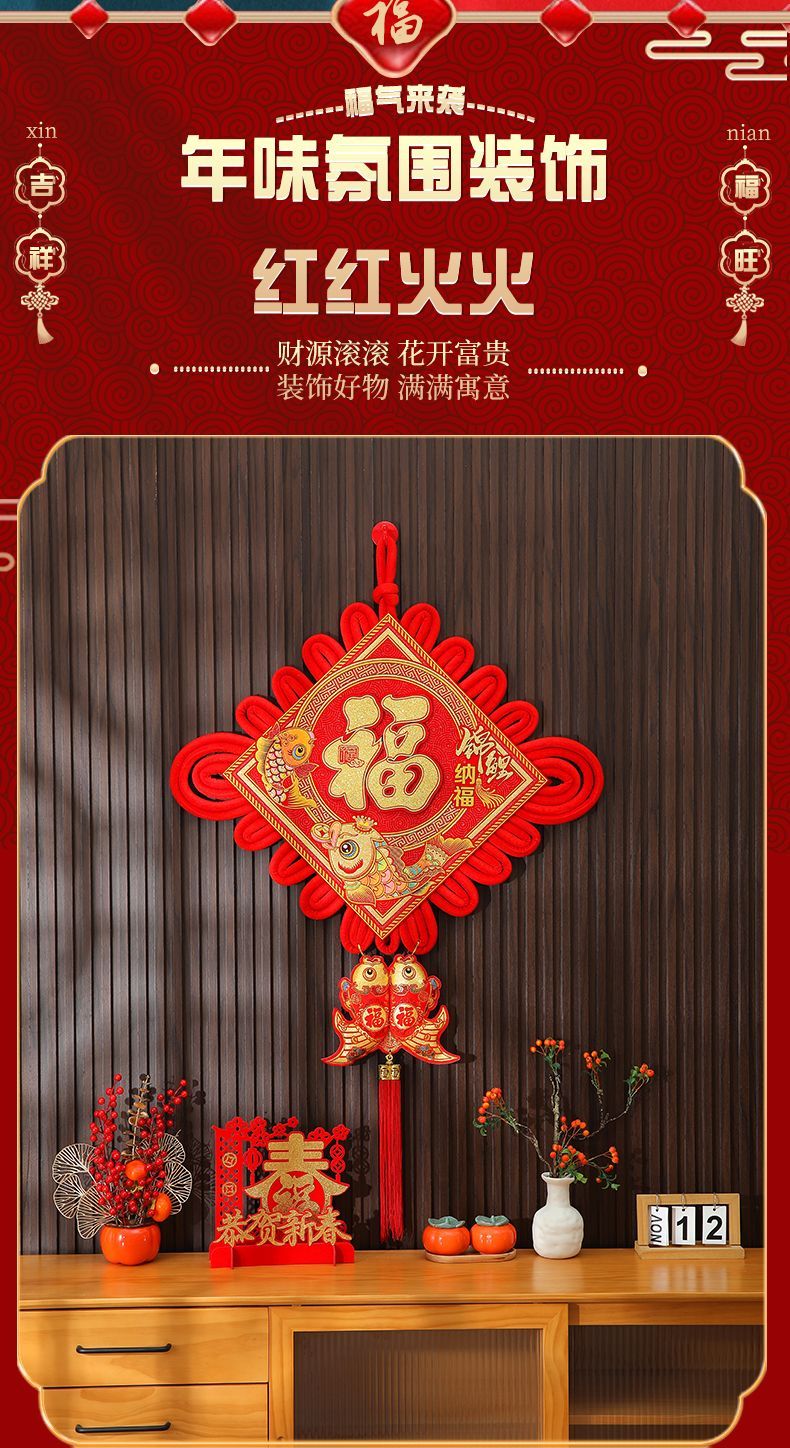 OYKTN挂件福字客厅大号新年挂件过年装饰品春节室内背景墙上挂饰 对联:吉祥如意-年年有余