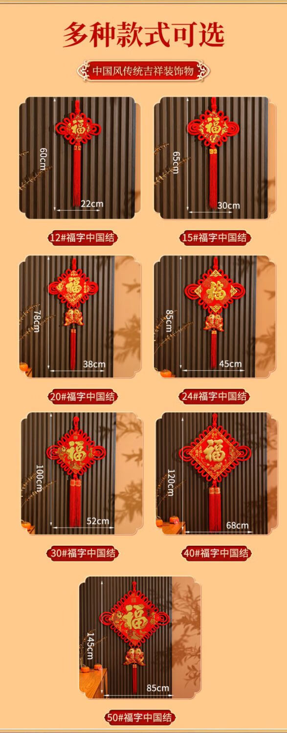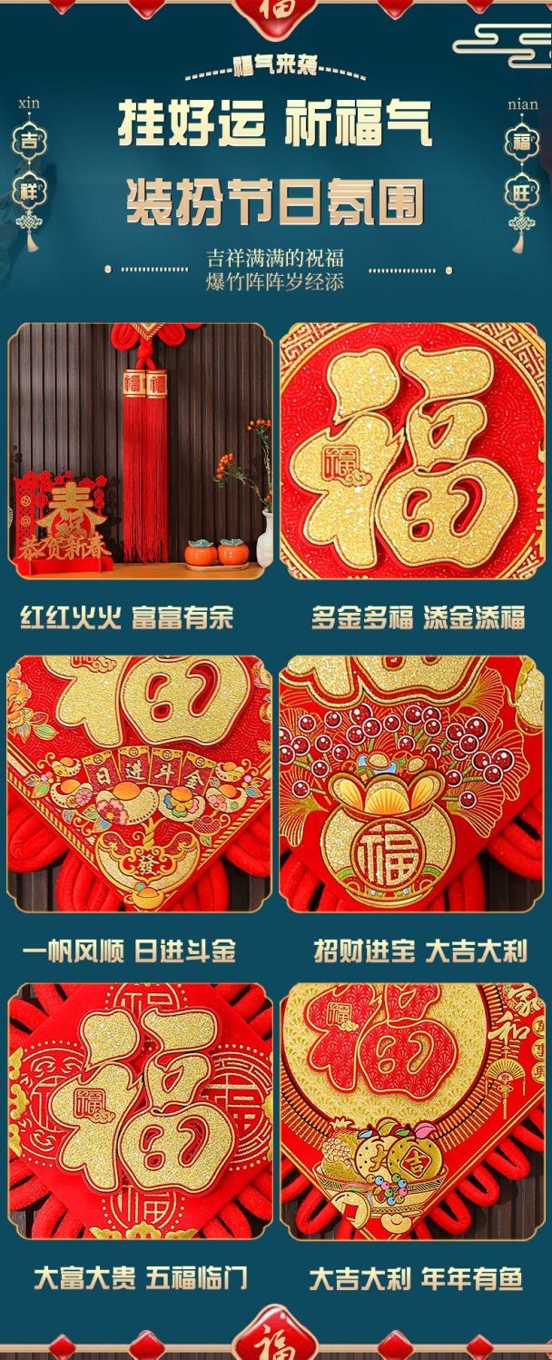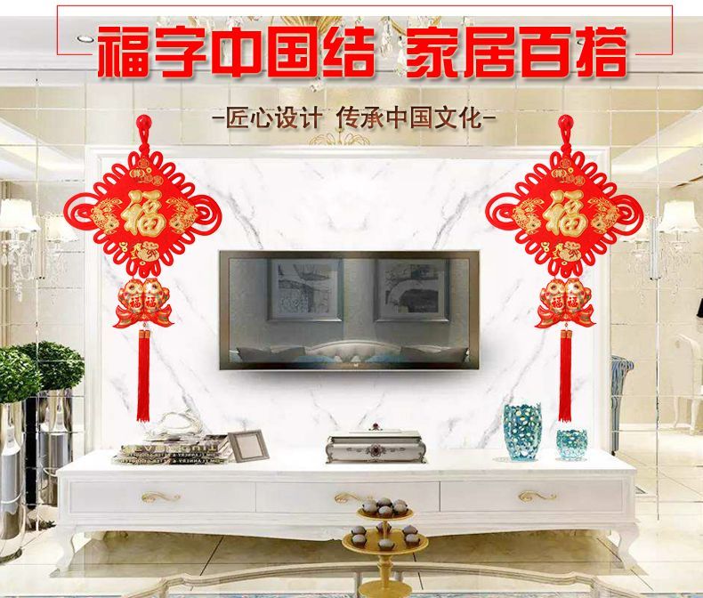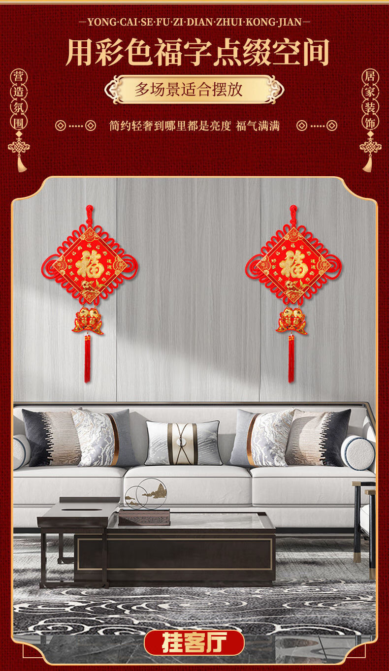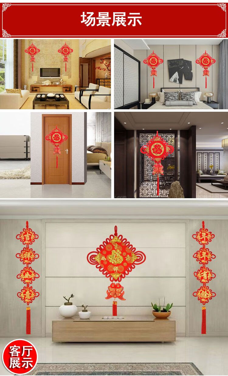 OYKTN挂件福字客厅大号新年挂件过年装饰品春节室内背景墙上挂饰 对联:吉祥如意-年年有余