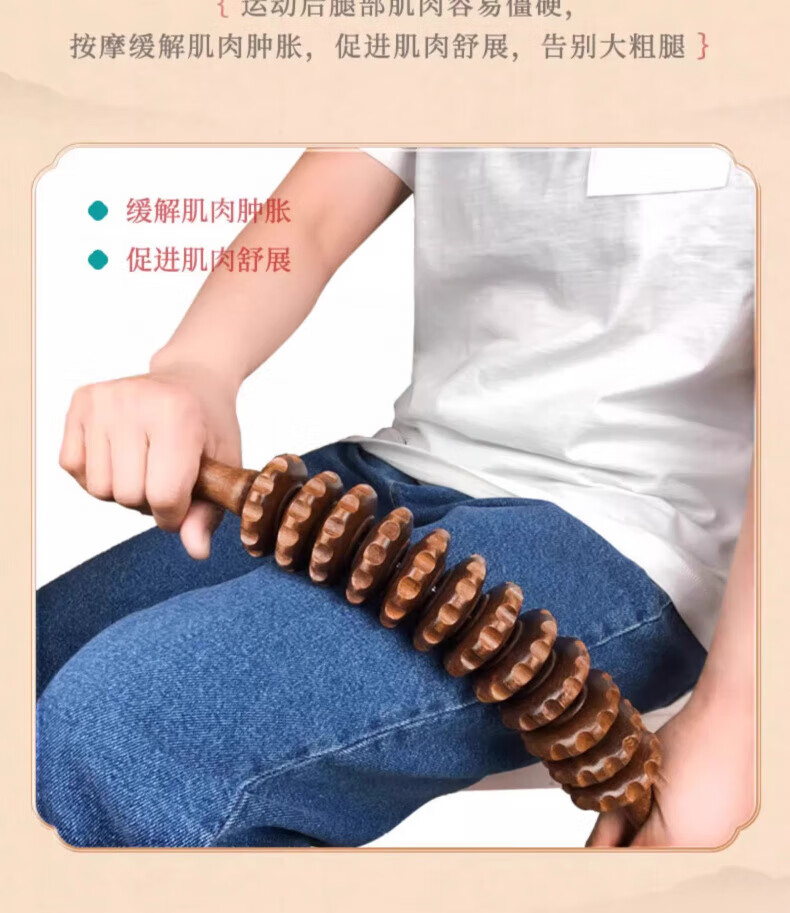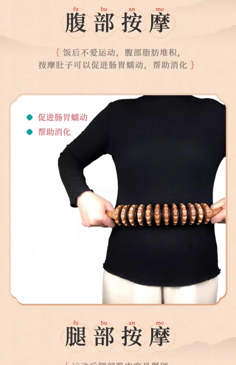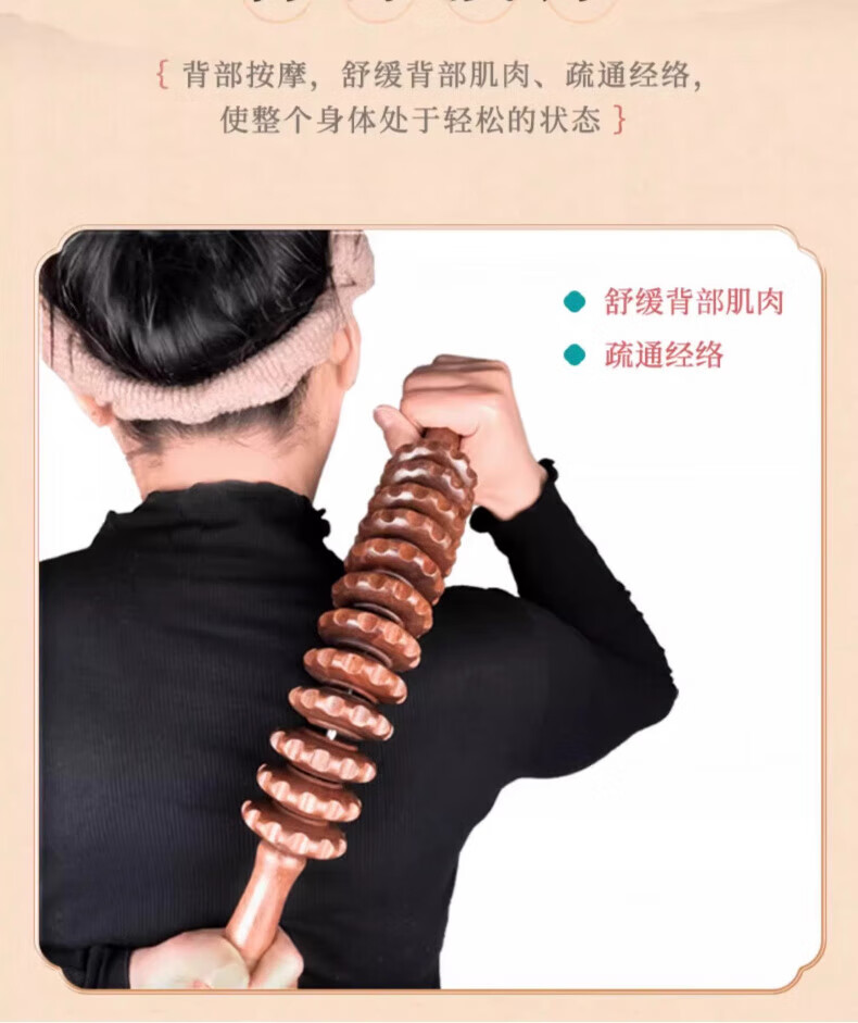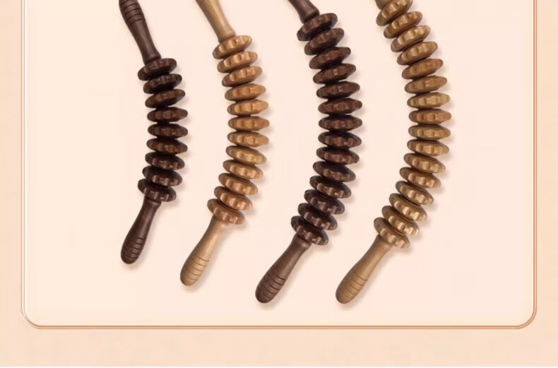 AILUKI日本擀筋棒实木弯柄滚轮全身肩颈椎经络疏通揉腹肚子开 原色直柄12轮____
