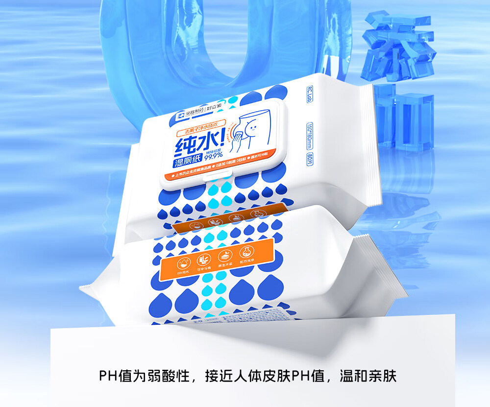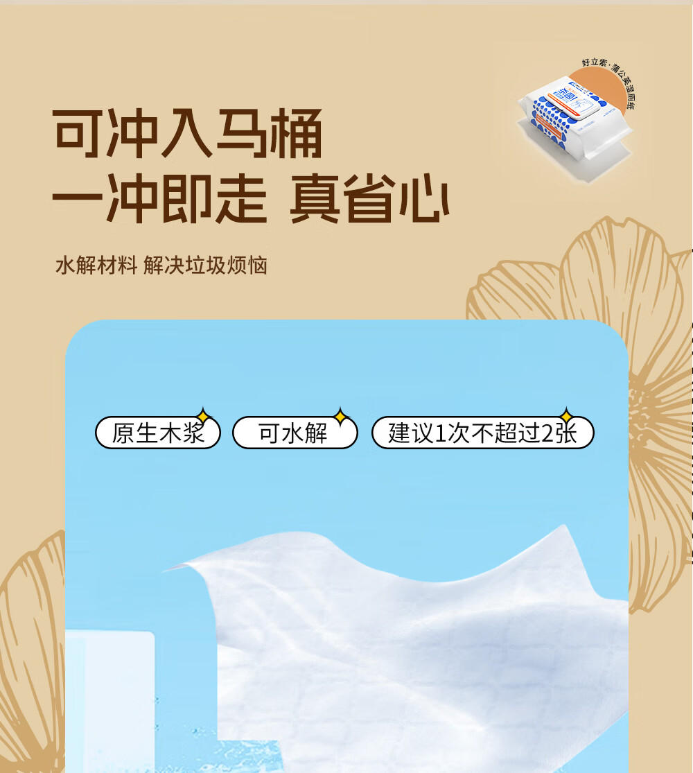 好立索纯水湿厕纸80抽 卫生湿巾擦屁股湿厕巾屁屁洁厕纸杀菌加厚家庭装 80抽*5包
