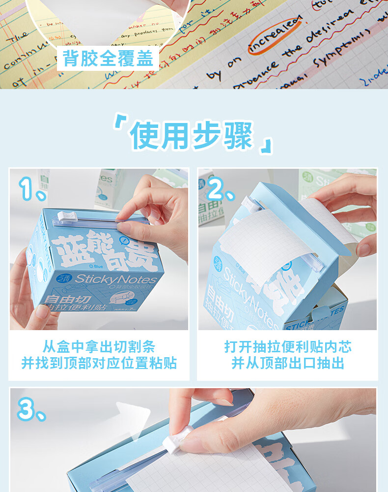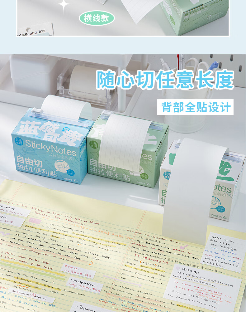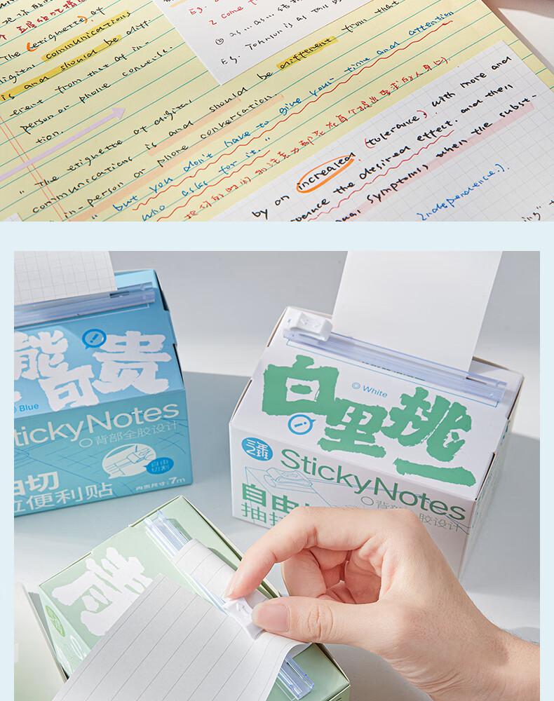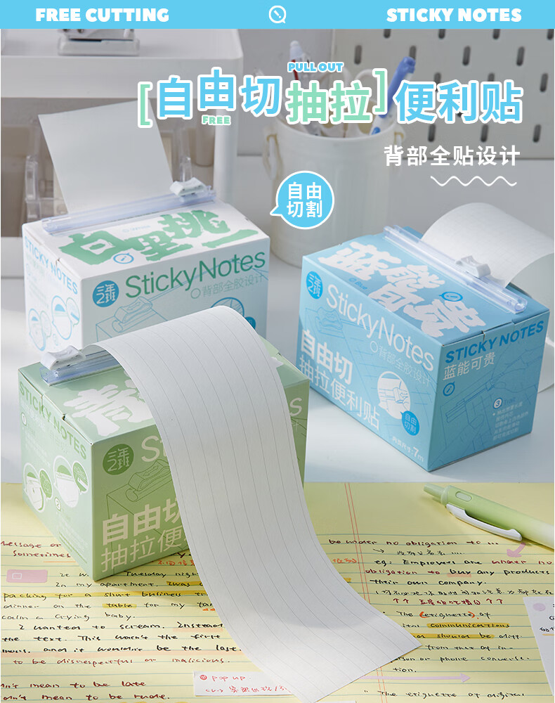 三年二班自由切抽拉便利贴标签贴小学生N次贴可撕错题便签纸高颜值全粘式索引贴可撕记事贴初中生办公用品 【自由切抽拉便利贴】青云直上(横纹)