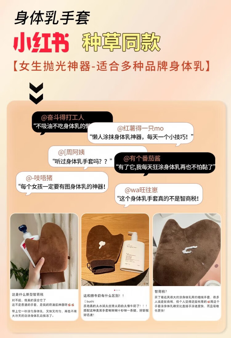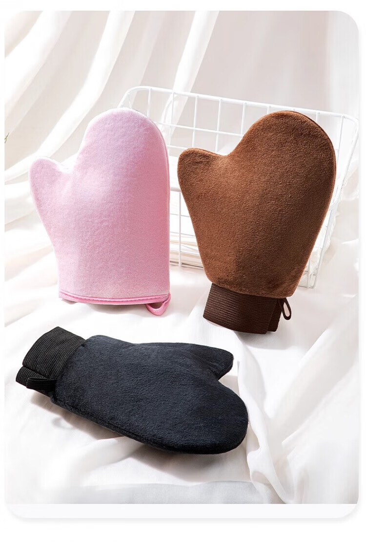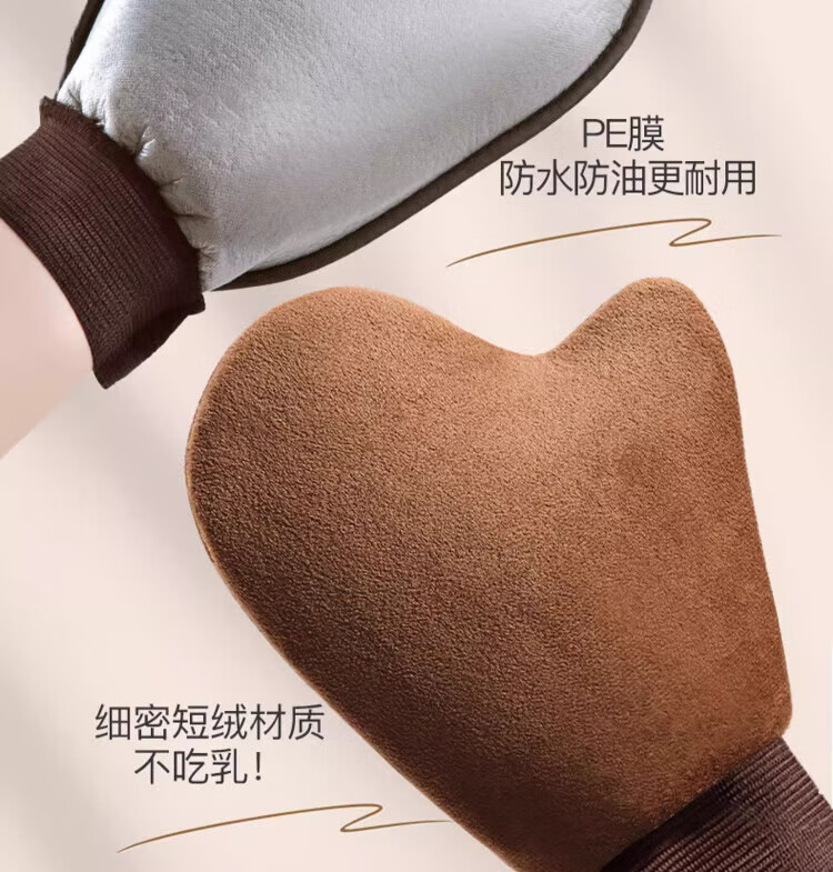 DEATKN德国涂身体乳手套美黑油涂抹神器擦身体乳素颜霜懒人工具防湿植绒 1秒涂抹_解放双手【焦糖色束口款】
