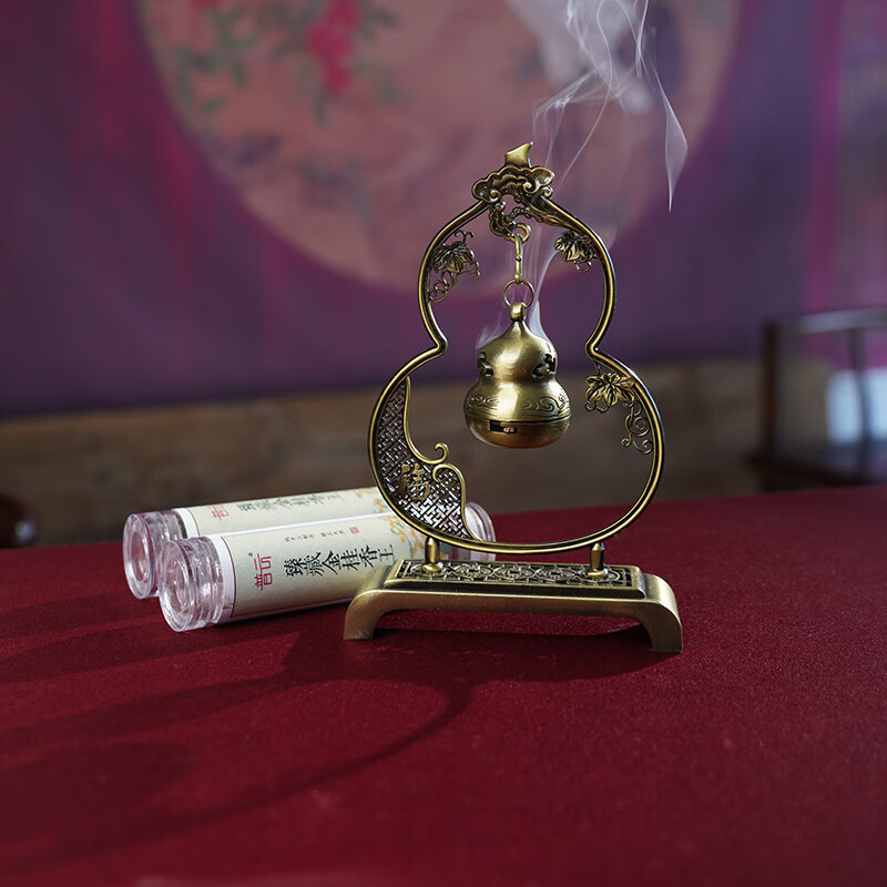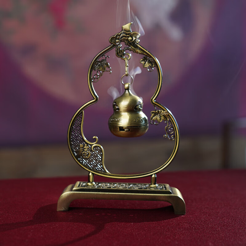 普云吉祥福禄迷你吊炉金桂香王无粘香盘香沉香檀家用室内香薰葫芦摆件 迷你福禄吉祥吊炉(锌合金)