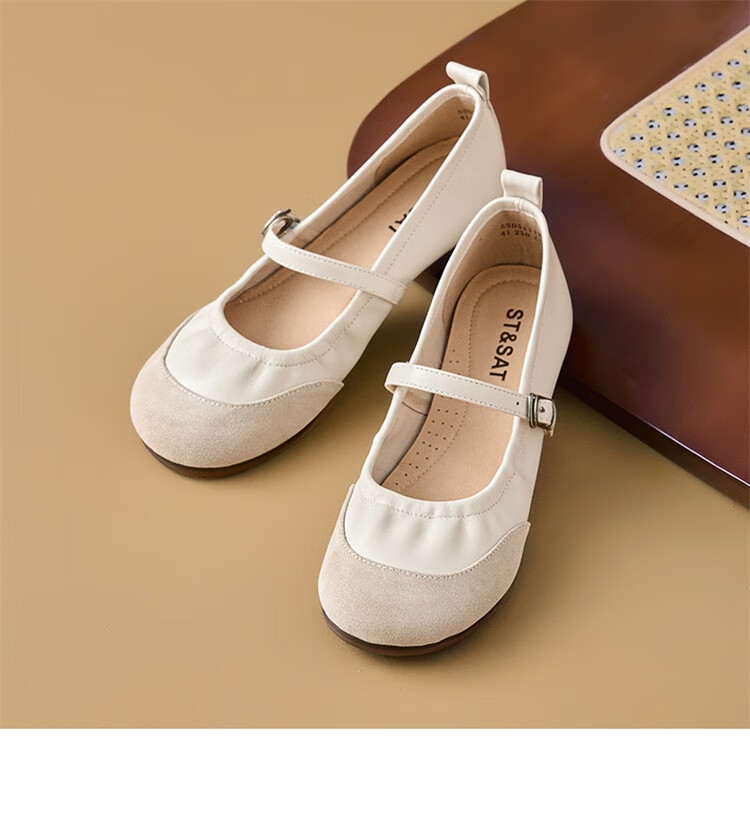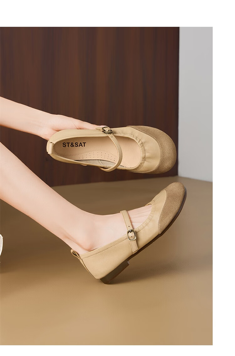 星期六时尚一字带玛丽珍鞋2025秋季新款气质女鞋MTSSD3111WPJ 卡其色 39