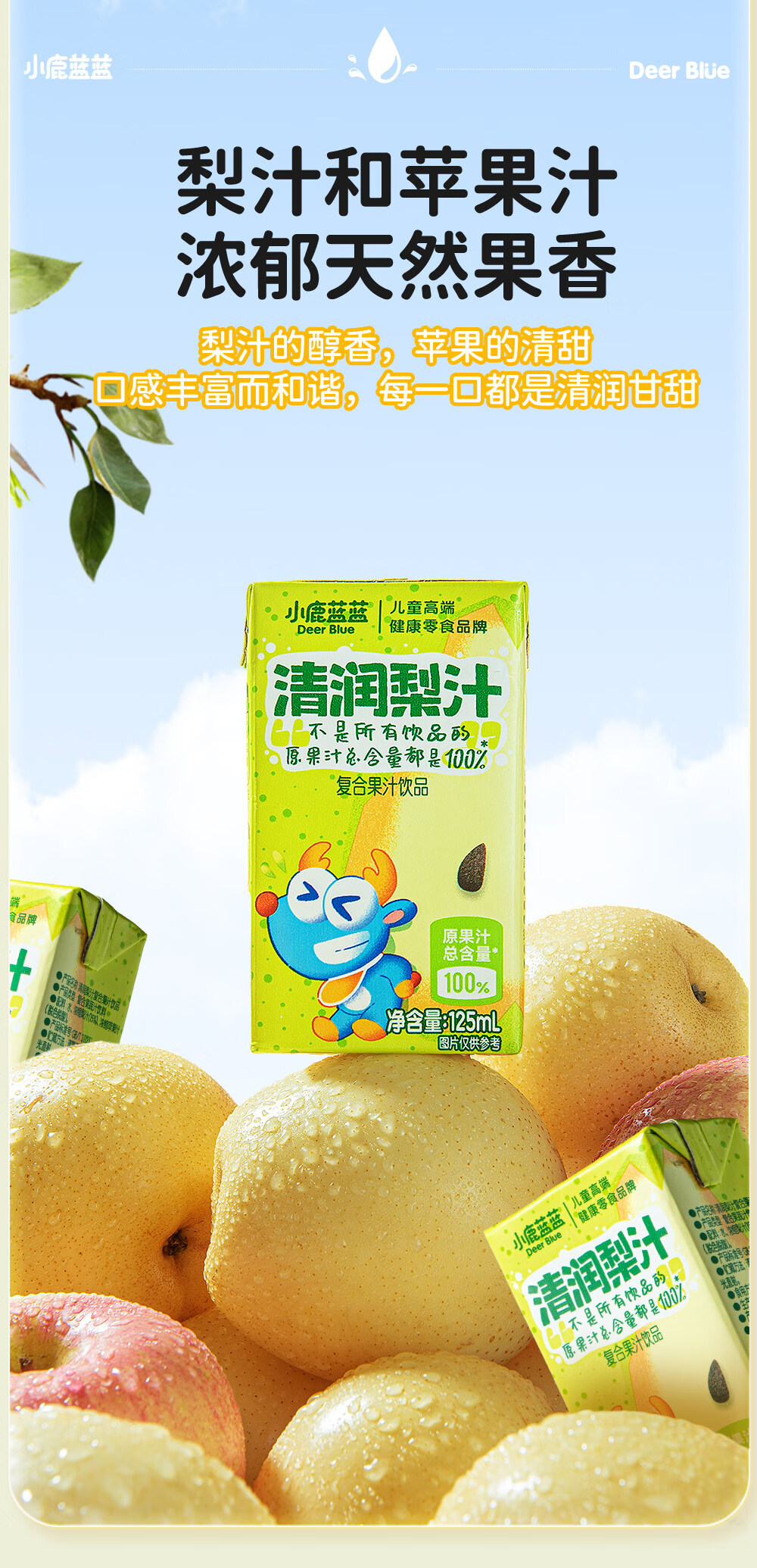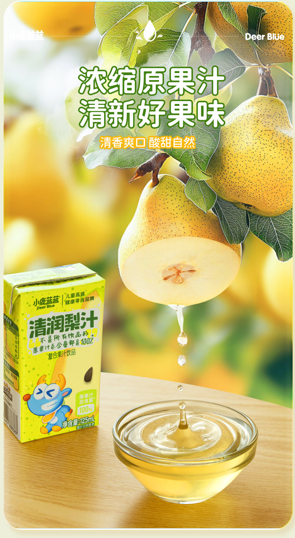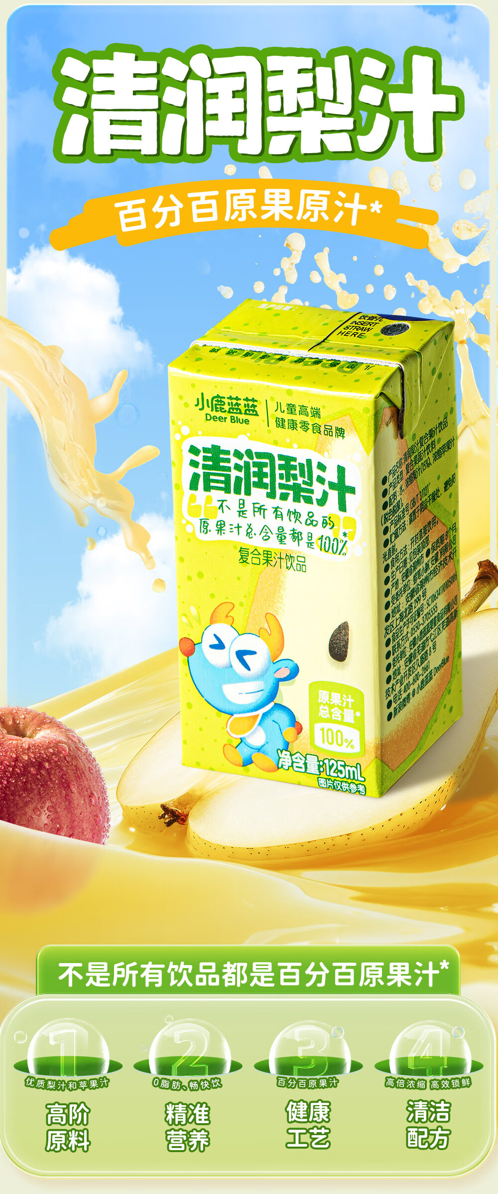 小鹿蓝蓝儿童清润梨汁125ml*12盒100%原果汁宝宝饮品饮料无添加剂