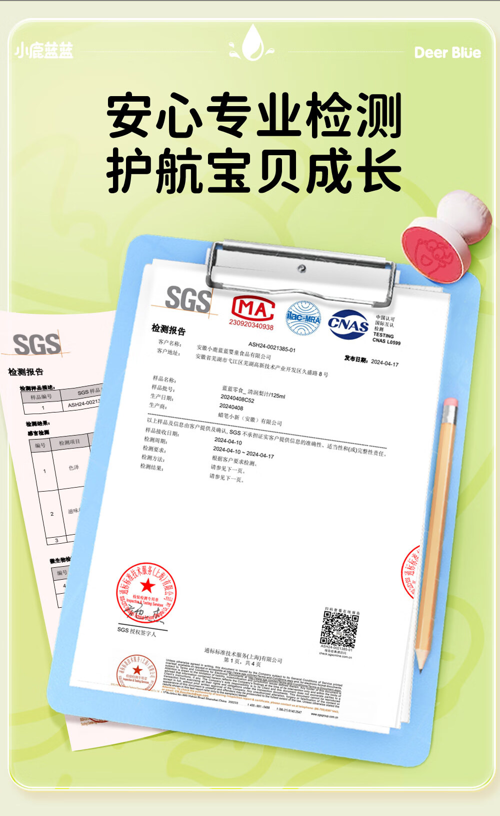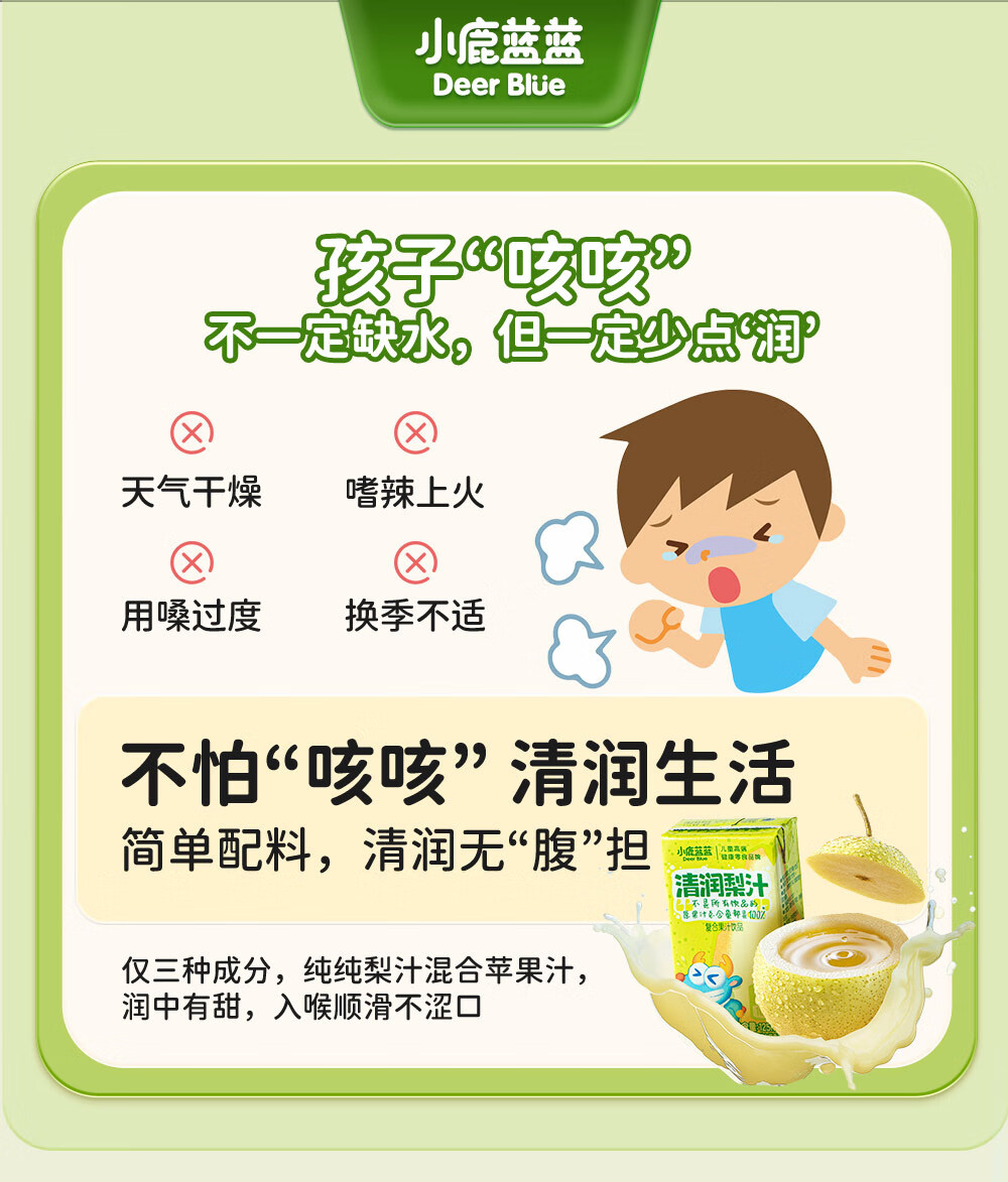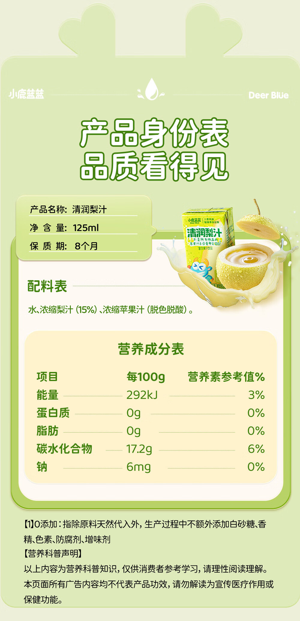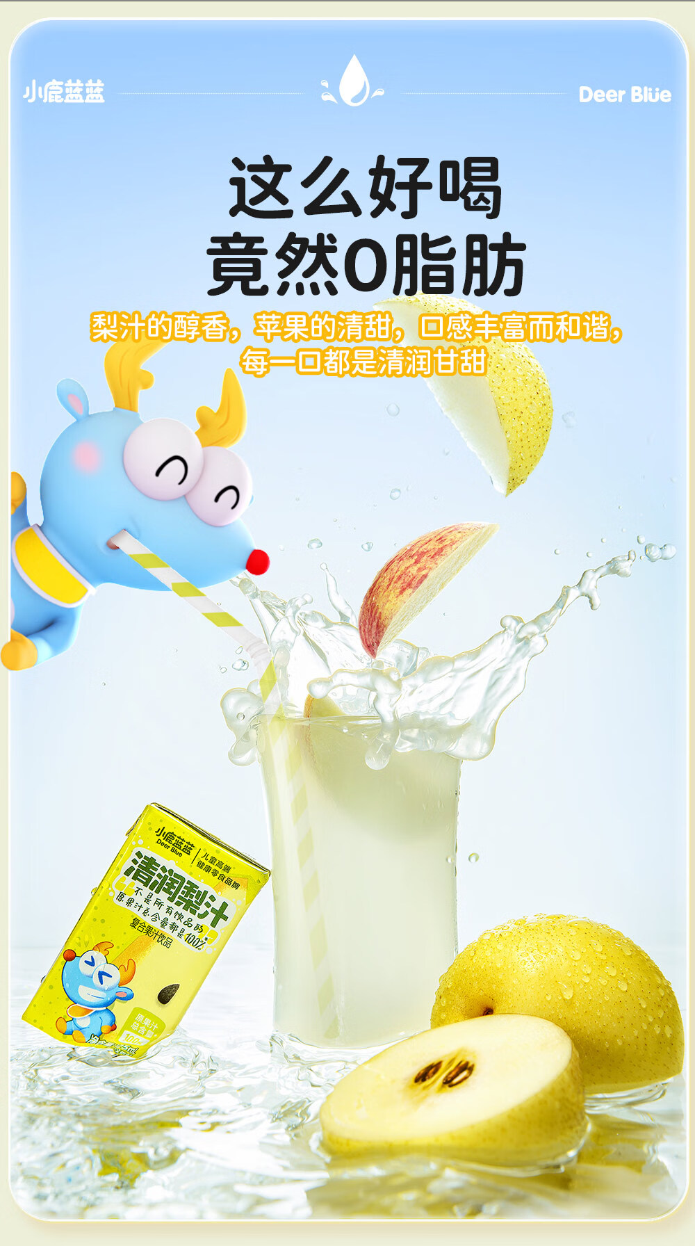 小鹿蓝蓝儿童清润梨汁125ml*12盒100%原果汁宝宝饮品饮料无添加剂