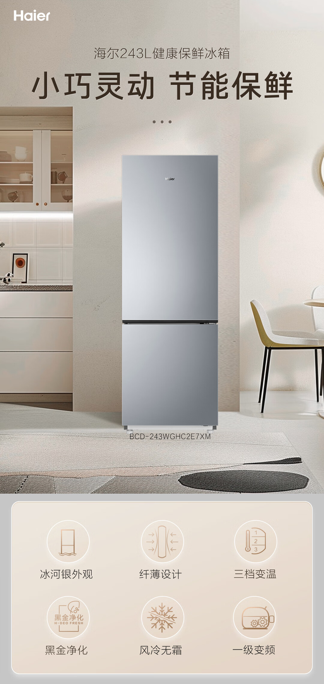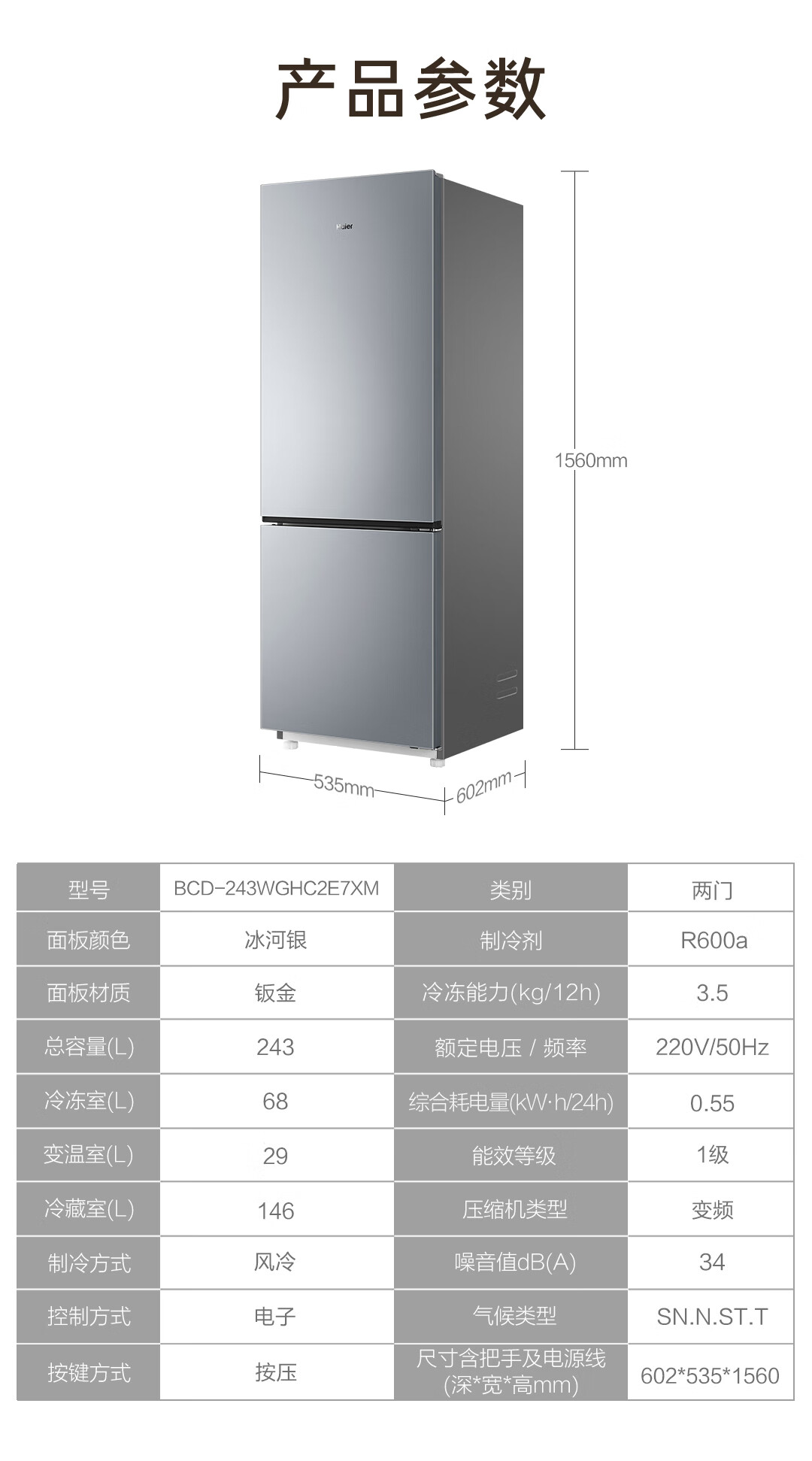 海尔(Haier)海尔冰箱两门大容量冷藏冷冻净味保鲜冰柜直冷风冷无霜一二级能效租房家用小型电冰箱 182升直冷二级节能