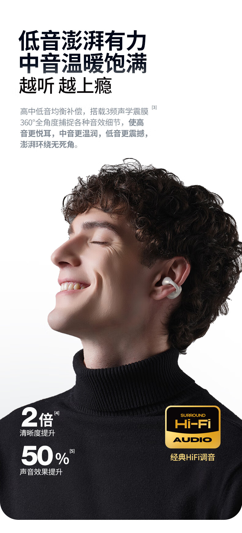鑫羽音【精选直发】【100万+】新款无线蓝牙耳机不入耳气骨传导耳挂式超 黑-万元音效+超长续航+超清通话 蓝牙通用