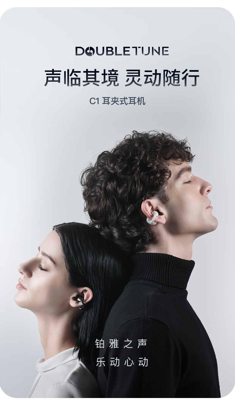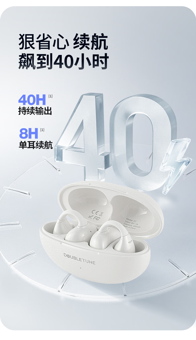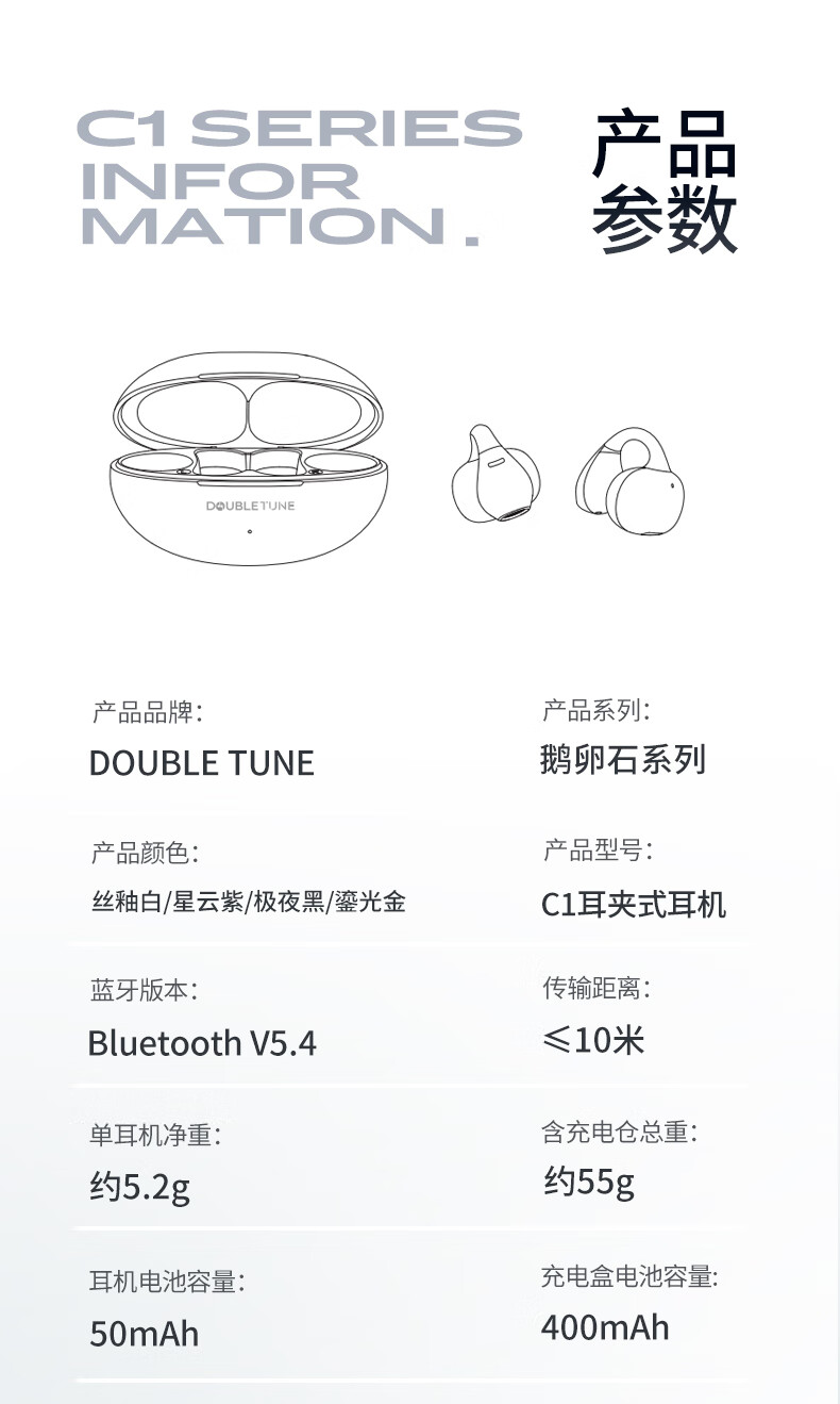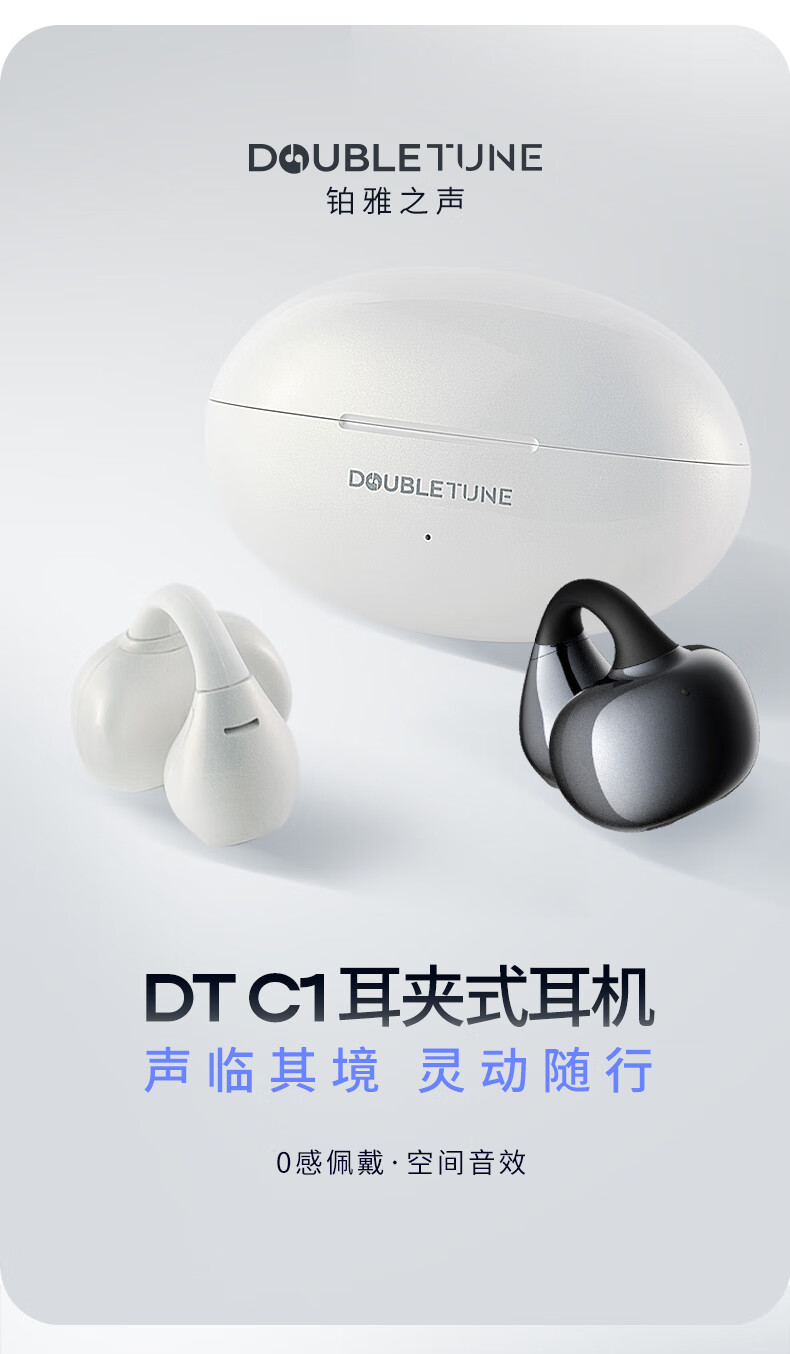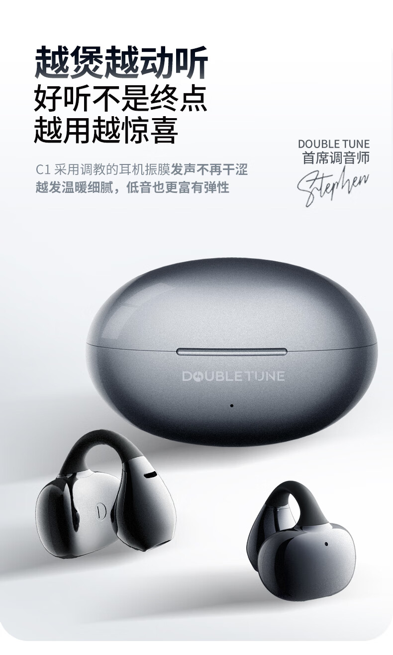 DOUBLE TUNE鹅卵石C1 【国家补贴】运动游戏耳夹式蓝牙耳机骨传导开放式无线耳机适用苹果华为小米17 极夜黑