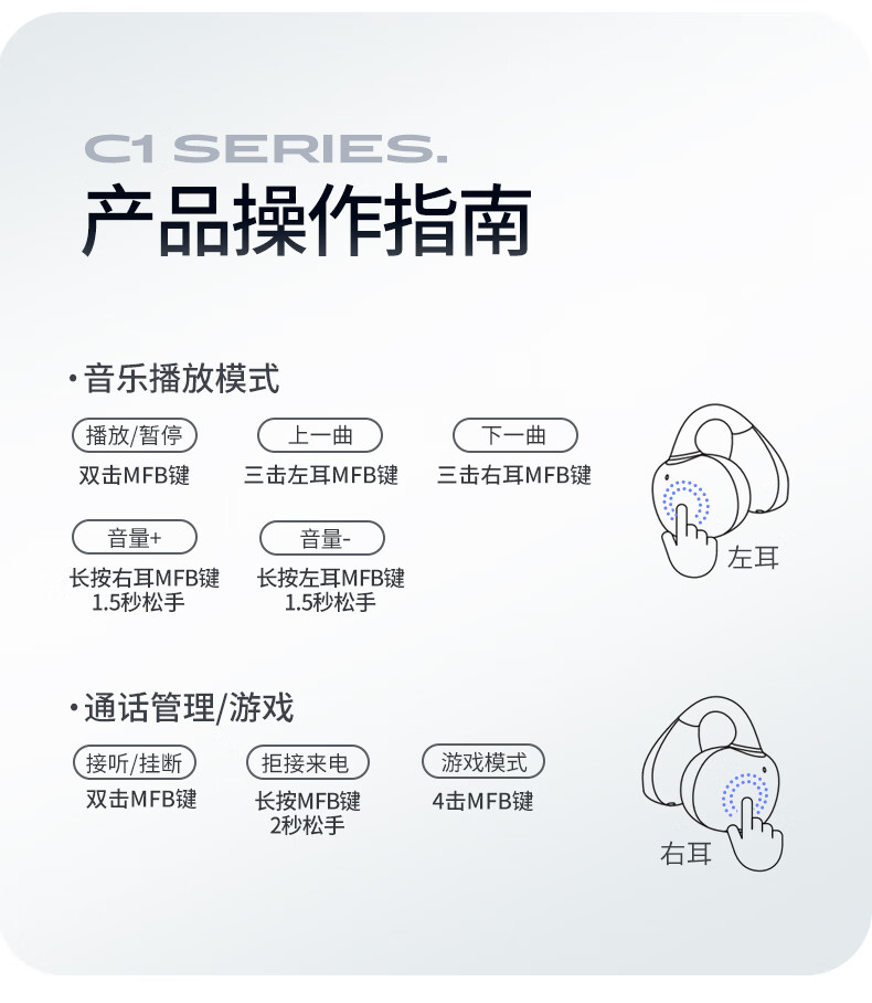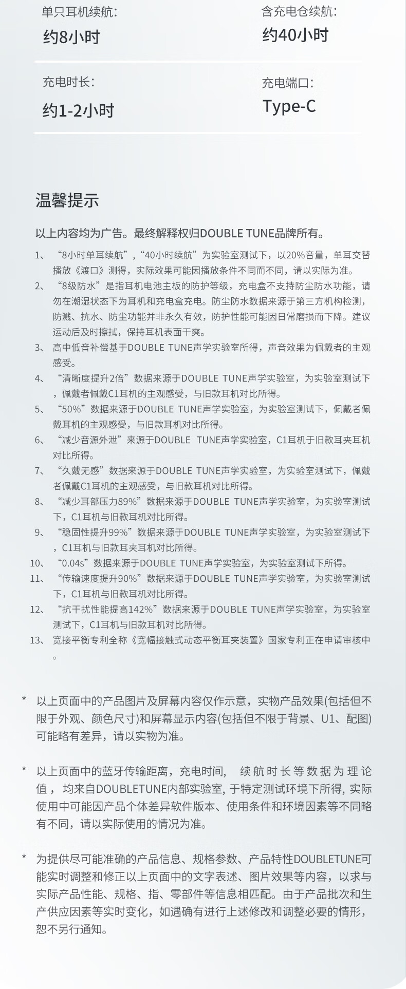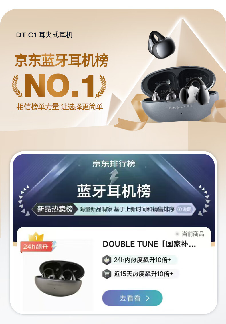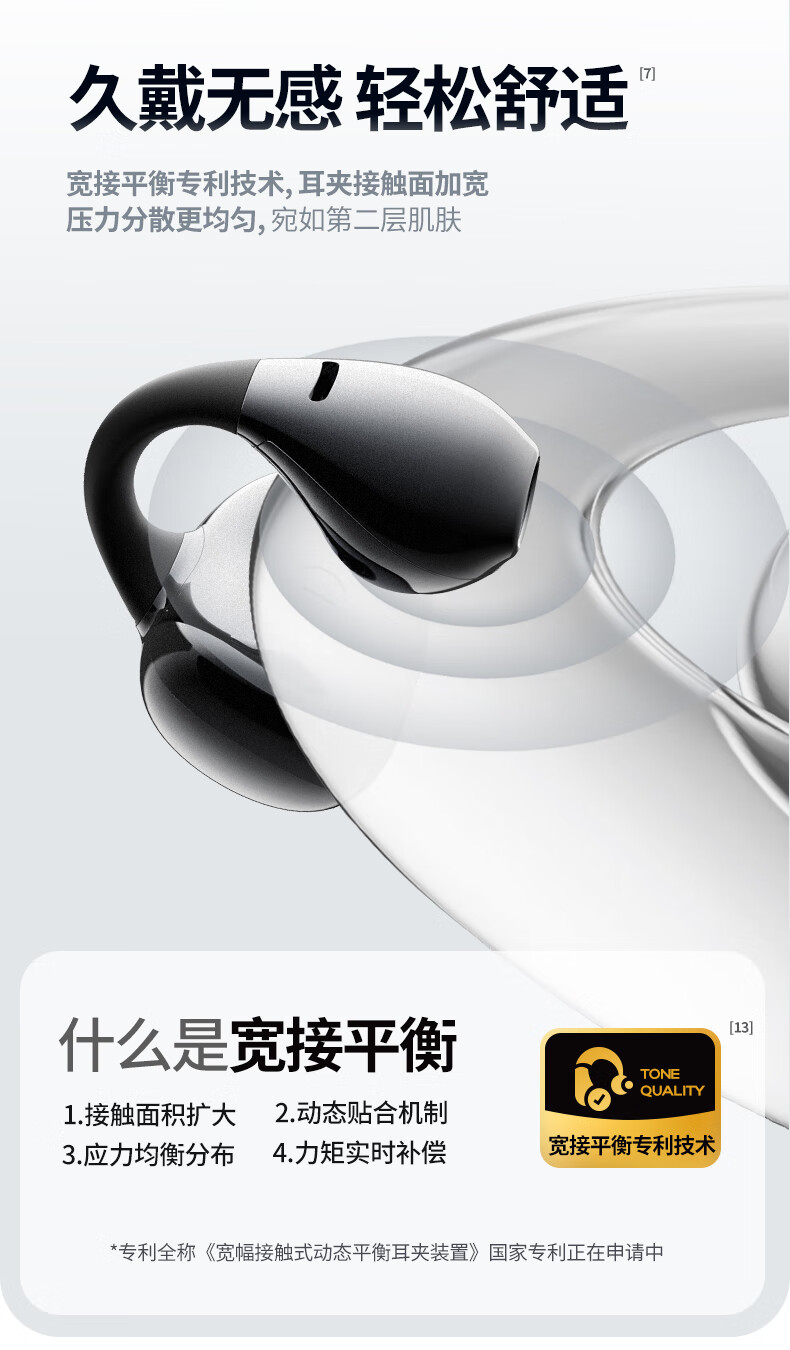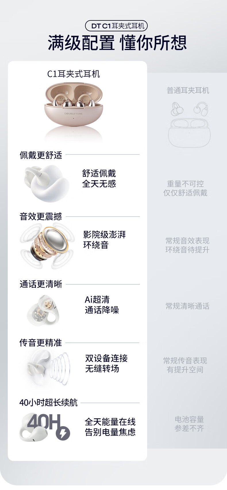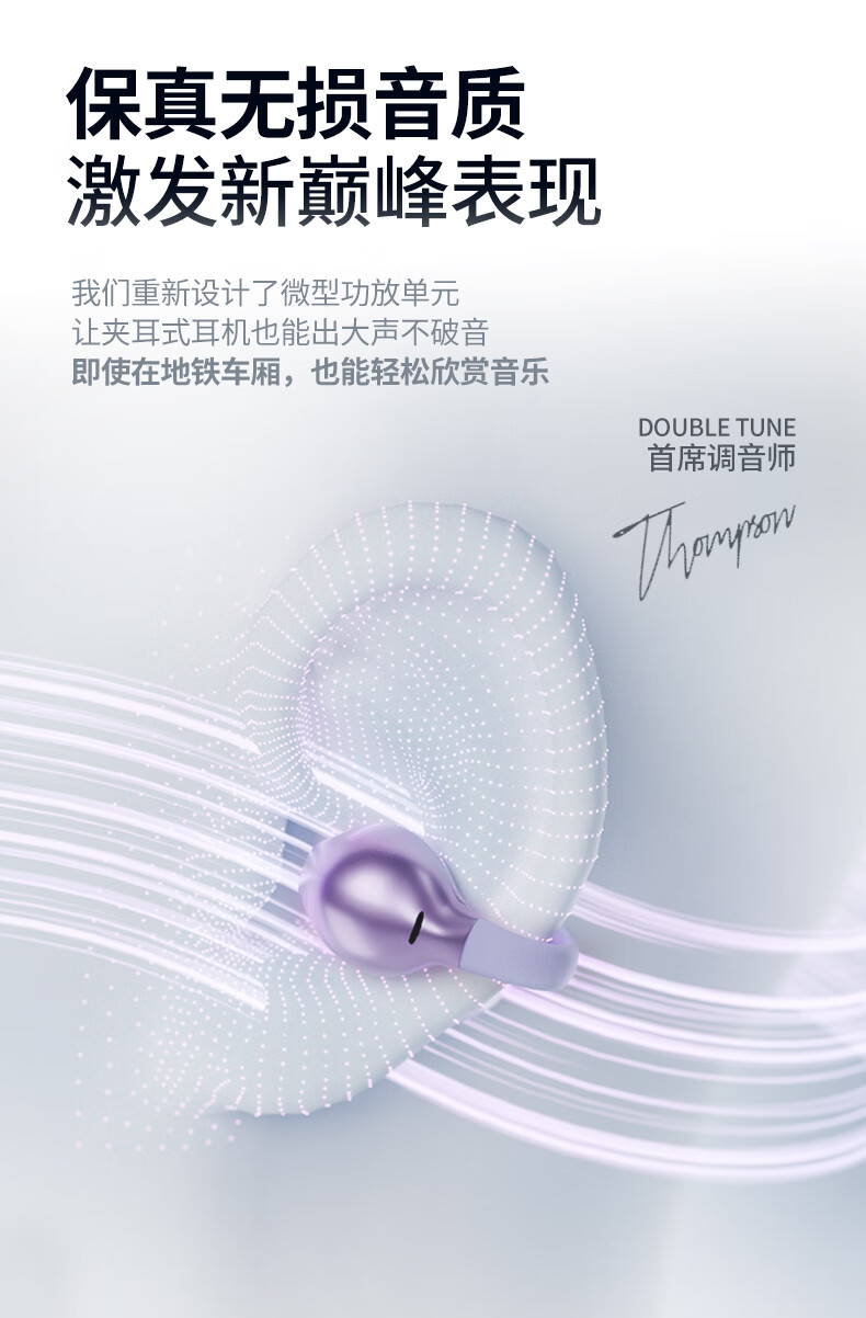 DOUBLE TUNE鹅卵石C1 【国家补贴】运动游戏耳夹式蓝牙耳机骨传导开放式无线耳机适用苹果华为小米17 极夜黑