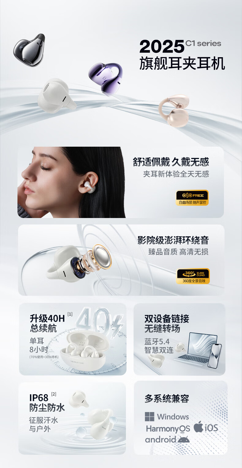 艾勒丝汀【晶钻小巨蛋丨挂耳式狂甩不掉】蓝牙耳机开放式运动跑步无线骨传导超长续航降噪耳夹式不入耳式 云岩肤【独立空间音频】 【空间环绕音+开放不入耳+舒适不漏音】