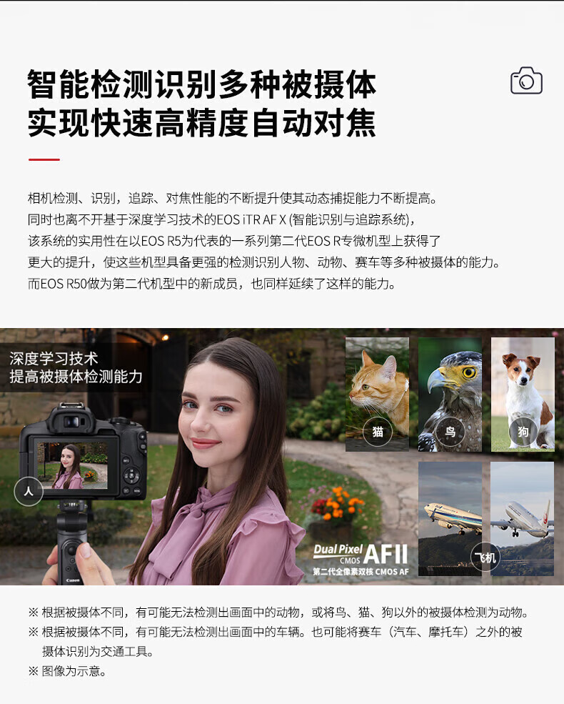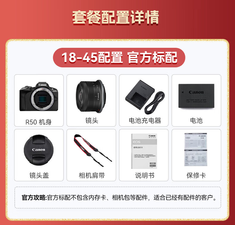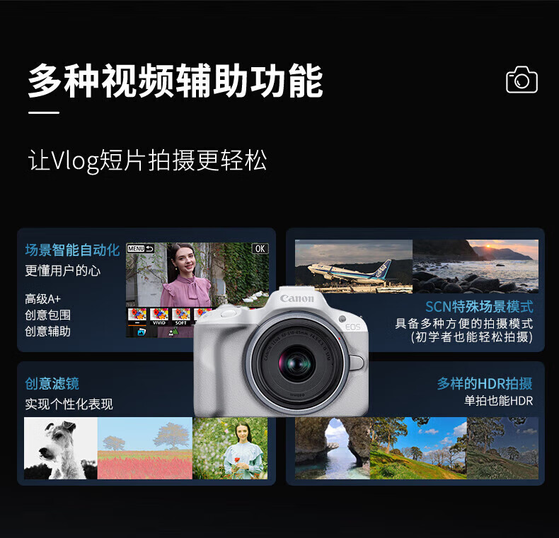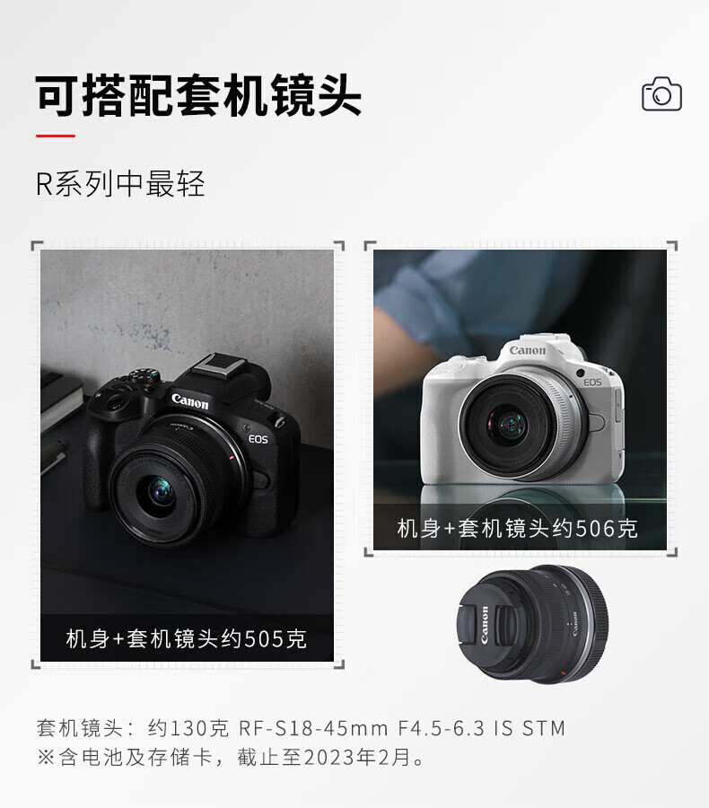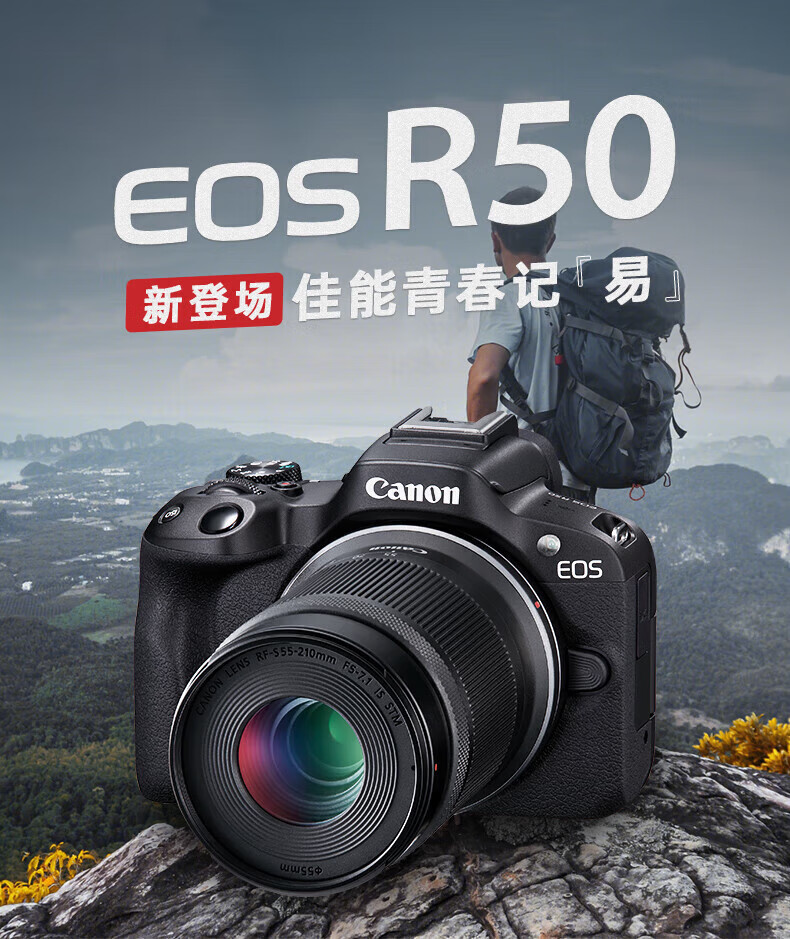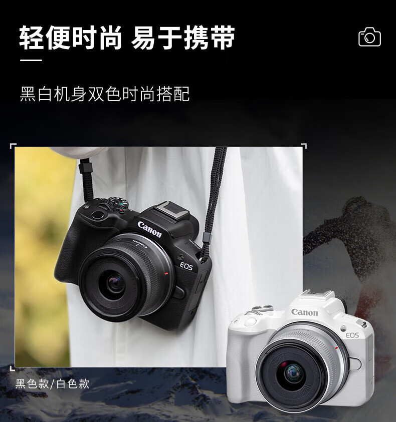 佳能r50 微单相机 入门级 R50 APS-C画幅 旅行家用学生vlog视频 4k小巧便携 数码照相机 佳能R50+18-45黑色套机 官方标配【加购下单享惊喜福利 详询客服】